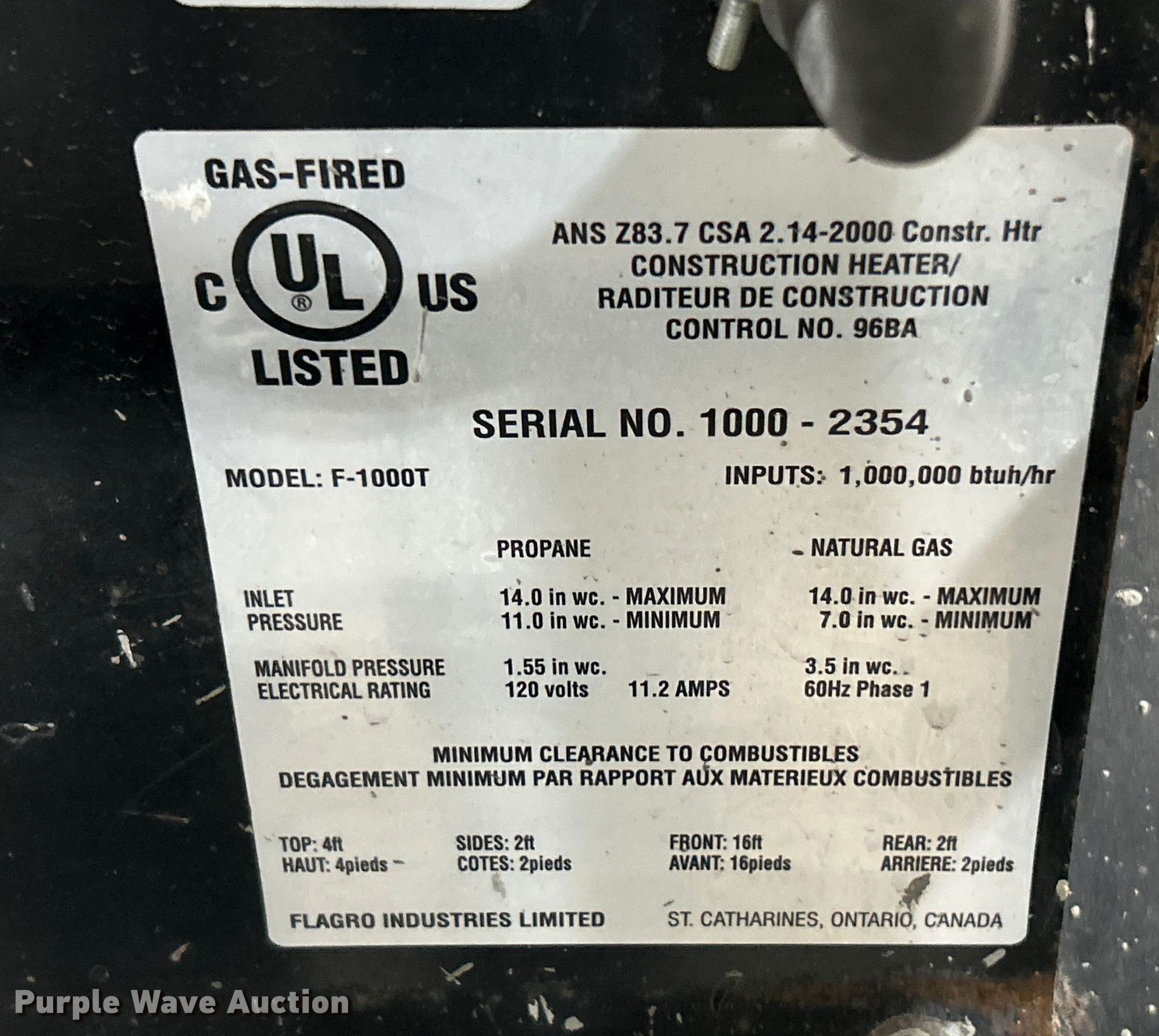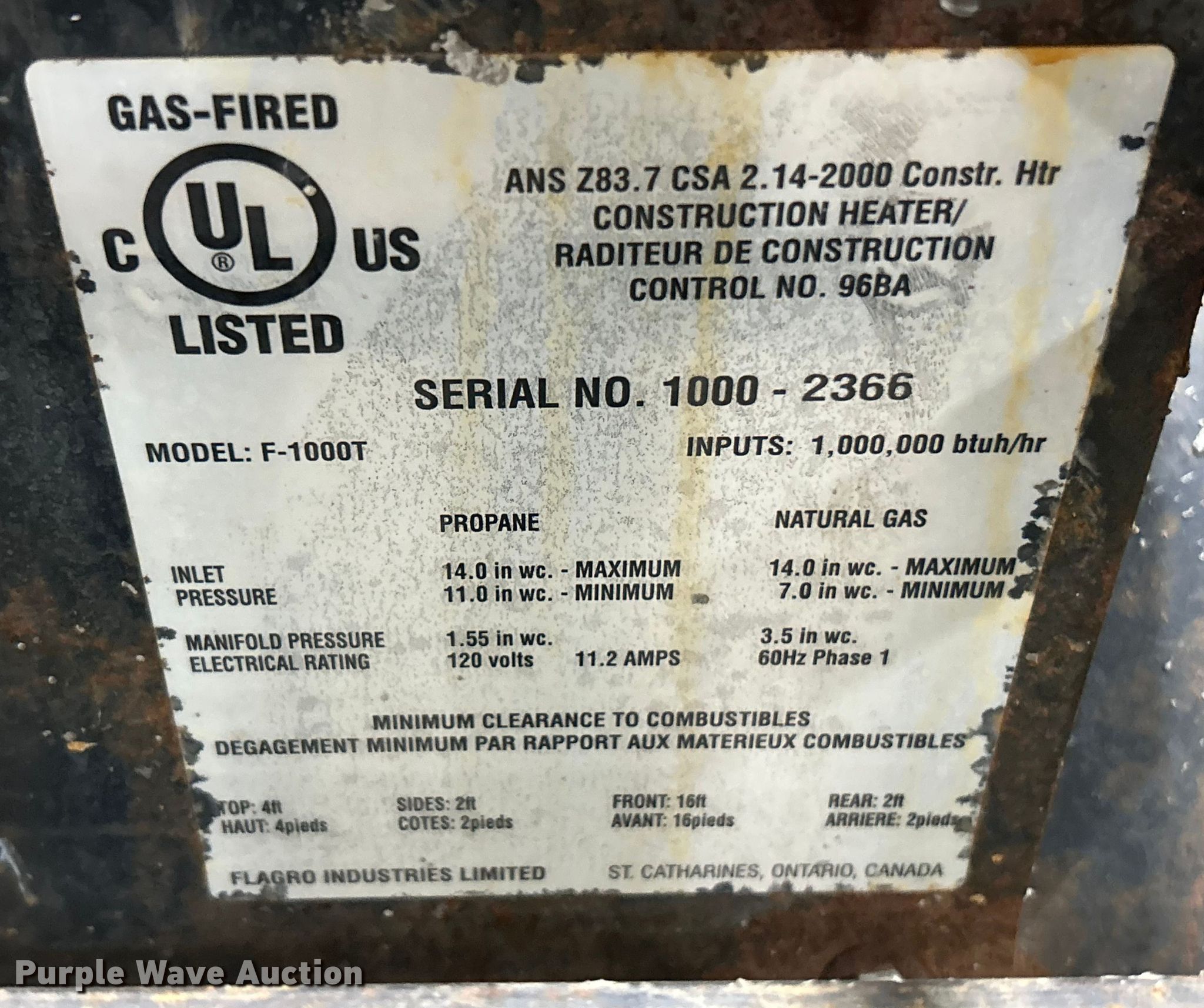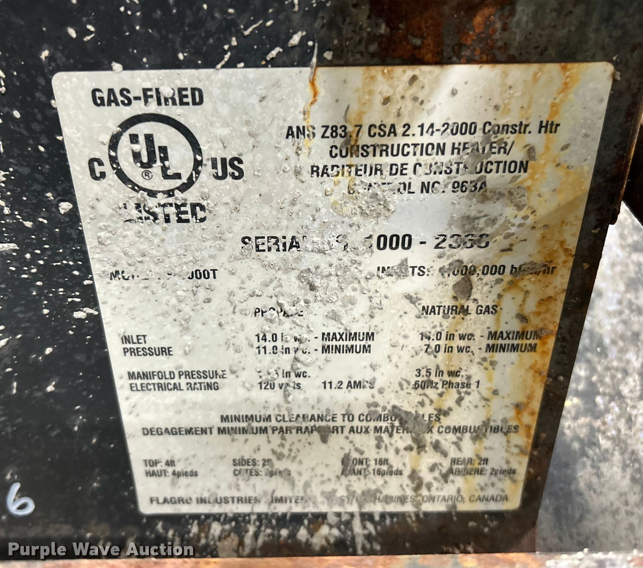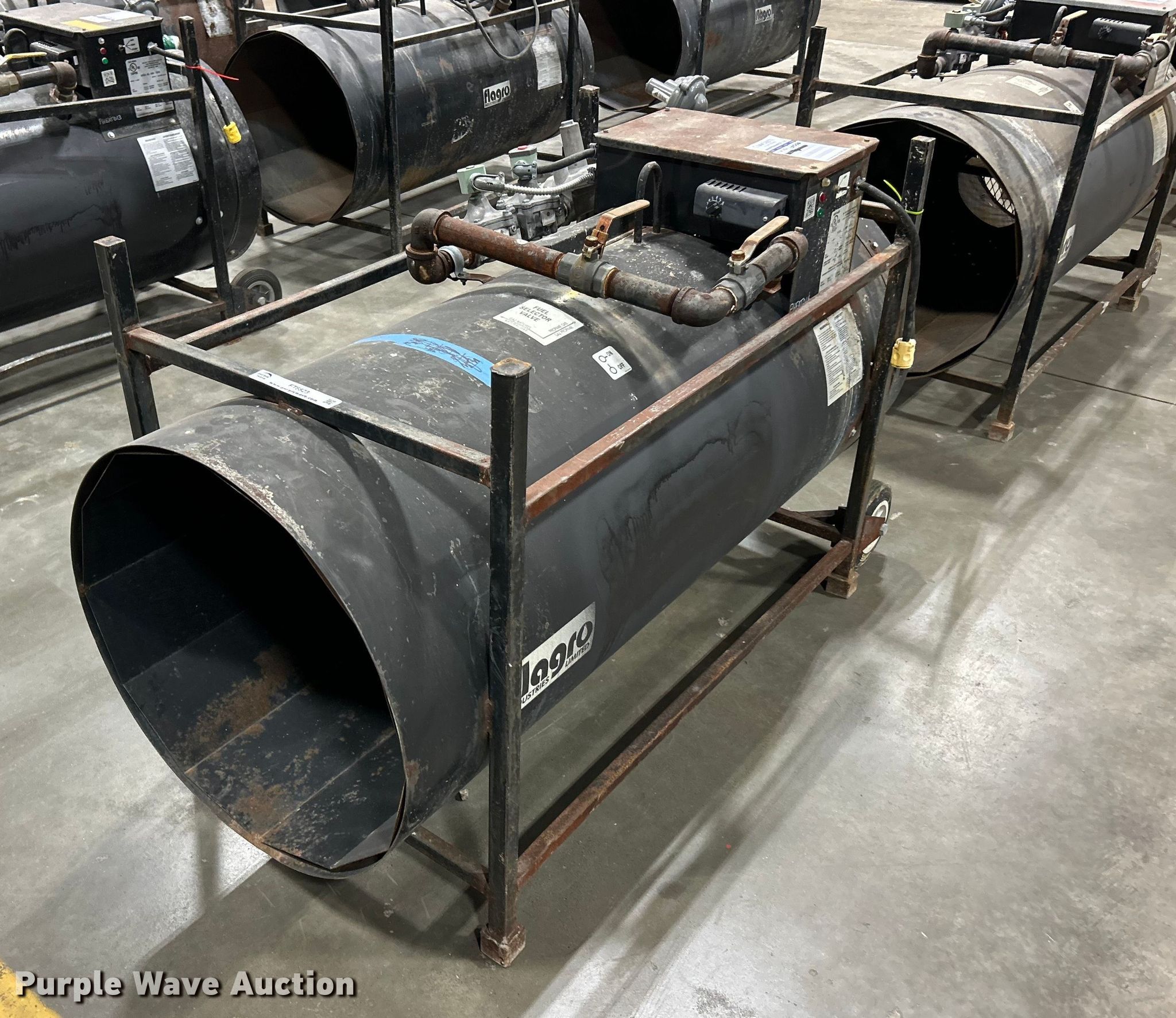 Purple Wave is selling a used Portable Heater or Fan in Missouri. This item is a (3) Flagro heaters with the following: Volts: 115/120, Phase: Single, Fuel type: LPG