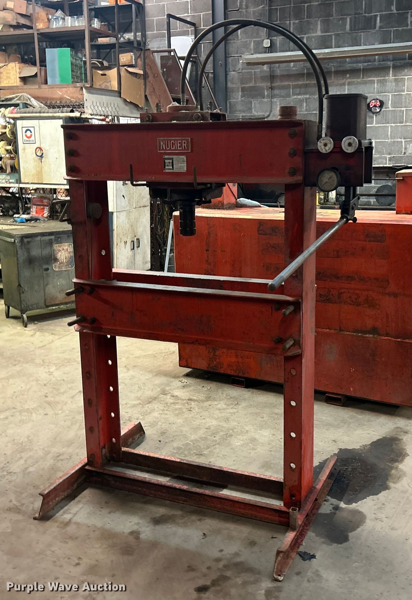 Purple Wave is selling a used Tools in Missouri. This item is a F.A. Nugier H60-7 hydraulic press with the following: Serial: 1411103, Capacity: 60 tons, Plates included