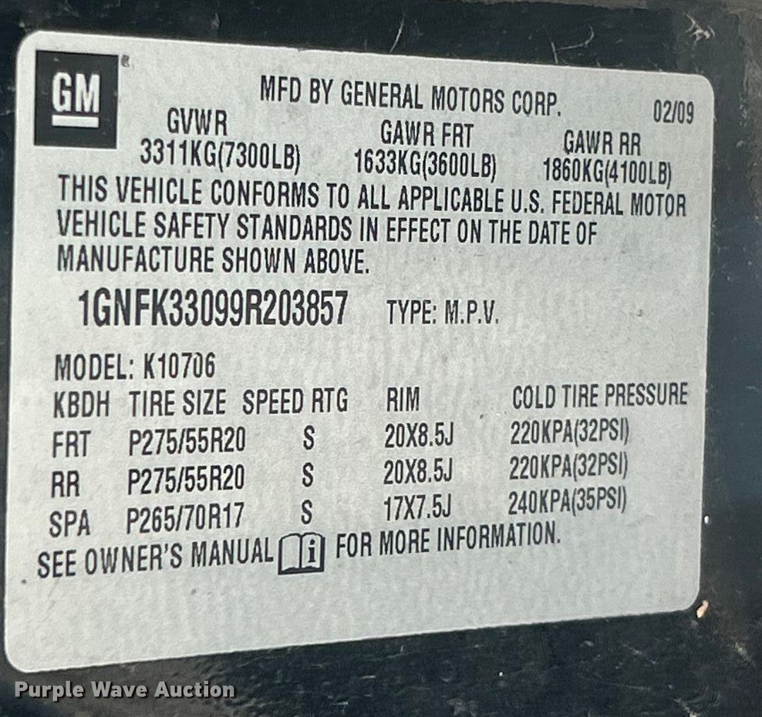 Purple Wave is selling a used Passenger Vehicle in Missouri. This item is a 2009 Chevrolet Tahoe LTZ SUV with the following: Miles: 200,801 on odometer, VIN: 1GNFK33099R203857