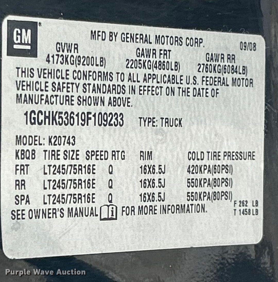 - VIN: 1GCHK53619F109233