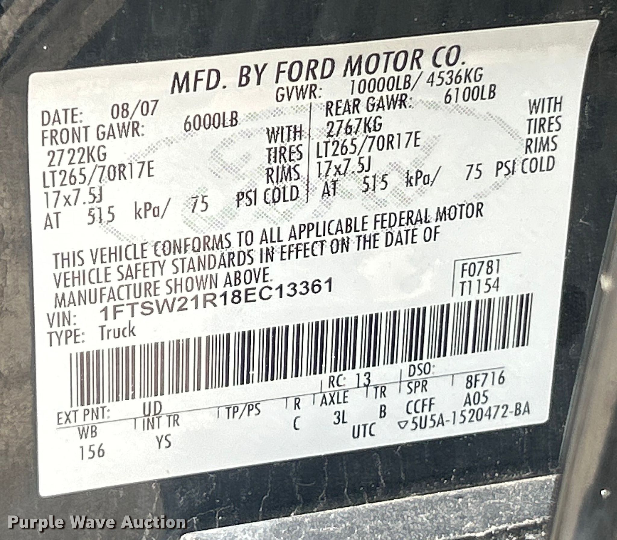 - VIN: 1FTSW21R18EC13361