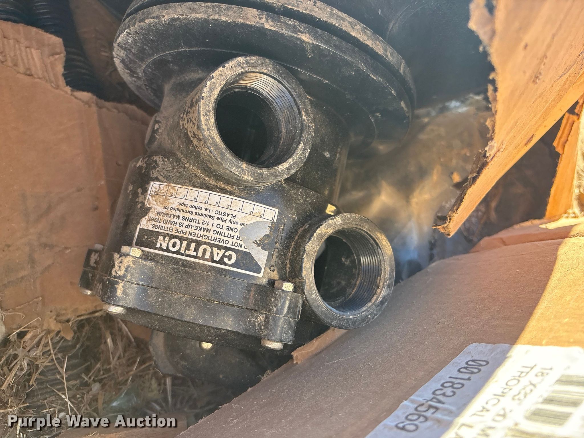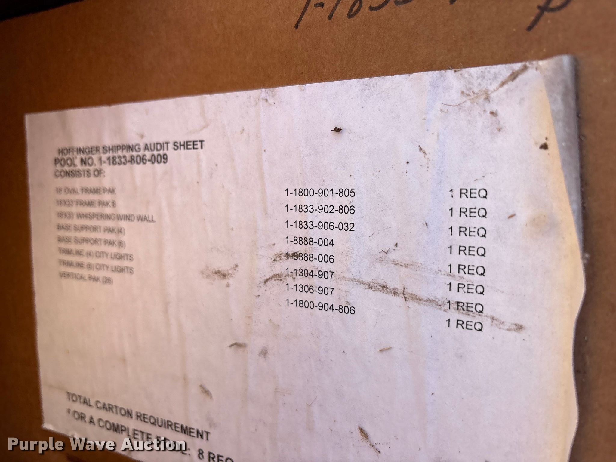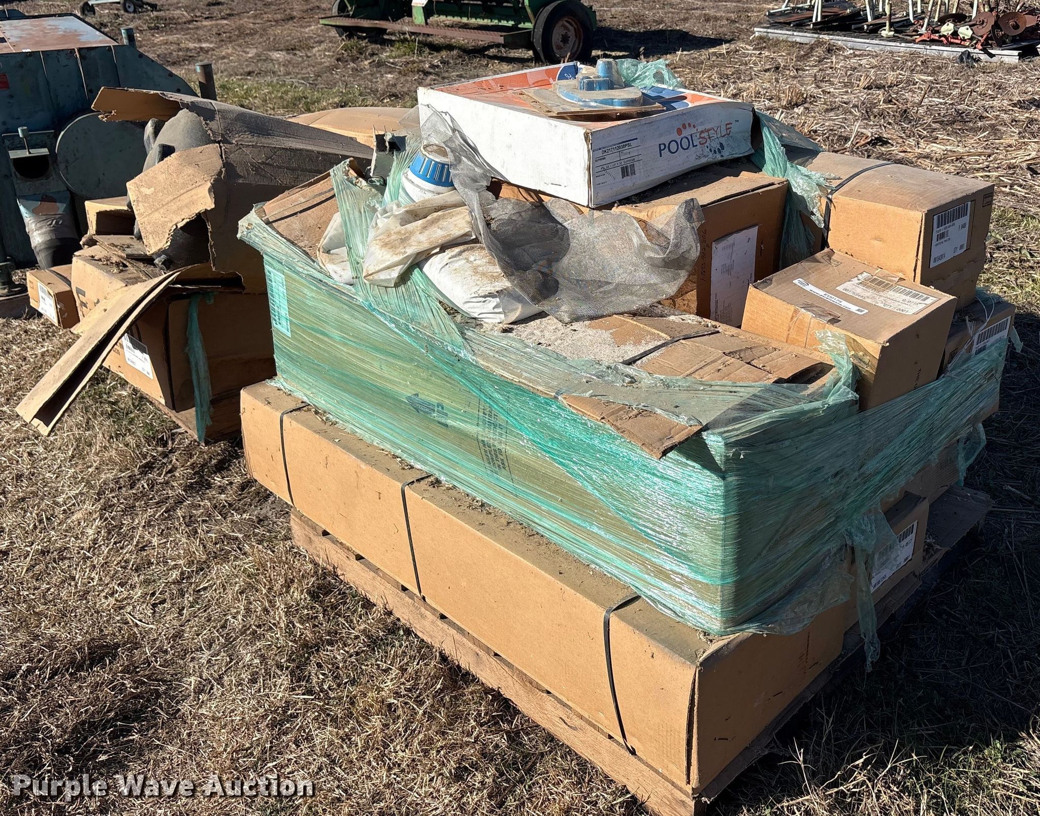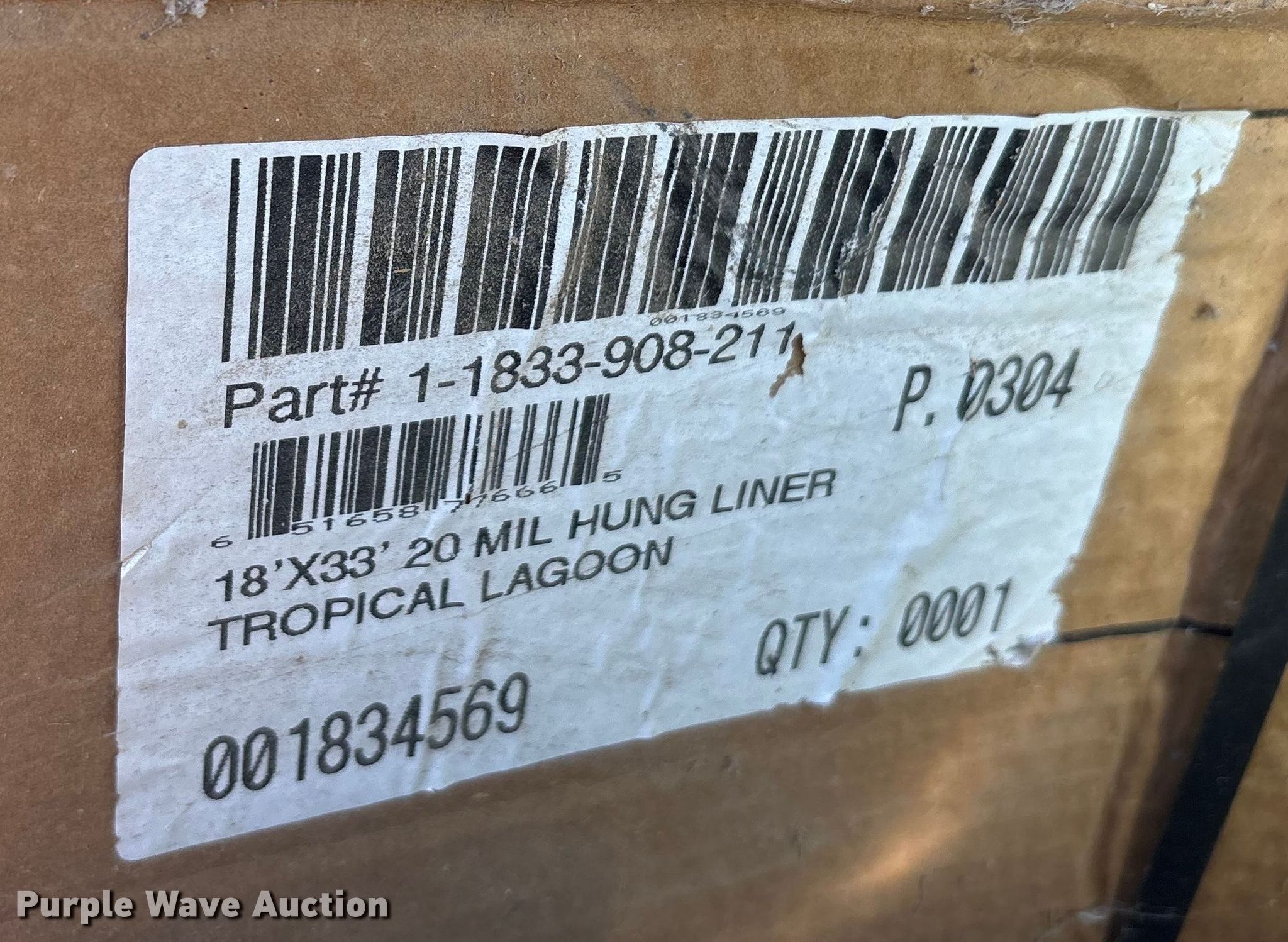 Tools. Sand filter, (6) base support paks, (10) Trime lines lights, (28) vertical paks, Hydroskimmer, 18" oval frame pak, Whispering wind wall 18' x 33', Mil Hung lagoon liner 18' x 20", Platform ladder 52", J hook receiver, Pump. Delta Ag, LLC. Ben Franklin, TX 75415