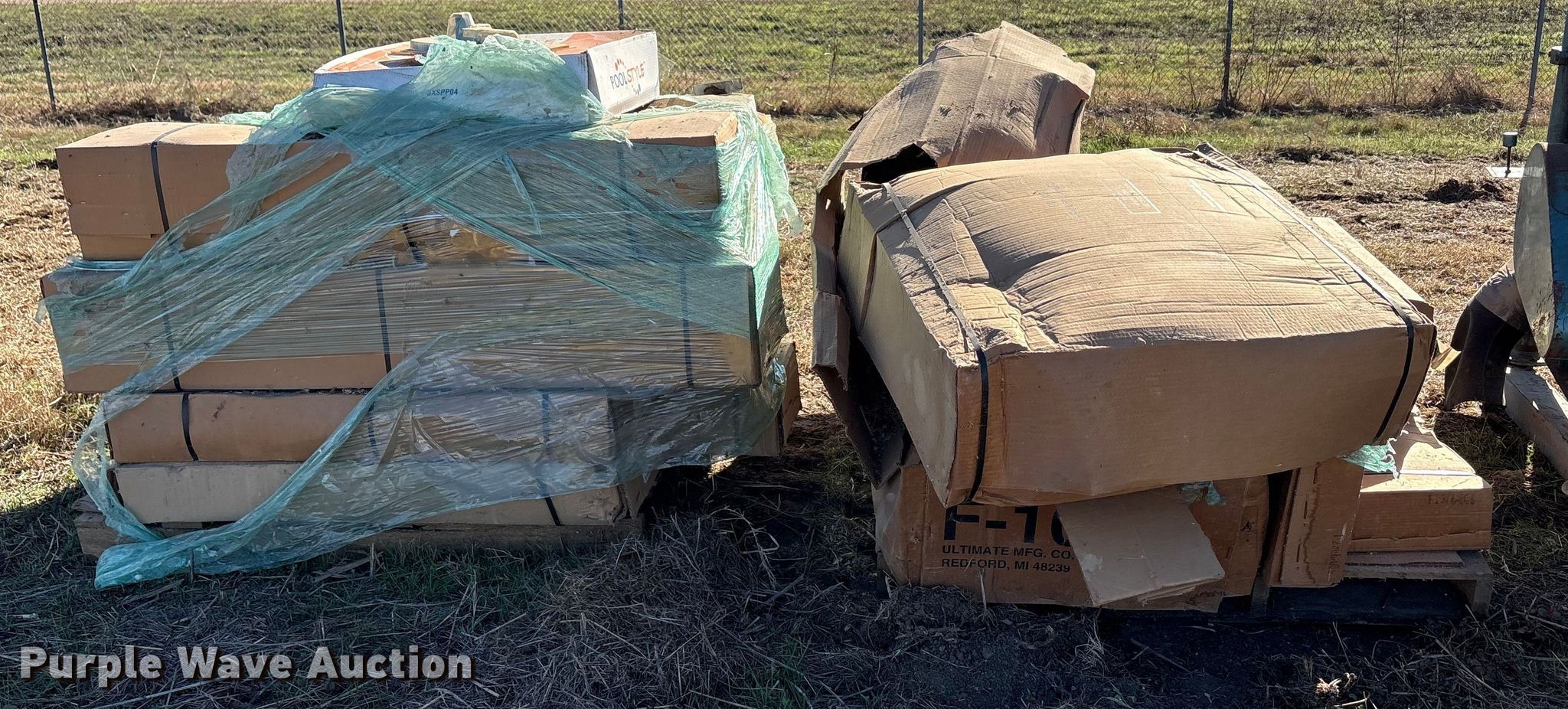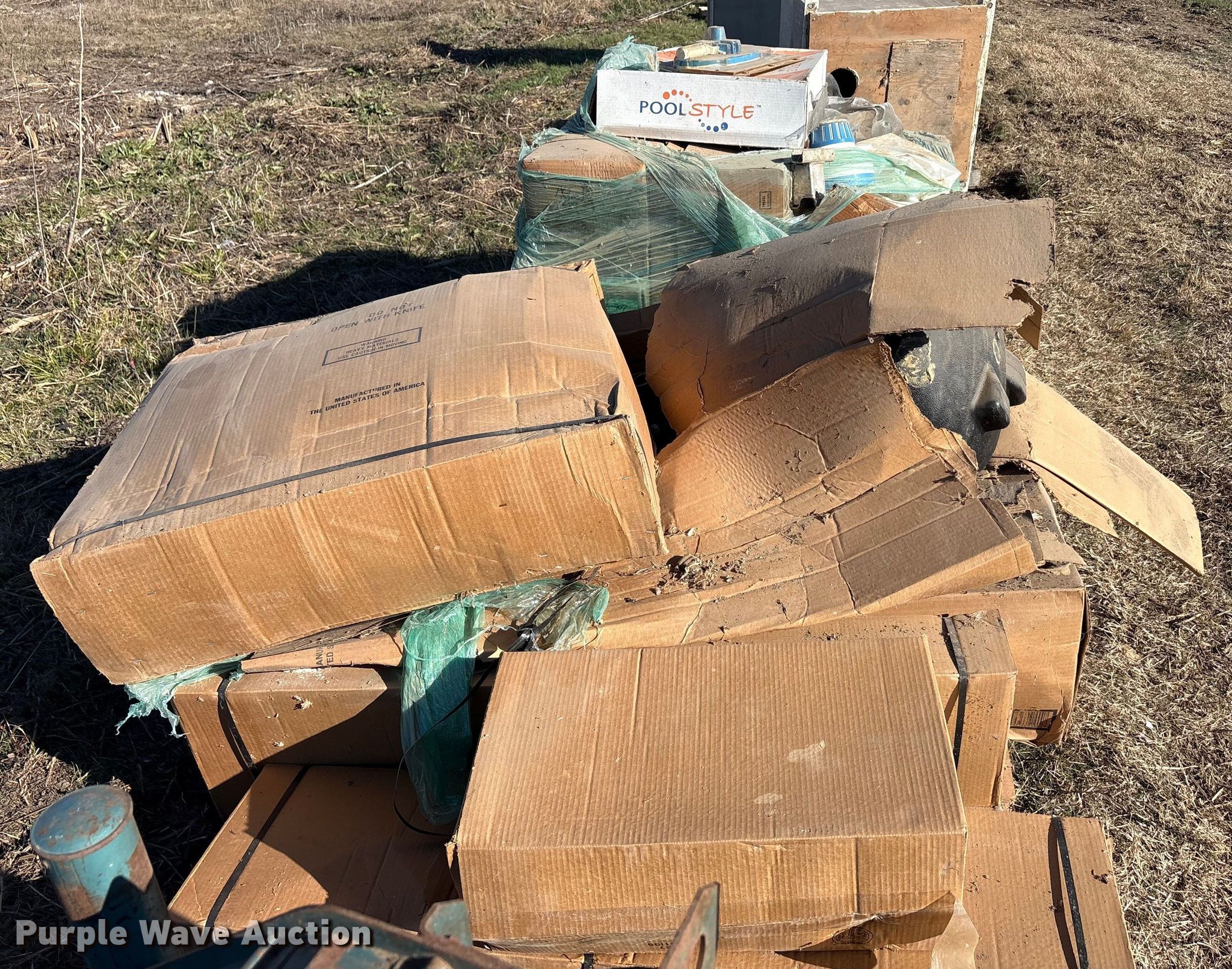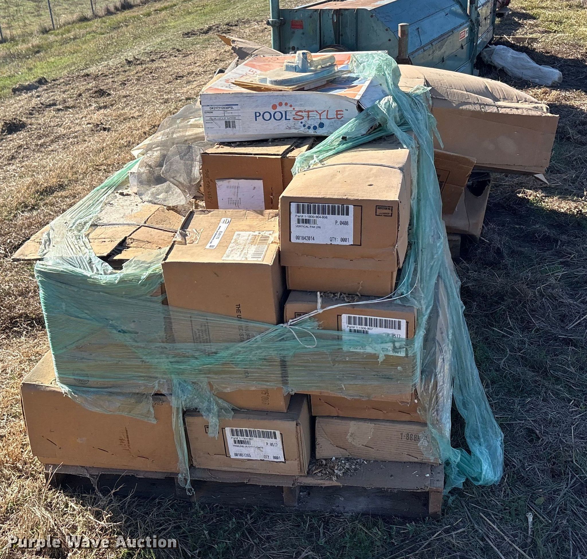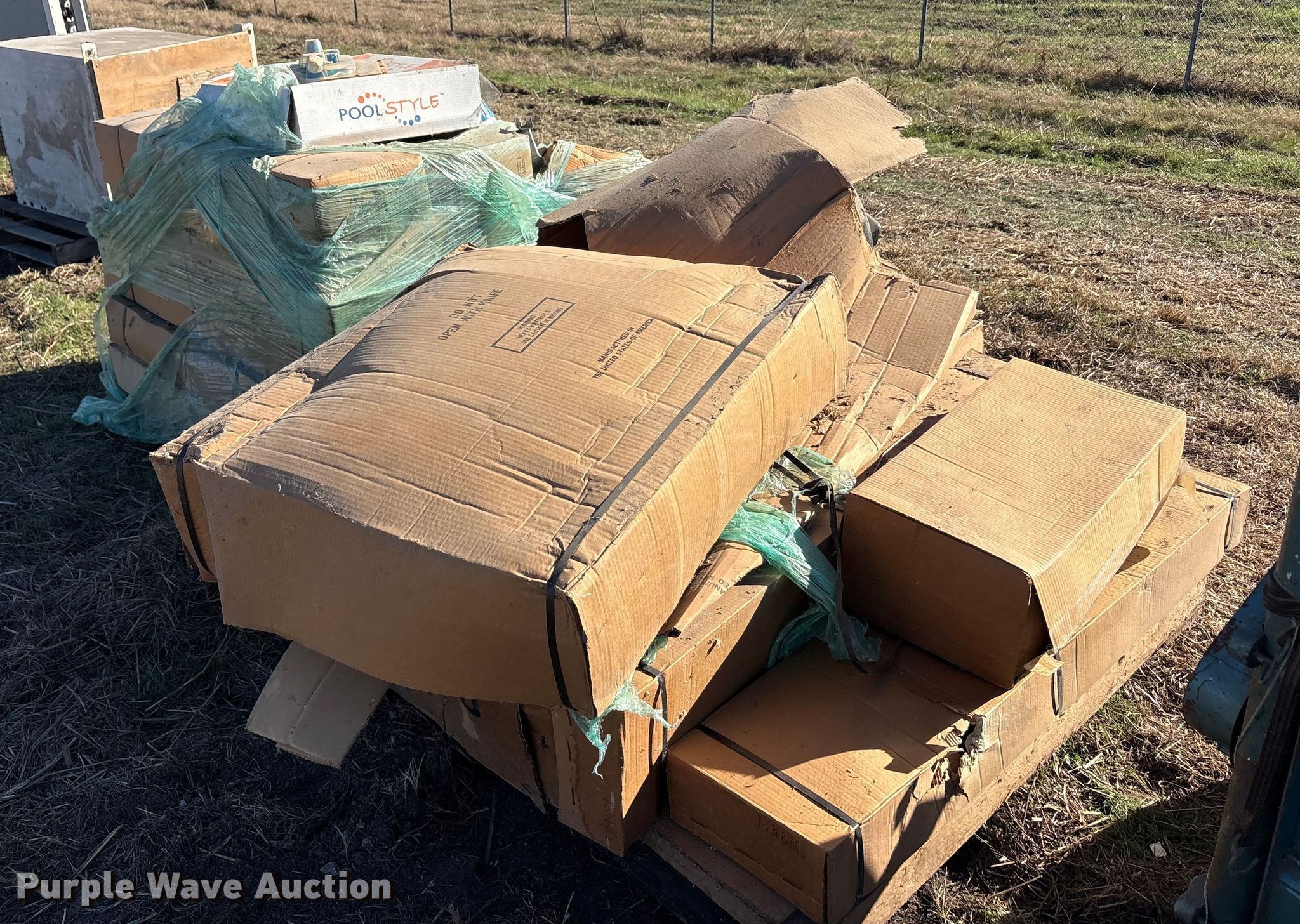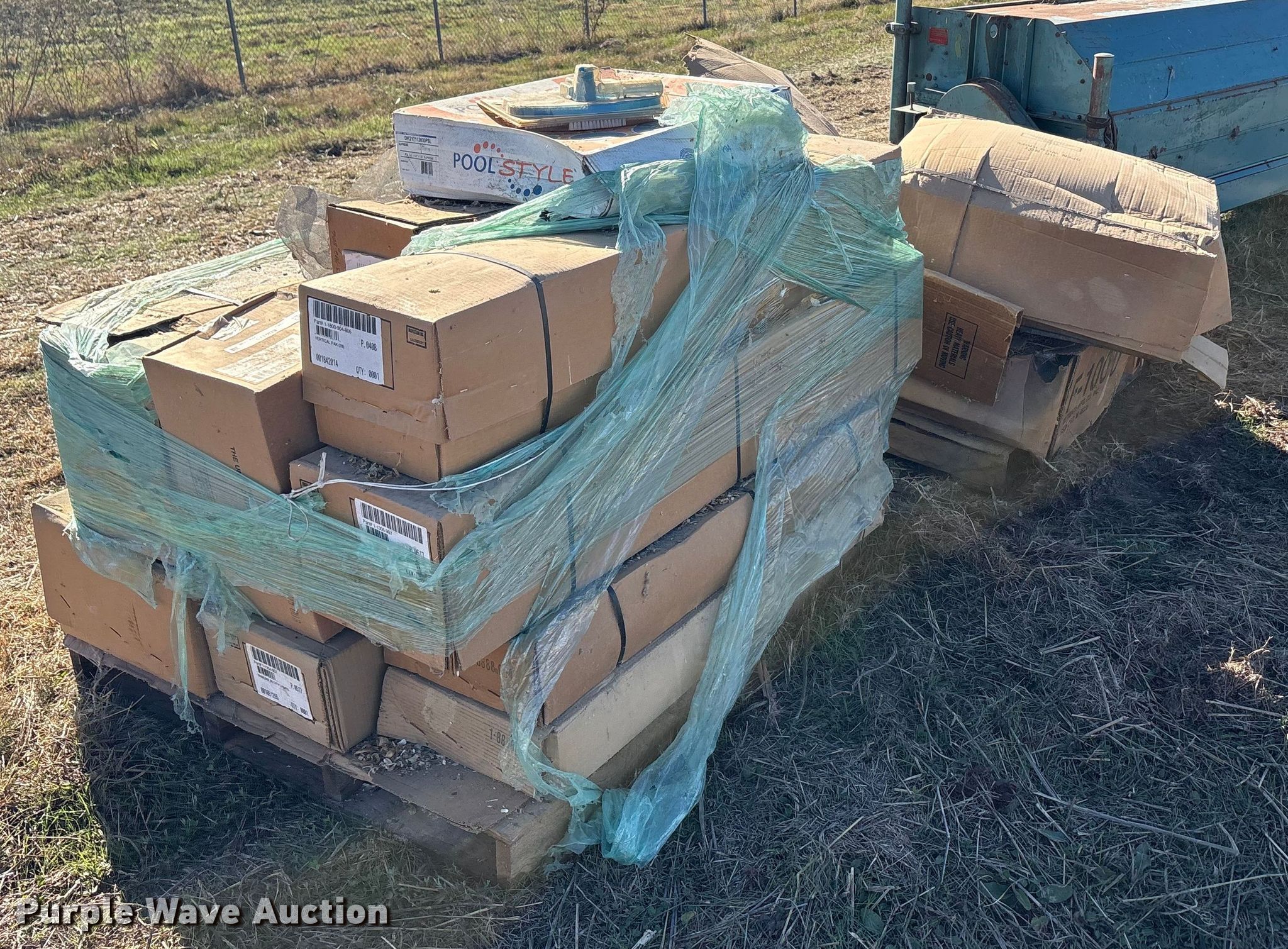 Tools. Sand filter, (6) base support paks, (10) Trime lines lights, (28) vertical paks, Hydroskimmer, 18" oval frame pak, Whispering wind wall 18' x 33', Mil Hung lagoon liner 18' x 20", Platform ladder 52", J hook receiver, Pump. Delta Ag, LLC. Ben Franklin, TX 75415