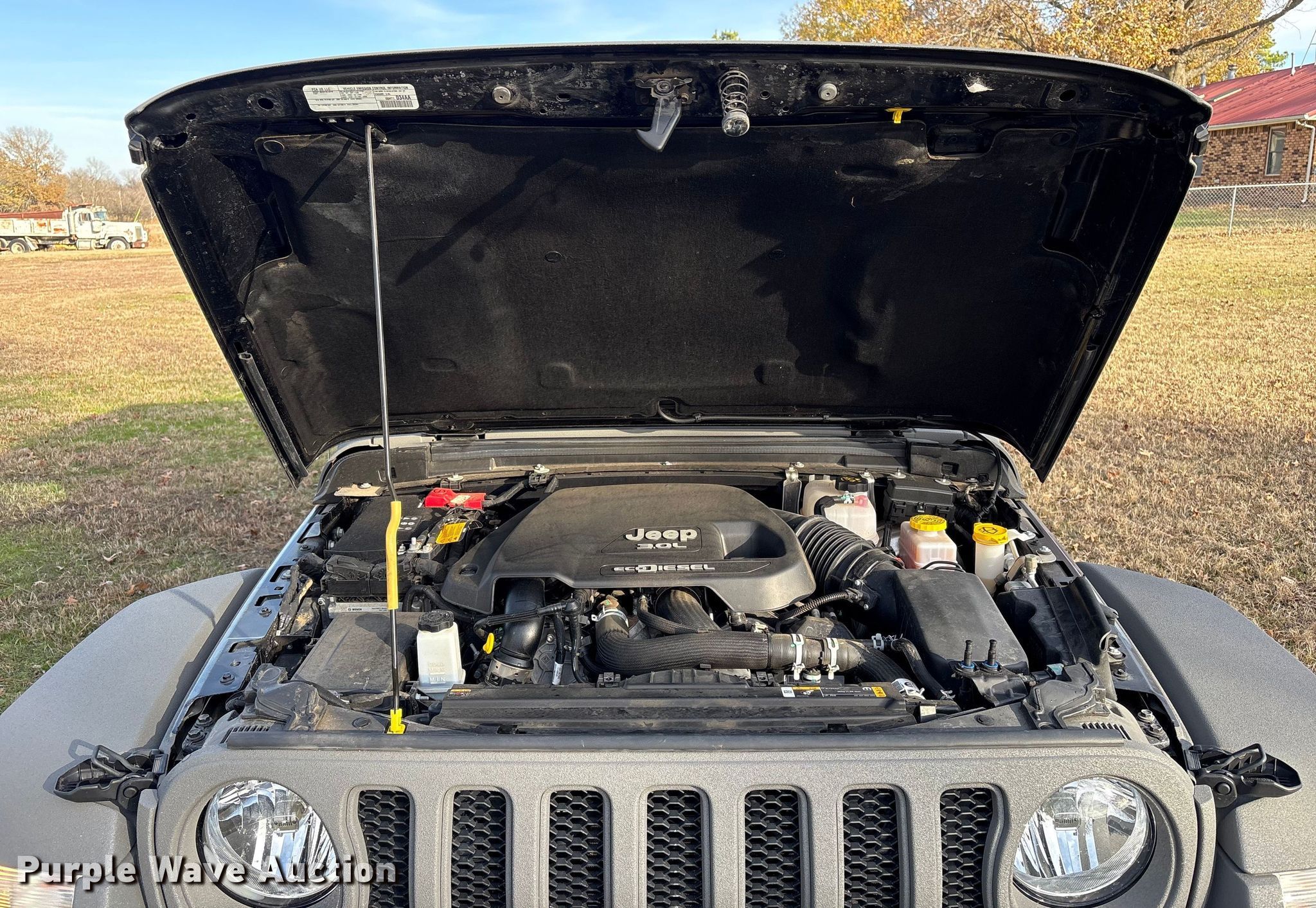 2021 Jeep Wrangler SUV. Miles: 6,730 on odometer, VIN: 1C4JJXFM3MW836828. Engine Displacement: 3.0L, Cylinders: 6, Fuel type: Diesel, HP: 260. Transmission Automatic, Four wheel drive. Interior AC, Heat, Seat: Heated, Power driver, Heated mirrors, Power windows, Power locks, Cruise control, Backup camera, Powered sunroof, Heated Steering Wheel. Tires Size: LT285/70R17. Oklahoma title. Title distribution may be delayed up to 30 days from verification of funds. J&S Dozer Svc. Muskogee, OK 74403