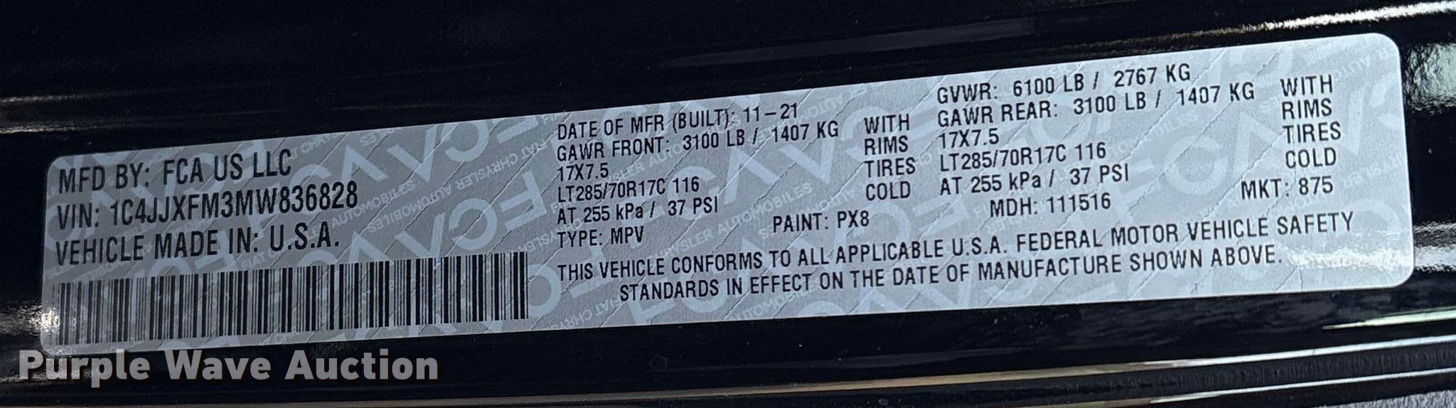 Purple Wave is selling a used Passenger Vehicle in Oklahoma. This item is a 2021 Jeep Wrangler SUV with the following: Miles: 6,730 on odometer, VIN: 1C4JJXFM3MW836828