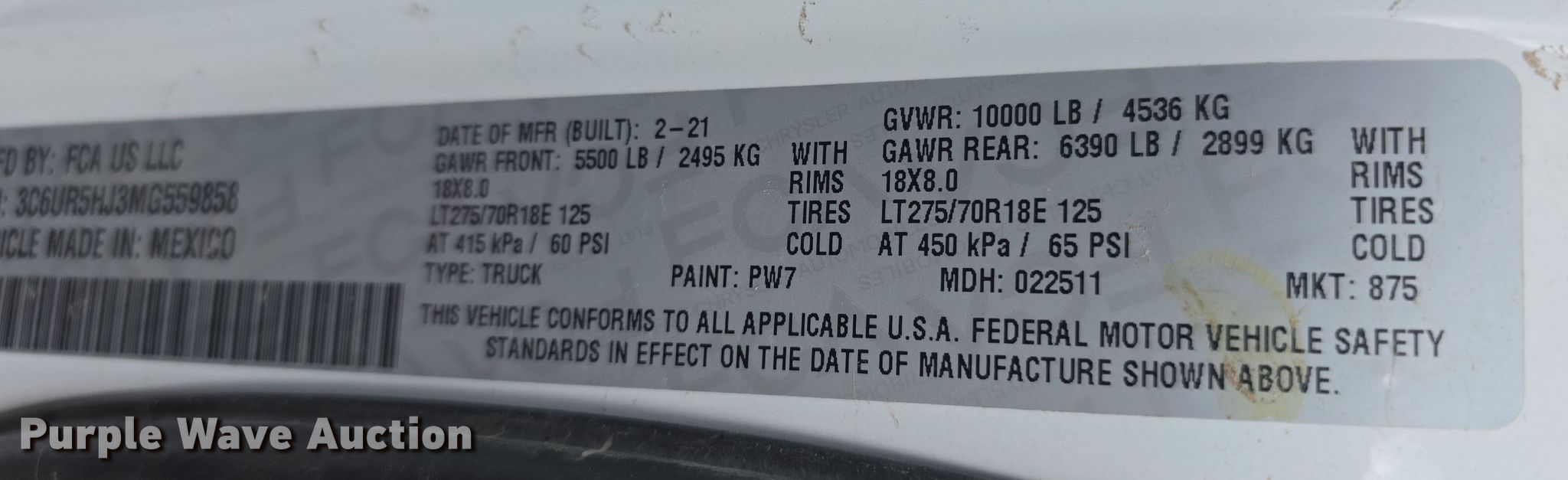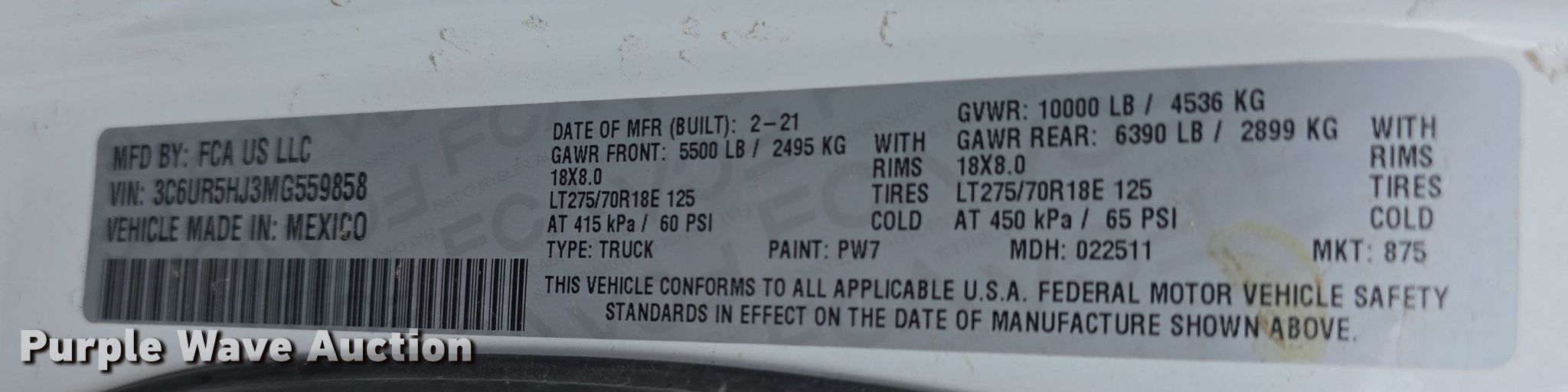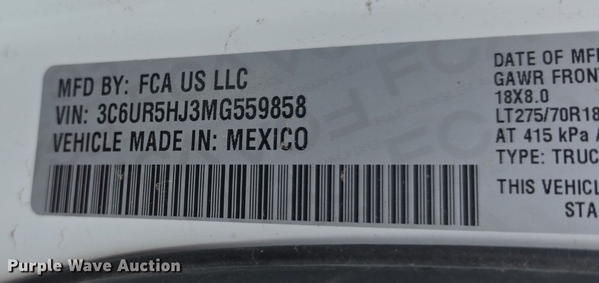 - VIN: 3C6UR5HJ3MG559858