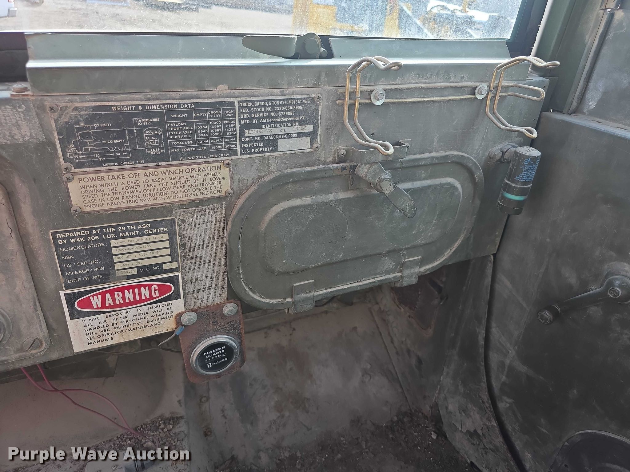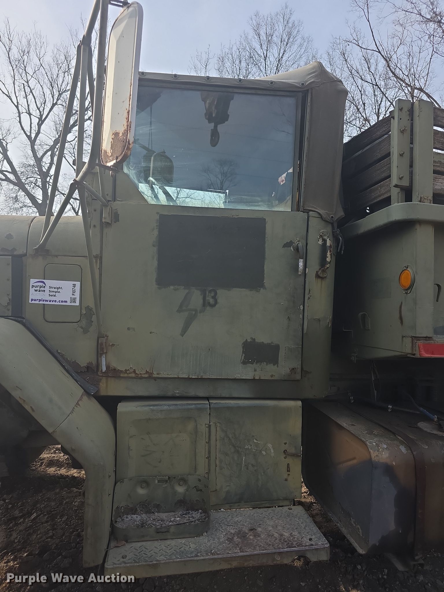 Purple Wave is selling a used Flat Bed Truck in Kansas. This item is a 1972 American M813 flatbed truck with the following: Miles: 37,073 on odometer, Hours: 387 on meter, VIN: NE00D272C13710450, Unit #: 13