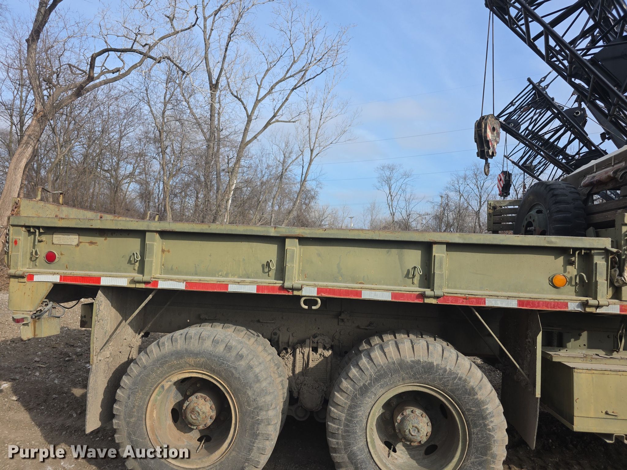 This 1972 American M813 flatbed truck will sell to the highest bidder regardless of price.
