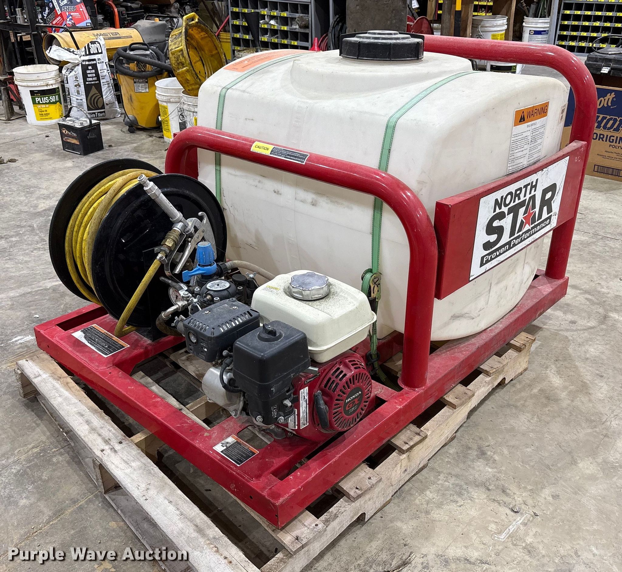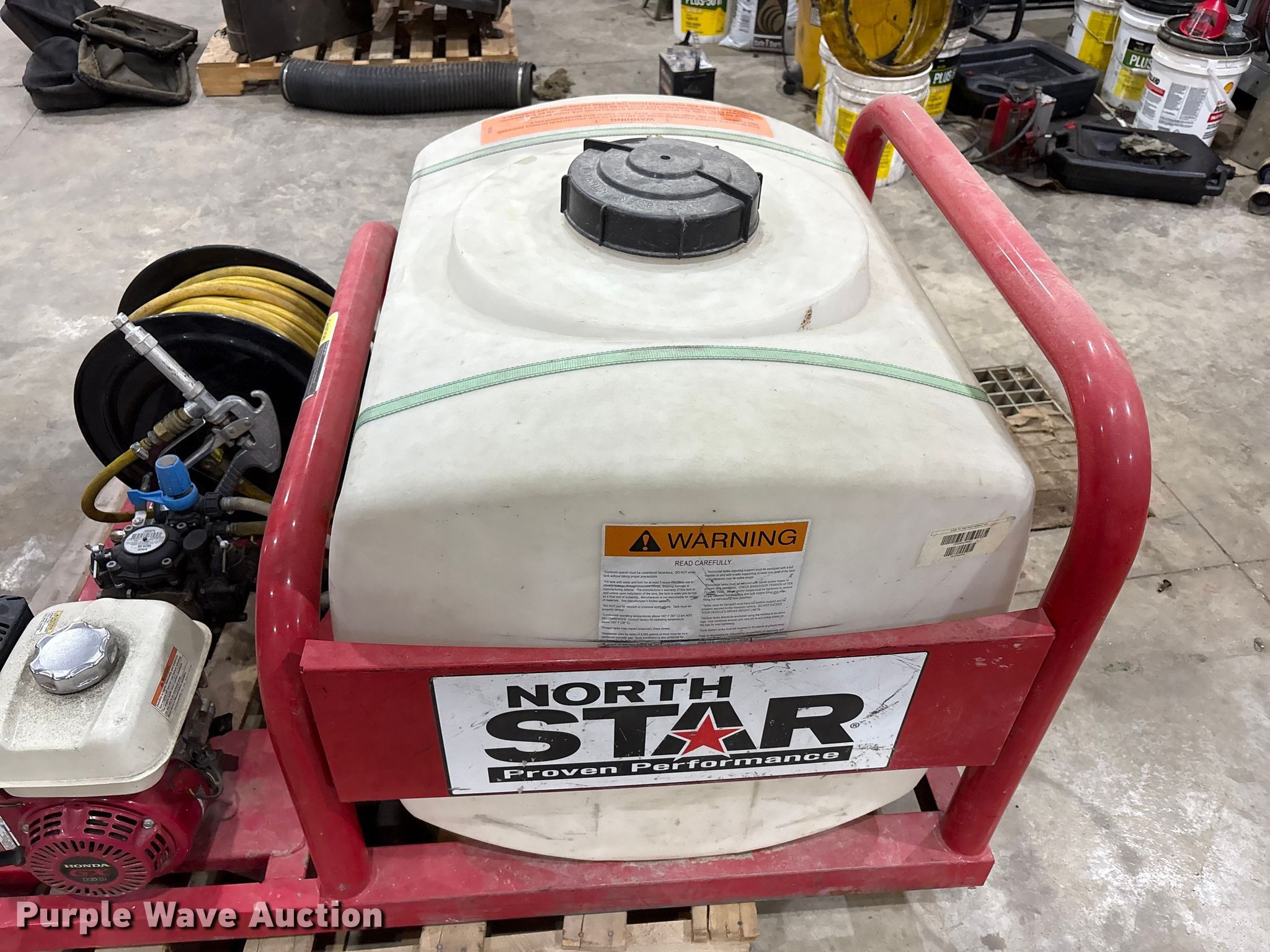 Purple Wave is selling a used Turf Sprayer in Kentucky. This item is a North Star 268177D turf sprayer with the following: Poly tank, Capacity: 100 gallons, Honda GX160 engine, Fuel type: Gas, Comet MC25DS pump, Hose reel, Serial: 268177 1115 4347