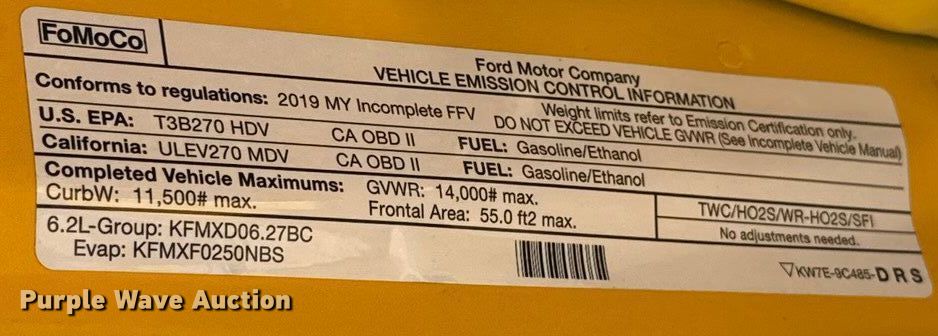 2019 Ford F350 Super Duty XL utility bed pickup truck. Miles: 169,893 on odometer, VIN: 1FDRF3B60KEG25489, Unit #: 907. Engine Displacement: 6.2L V8 OHV, Cylinders: 8, Fuel type: Gas. Transmission Automatic, Four wheel drive. Interior AC, Heat, Heated mirrors, Power windows, Power locks, Cruise control, Auxiliary controls, Brake controller. Features Bed Utility bed, Reading, Length: 8' 2", Width: 78", End gate lift Maxon ME2, Serial: 2001537716, Capacity: 1,300 lbs. Tires Size: LT275/65R18. Notes Dash warning indicator: Check engine, Airbag, Windshield chipped or cracked, Passenger door damaged, Passenger mirror missing, Glass cracked, Passenger side head light damaged, Hood damaged, Box bed damaged. Oklahoma title. Title distribution may be delayed up to 30 days from verification of funds. Gemini Motor Transport. Oklahoma City, OK 73127