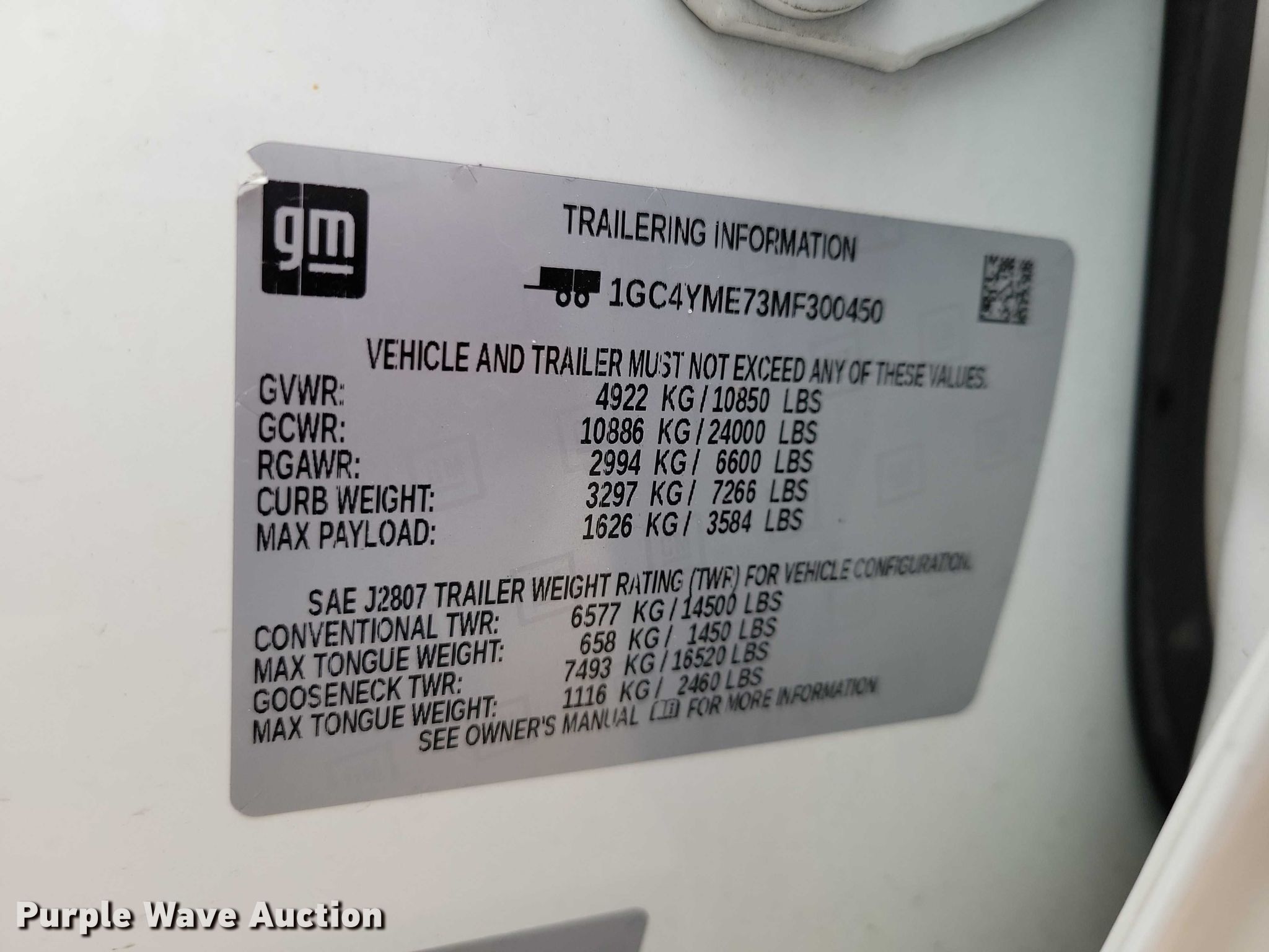 - VIN: 1GC4YME73MF300450