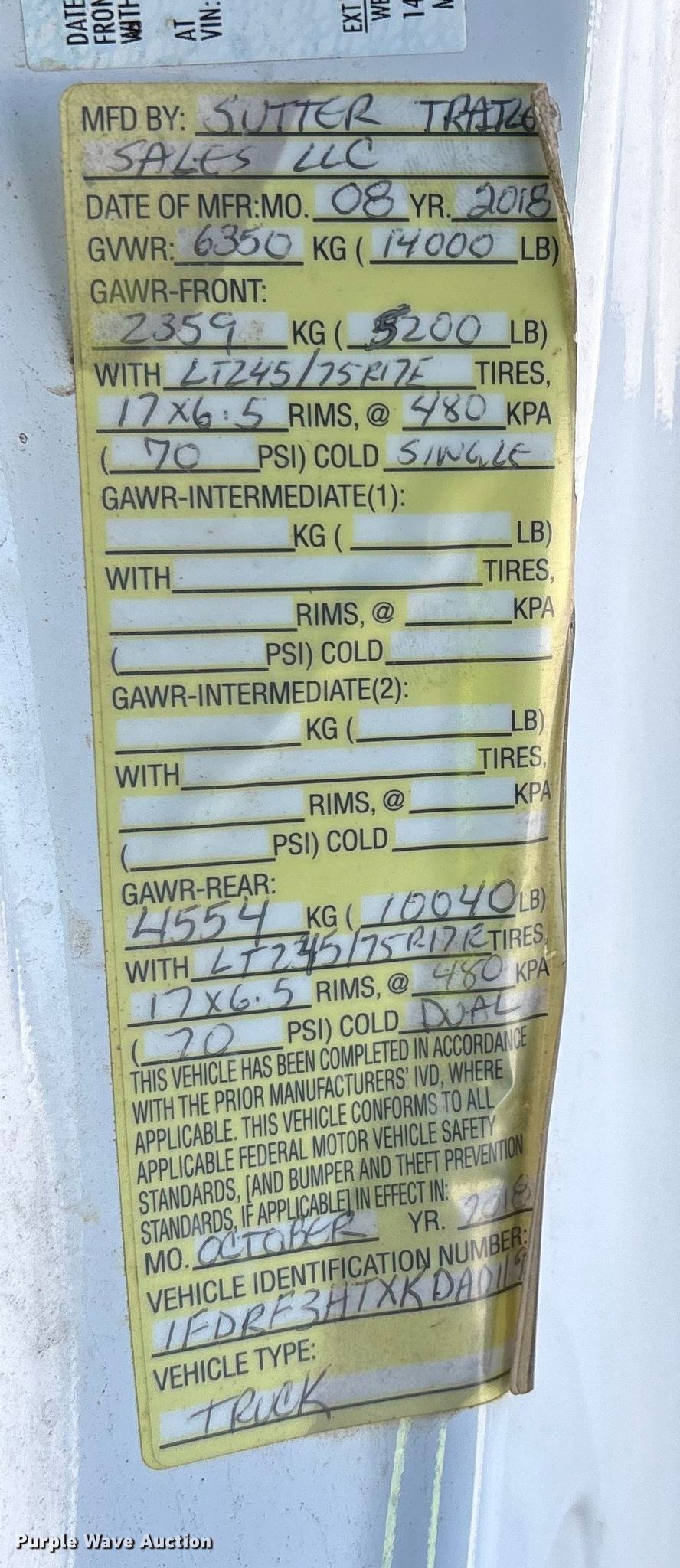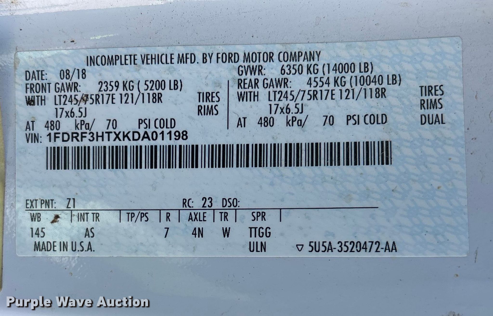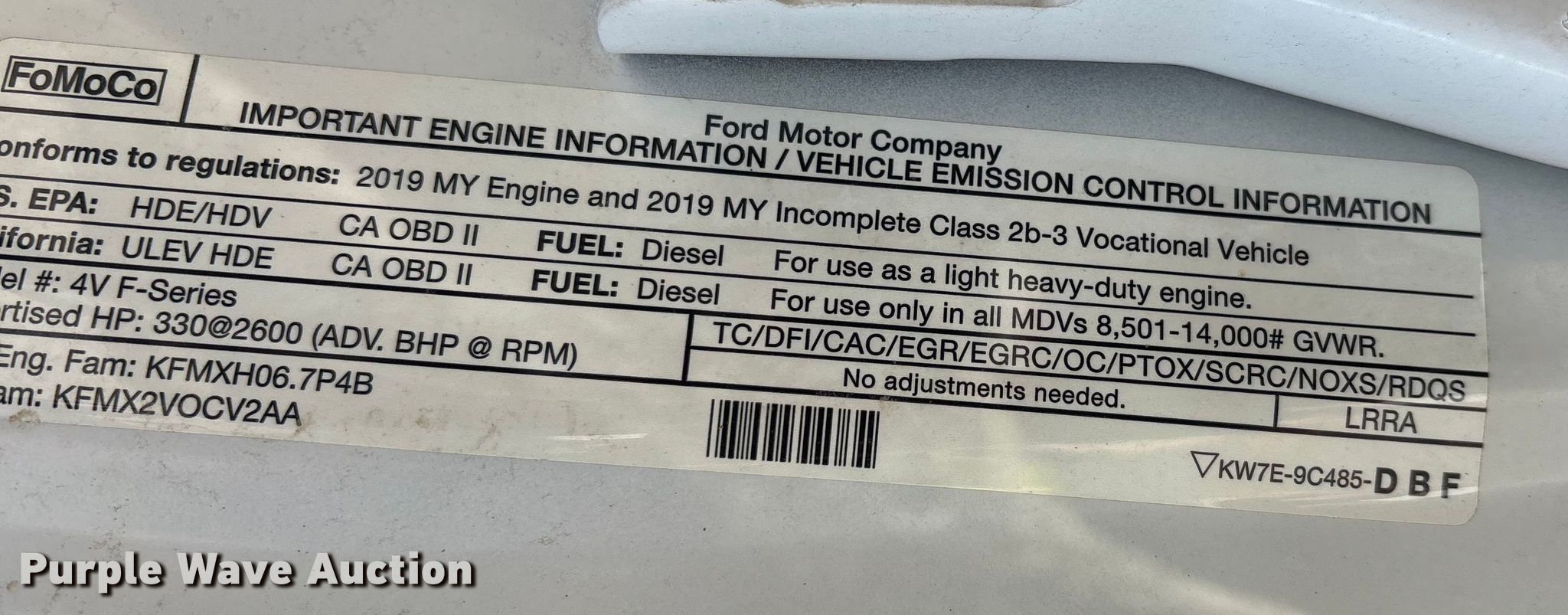 2019 Ford F350 Super Duty XL flatbed pickup truck. Miles: 76,250 on odometer, Hours: 4,989 on meter, VIN: 1FDRF3HTXKDA01198, Unit #: 94655435. Engine Displacement: 6.7L, Cylinders: 8, Fuel type: Diesel. Transmission Automatic, Four wheel drive. Interior AC, Heat, Heated mirrors, Power windows, Power locks, Cruise control, Auxiliary controls, Brake controller. Features Bed Flatbed, CM, Length: 9' 8", Width: 7' 6", Hitch: Gooseneck. Tires Size: 245/75R17. Notes Collision damage, Dash warning indicator: TPMS. Insurance salvage, stored at a secured facility. Please review REQUIRED REMOVAL INSTRUCTIONS. Titles will be distributed after confirmation of payment and removal. Kentucky salvage title. Title distribution may be delayed up to 30 days from verification of funds. Insurance Salvage. 700 Sandcut Road. Earlington, KY 42410