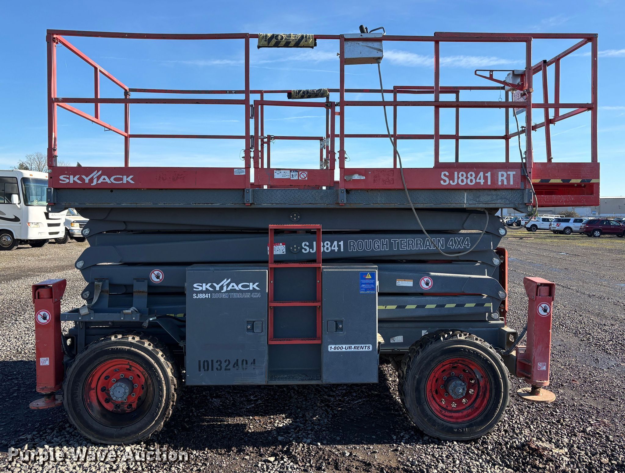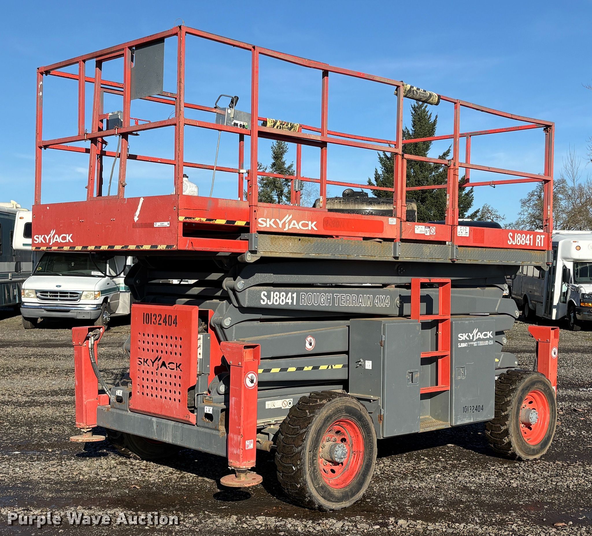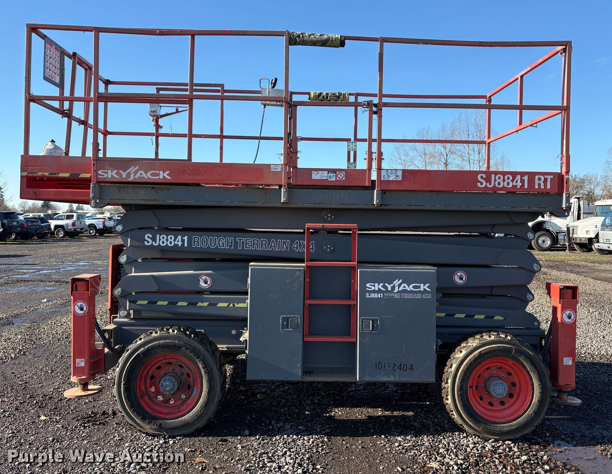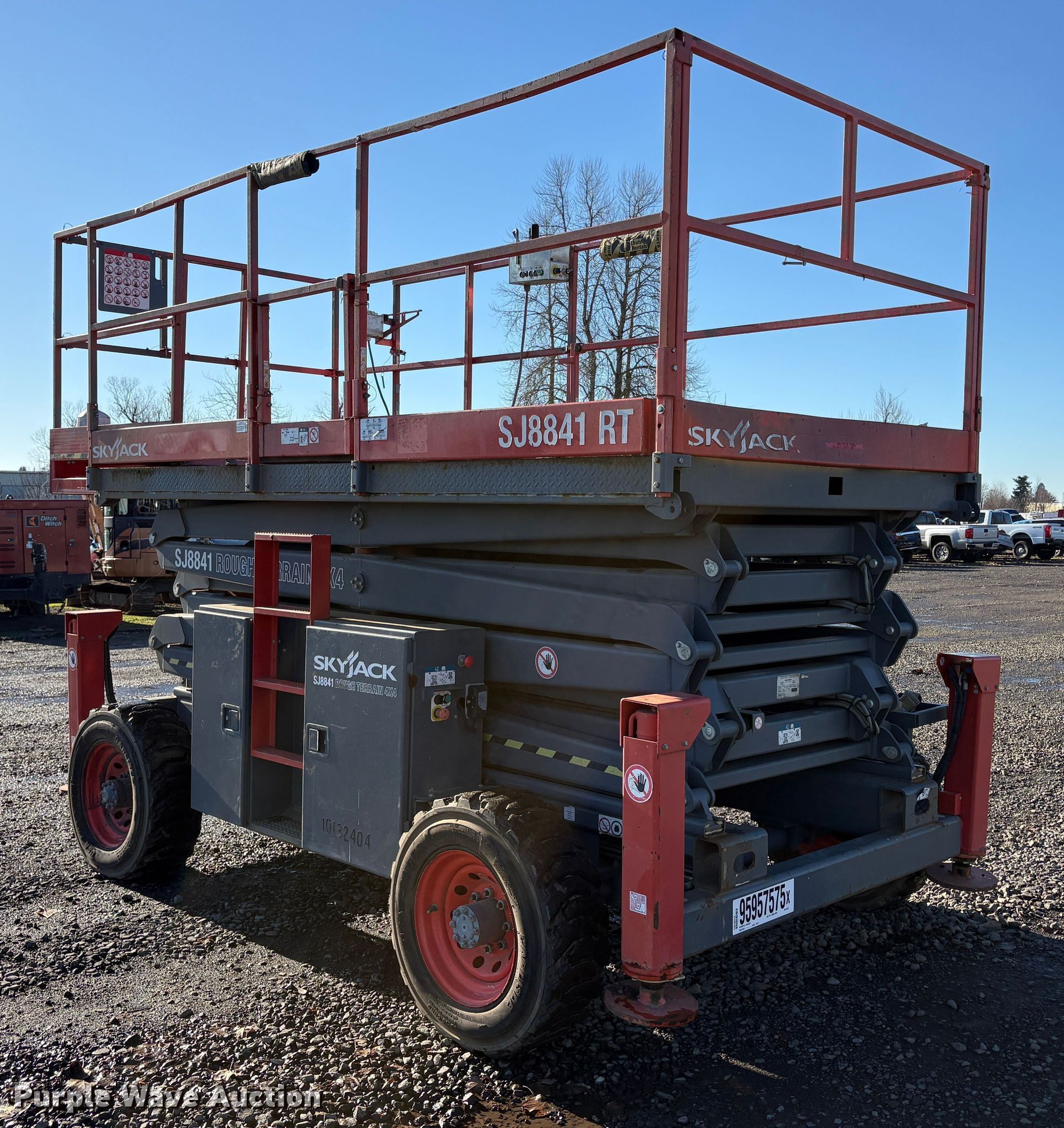 Purple Wave is selling a used Scissor or Vertical Lift in Oregon. This item is a SkyJack SJ8841 RT scissor lift with the following: Hours: 3,248 on meter, Serial: 40001039, Unit #: 95957575