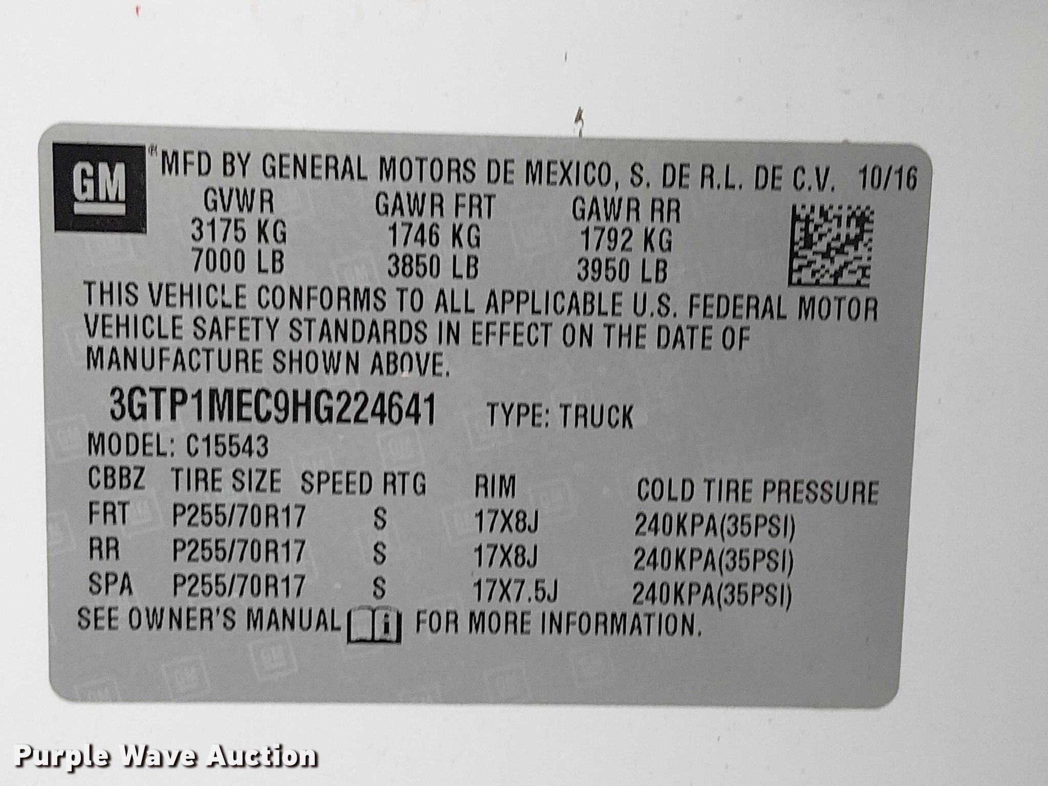 Purple Wave is selling a used 1/2 Ton Pickup or Van in Nevada. This item is a 2017 GMC Sierra Crew Cab pickup truck with the following: Miles: 144,322 on odometer, Hours: 15,208 on meter, VIN: 3GTP1MEC9HG224641, Unit #: 96010365