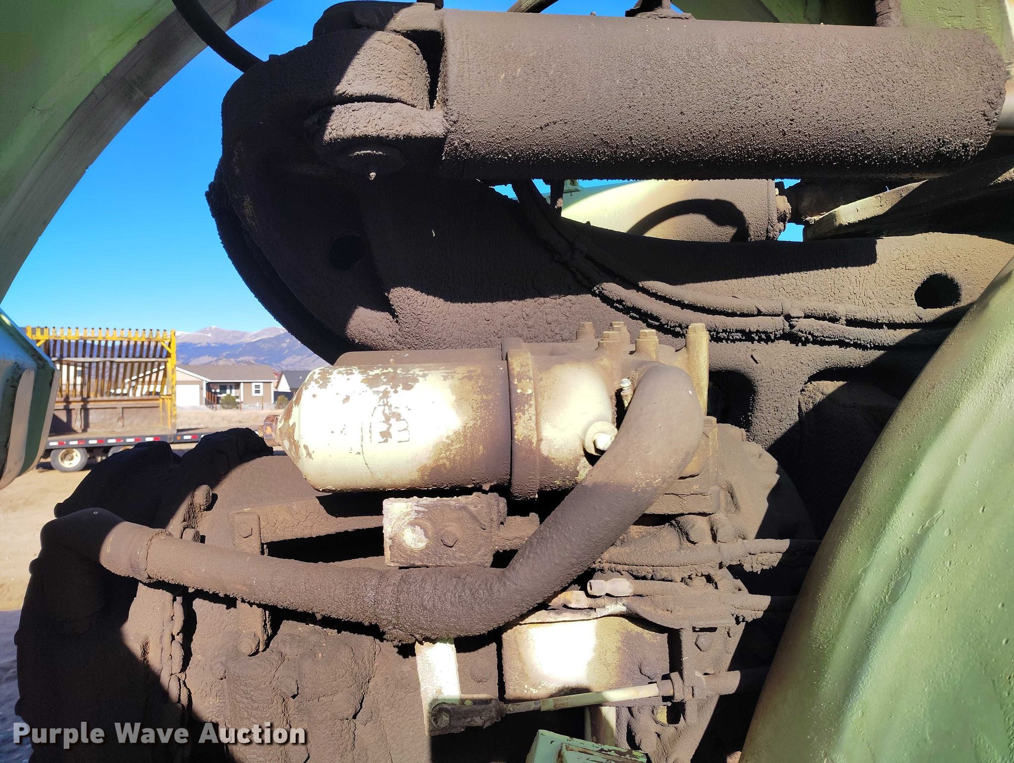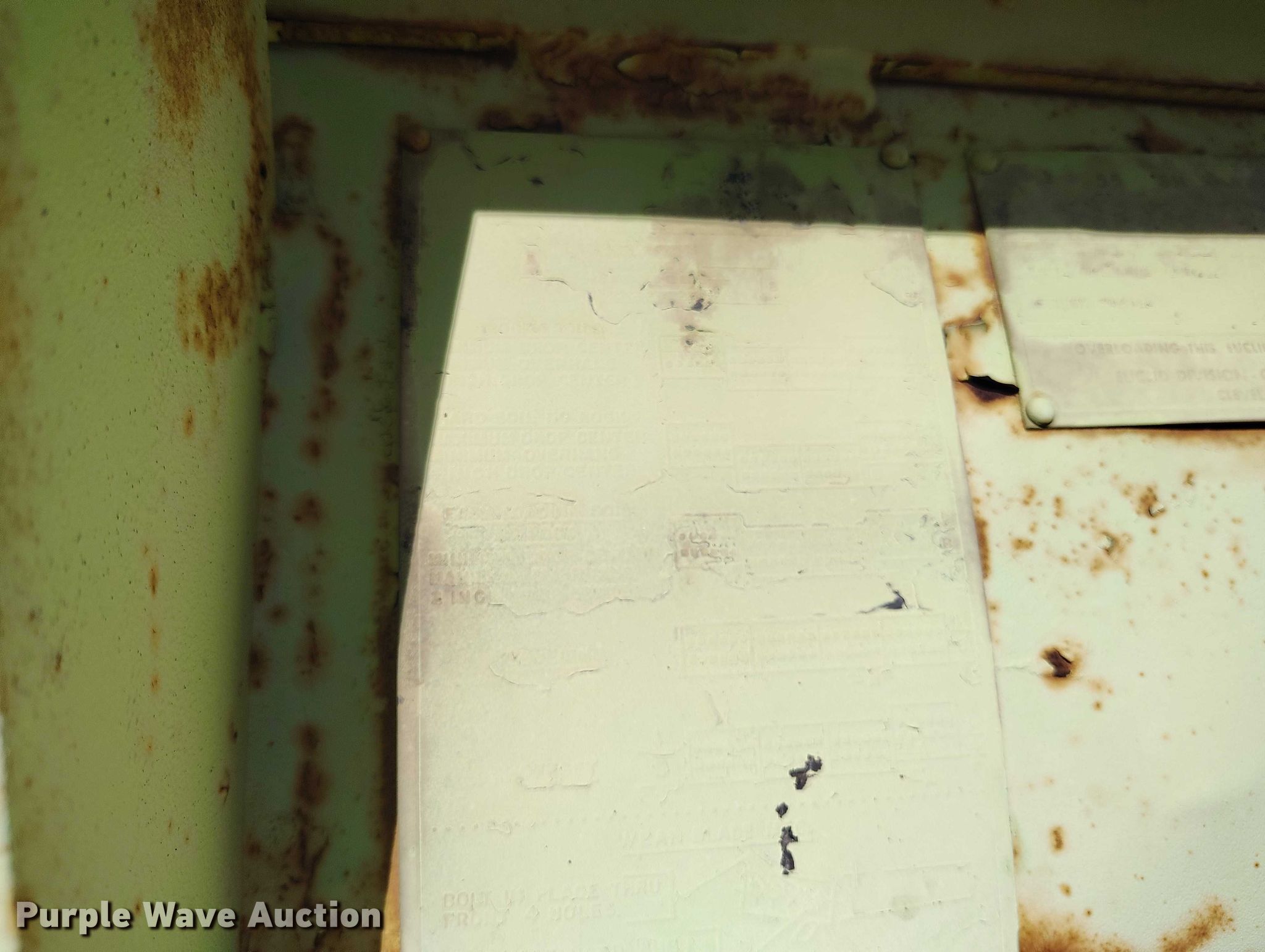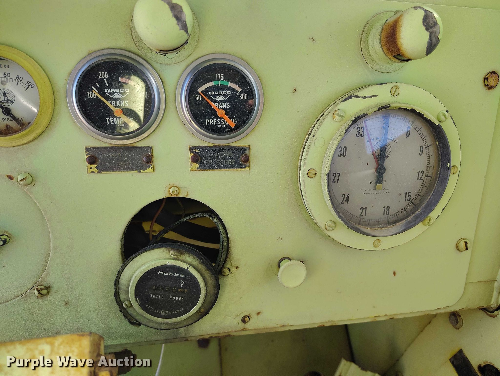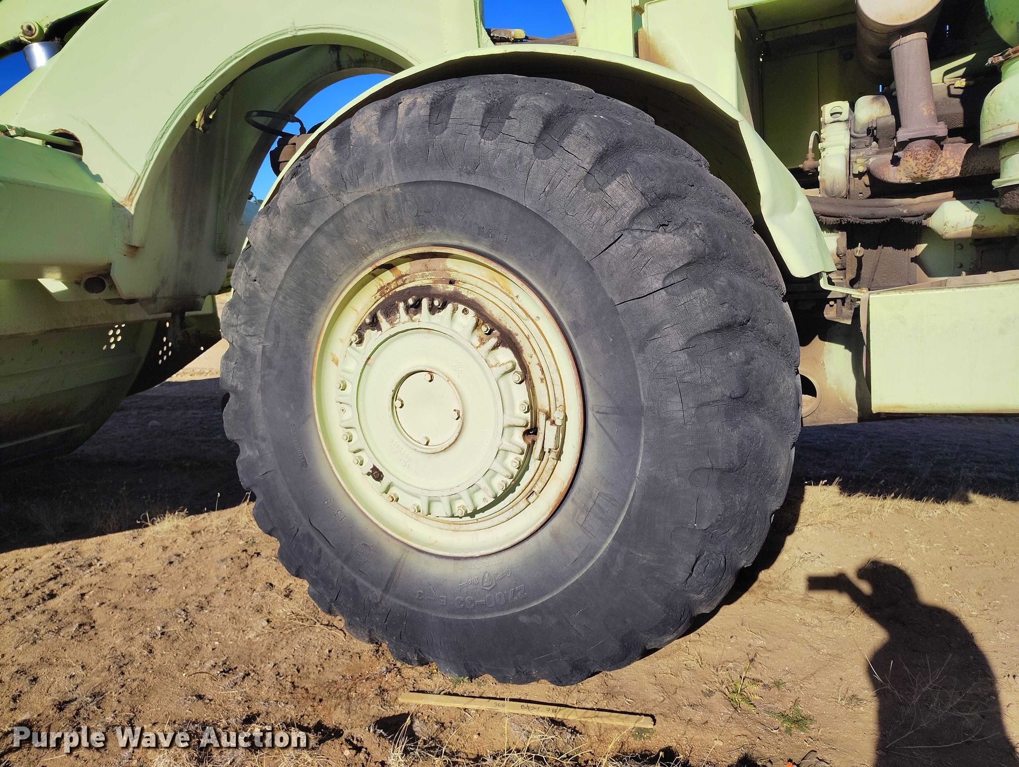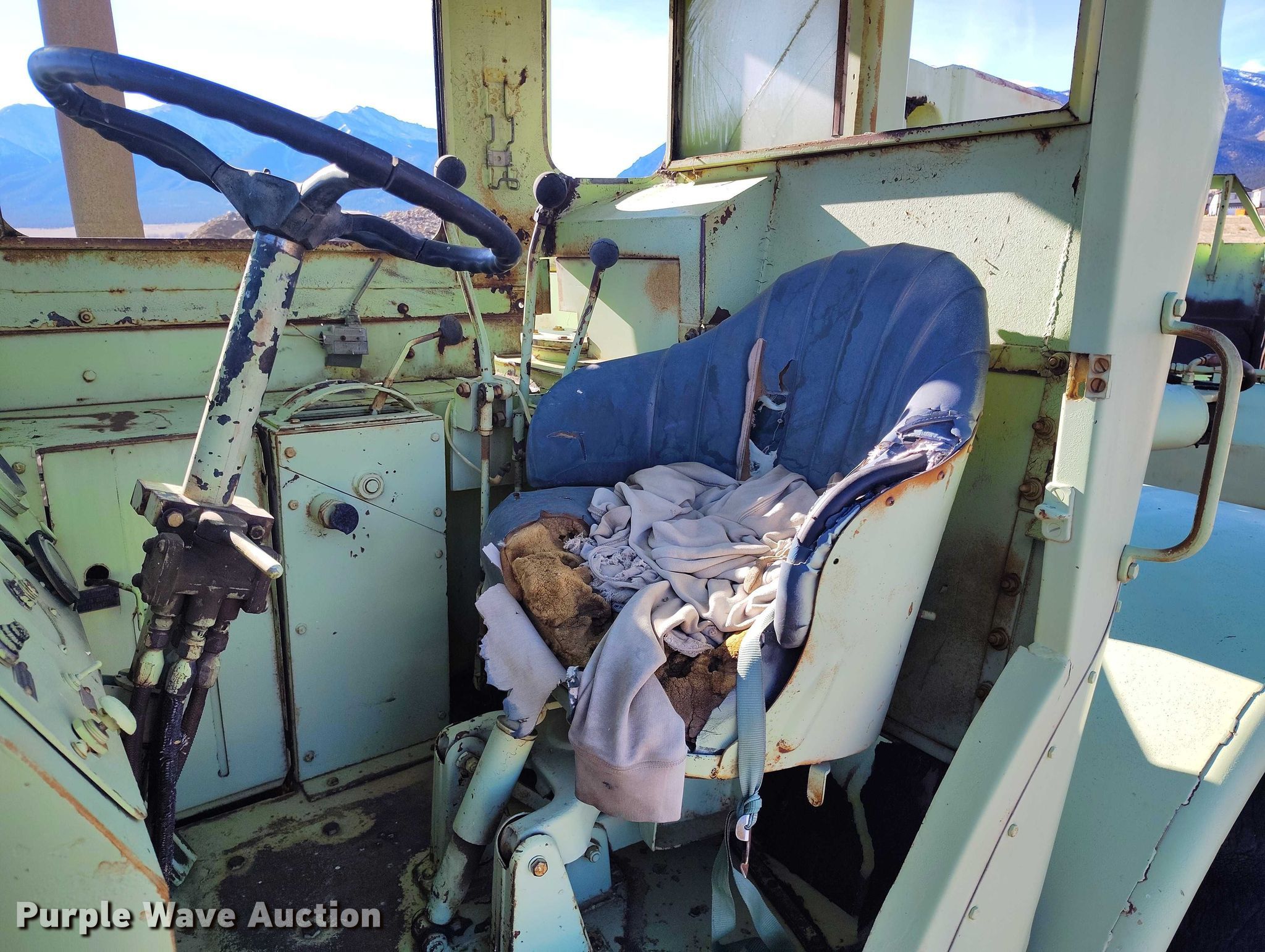 Terex 39LOT conventional scraper. Hours: 4,109 on meter, Serial: 39051. Engine Detroit, Cylinders: 8, Fuel type: Diesel. Transmission Powershift, 6F - 1R. Chassis Brakes: Air. Operators station Enclosed cab. Features Bowl capacity: 24 cu.yd., Hydraulic lift, Scraper controls: Lever controls No. of controls: 3, Rear push block. Tires Size: 27.00-33. Notes Cab door missing, Tires damaged, dry rot, Glass cracked, Non-operational engine , Non-operational unit. Denver East Machinery Company. Buena Vista, CO 81211
