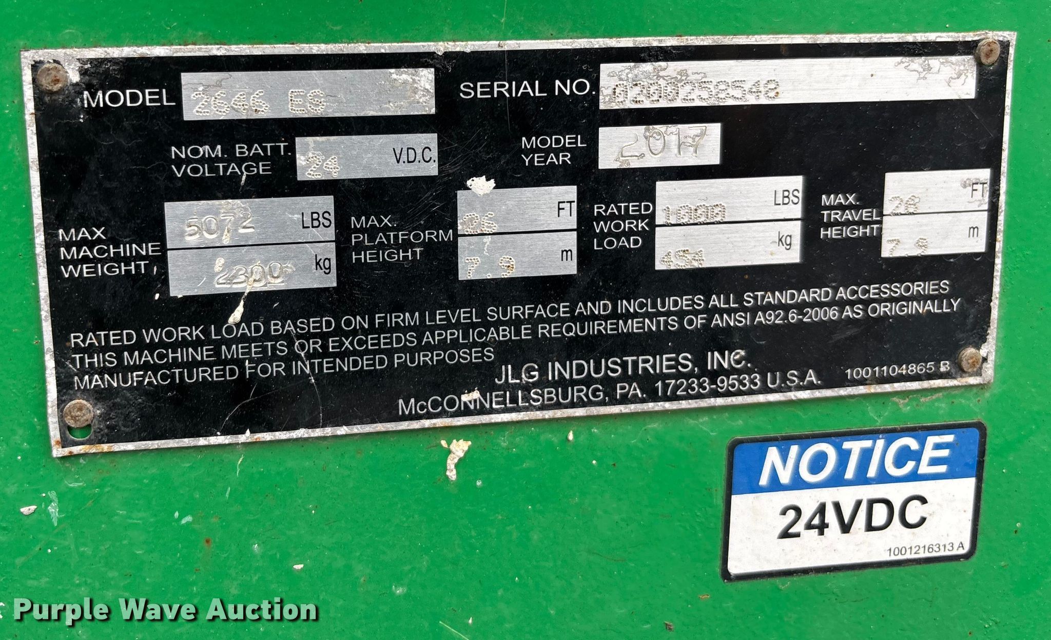 • DU0322 image for item DU0322 2017 JLG 2646ES scissor lift