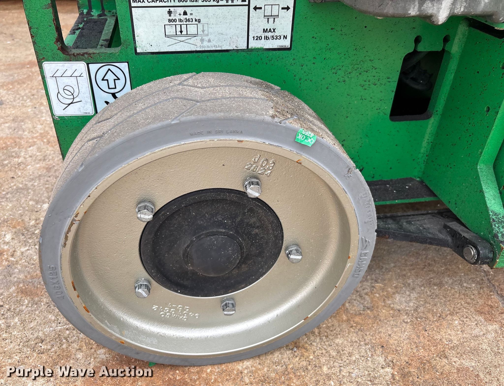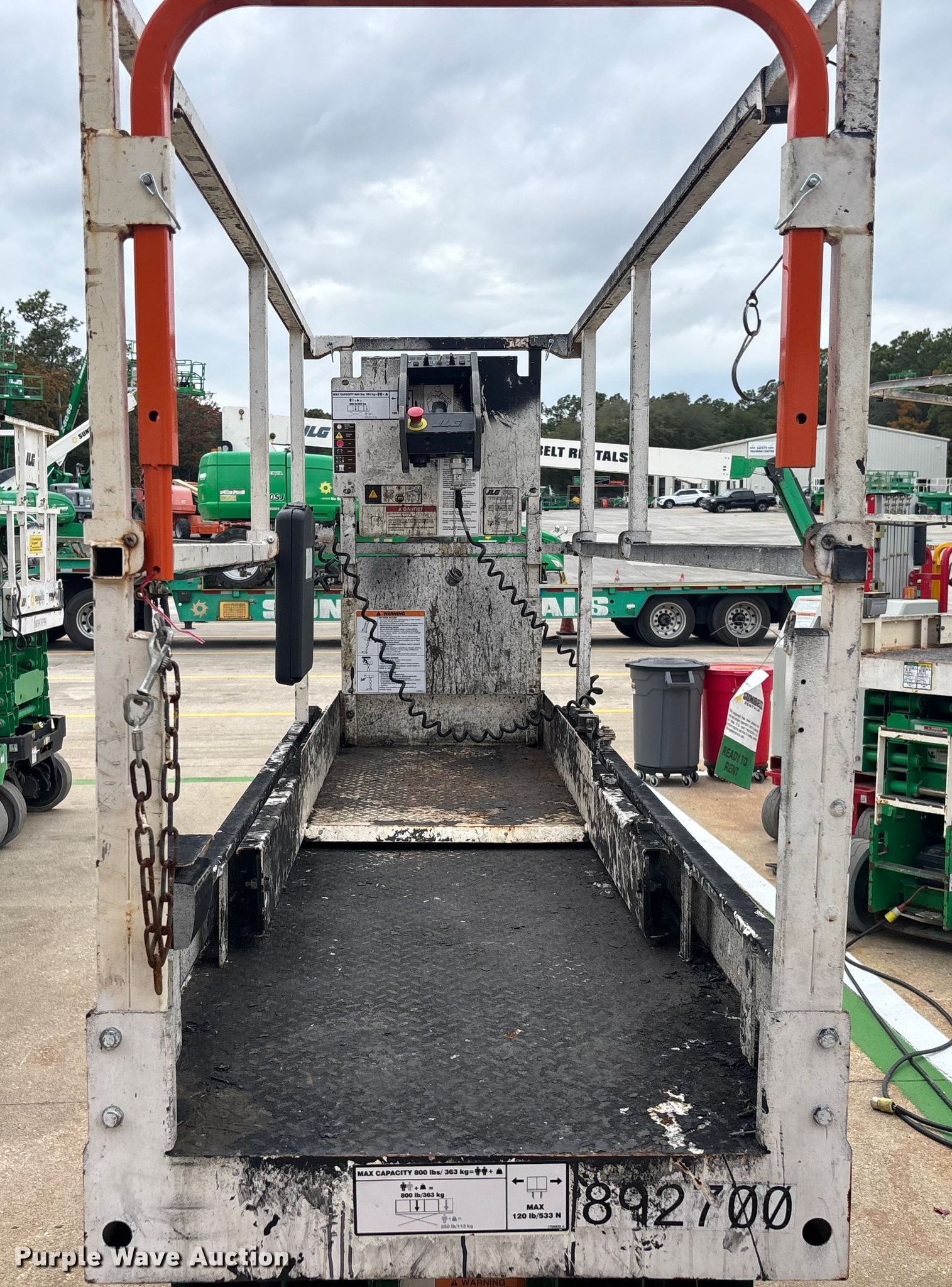 2016 JLG 2032ES scissor lift. Hours: 95 on meter, Serial: 0200257703. Electric Motor Volts: 24. Features Maximum lift capacity: 800 lbs, Maximum lift height: 20', AC power outlet, Controls: Remote Control, Ground, Platform extensions: Manual, Safety alarm. Tires Tire size: 406x125, Solid, Non-marking. Sunbelt Rentals. Jacksonville, FL 32226