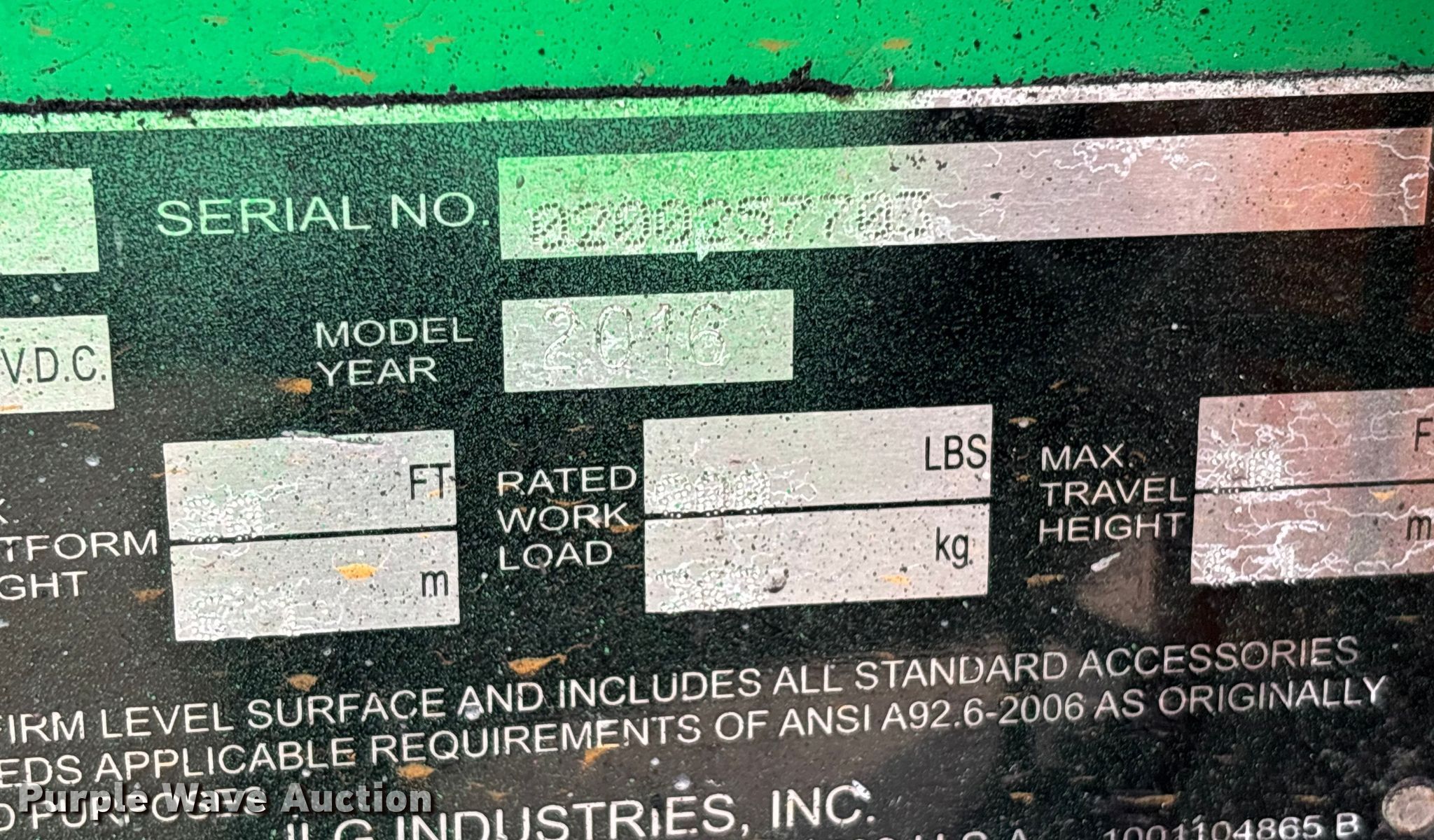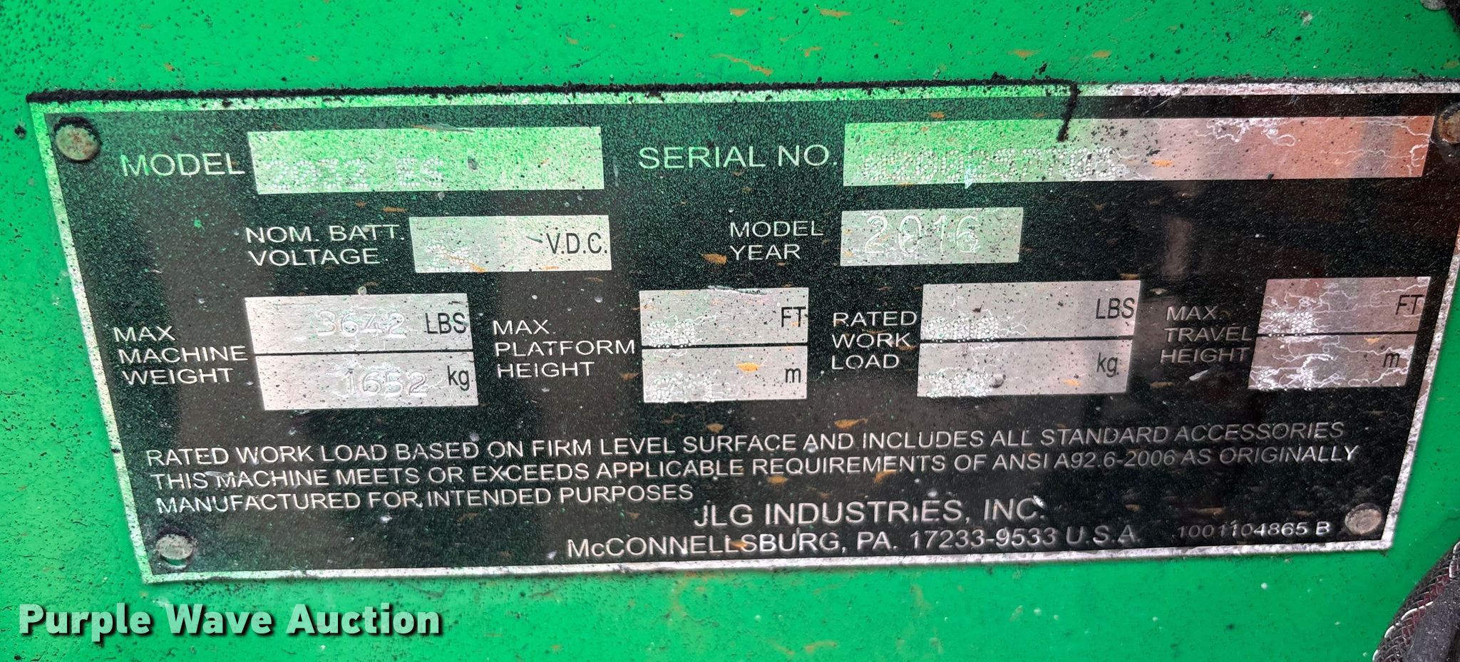 Purple Wave is selling a used Scissor or Vertical Lift in Florida. This item is a 2016 JLG 2032ES scissor lift with the following: Hours: 95 on meter, Serial: 0200257703