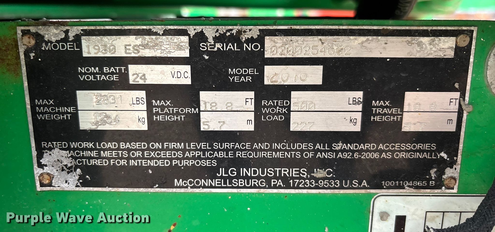 Purple Wave is selling a used Scissor or Vertical Lift in Florida. This item is a 2016 JLG 1930ES scissor lift with the following: Hours: 279 on meter, Serial: 0200254662