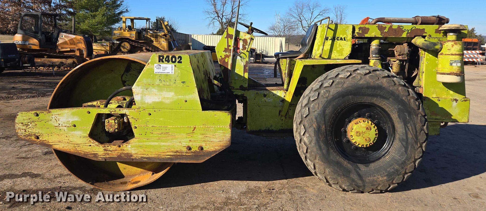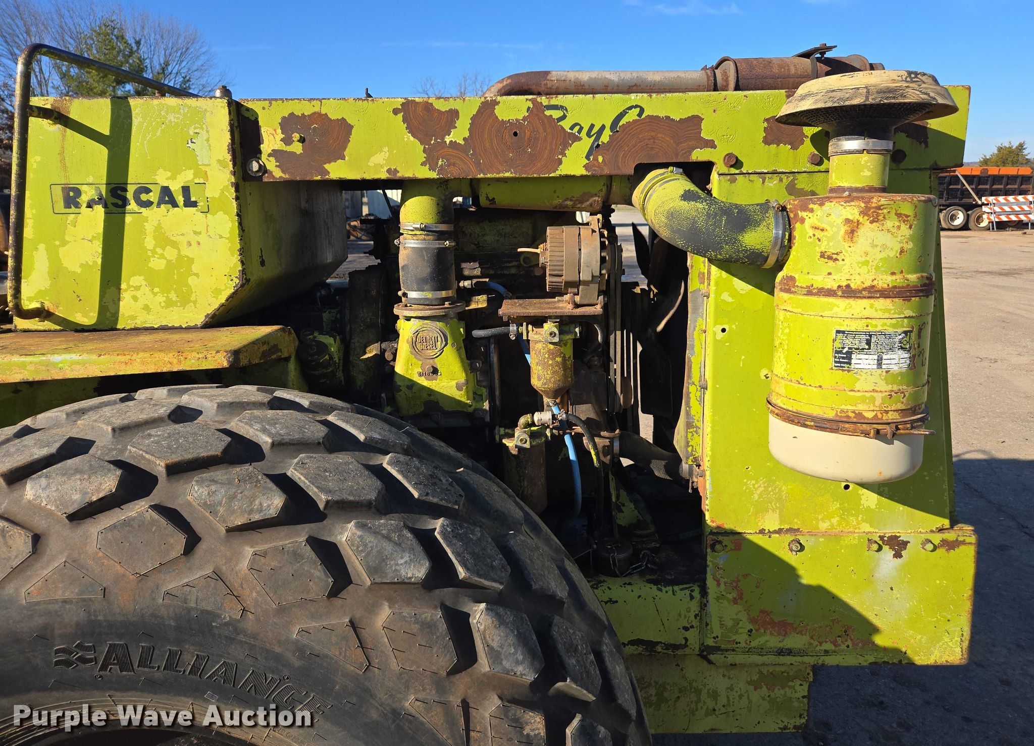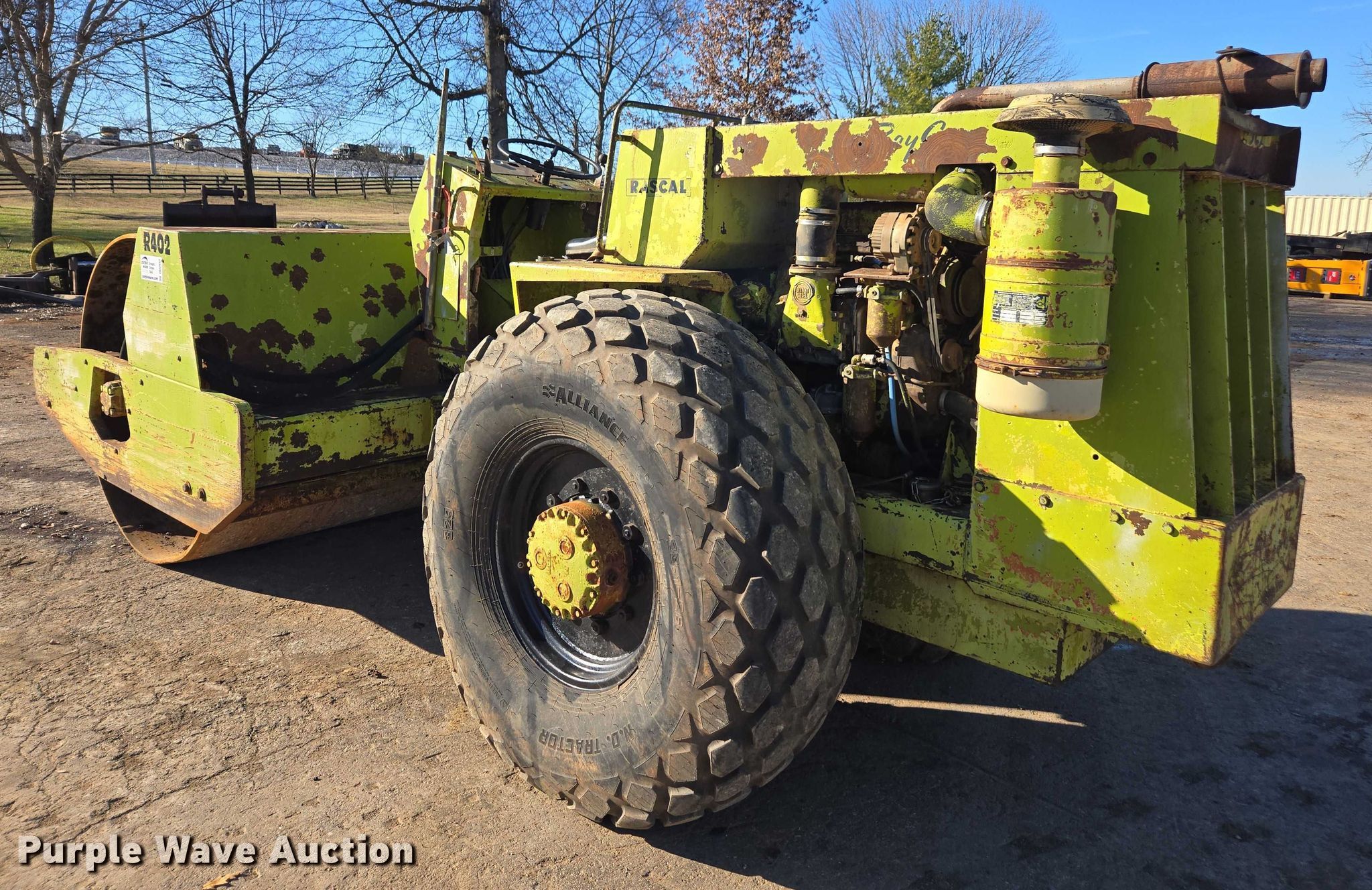 RayGo Rascal single drum vibratory roller. Hours: 909 on meter, Serial: 01L1673. Engine Detroit Diesel, Cylinders: 3, Fuel type: Diesel. Transmission Hydrostatic. Features Drum Drum type: Smooth, Vibratory system: Single, Width: 84", Diameter: 57", Drum scrapers. Tires Size: 23.1-26. Notes Vibratory shift cable linkage issues, loose. Scott & Ritter Inc. Bowling Green, KY 42101