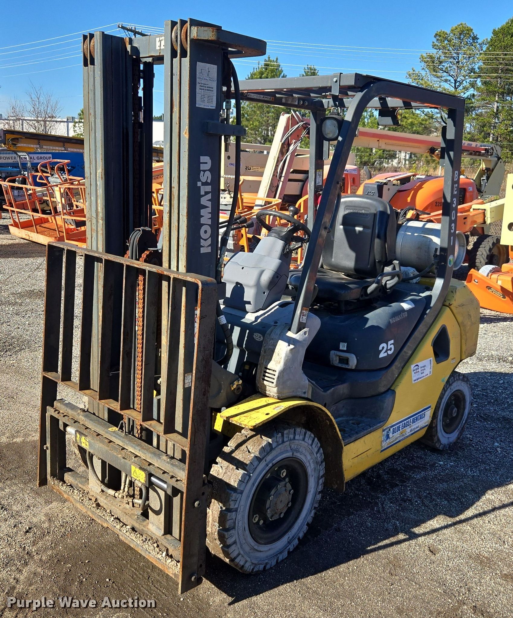 Purple Wave is selling a used Cushion Tire or Pneumatic Forklift in South Carolina. This item is a 2017 Komatsu FG25T-16 forklift with the following: Hours: 1,197 on meter, Serial: A413031, Unit #: BE3031