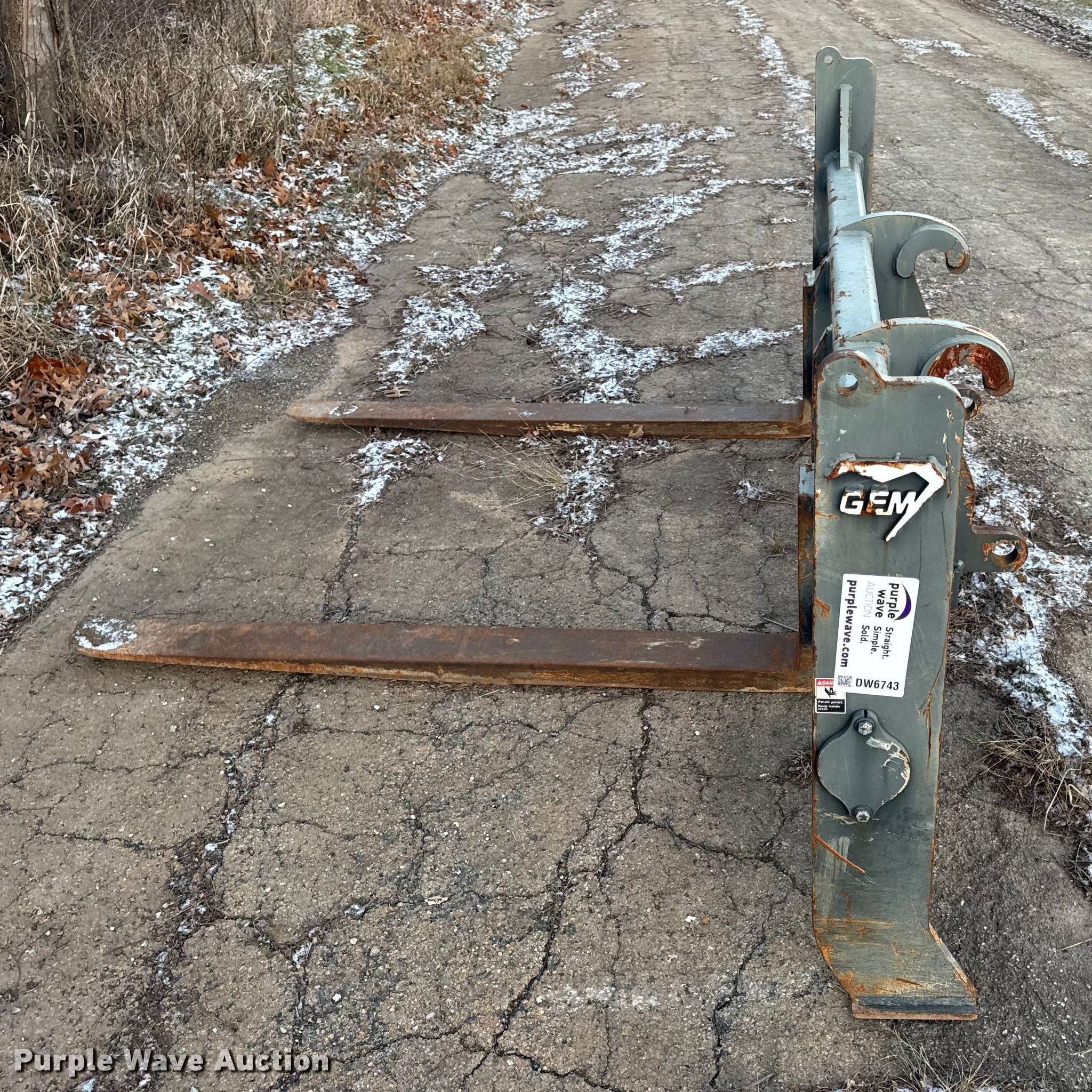 Purple Wave is selling a used Wheel Loader Attach. in Missouri. This item is a 72" GEM wheel loader forks with the following: Serial: 12919