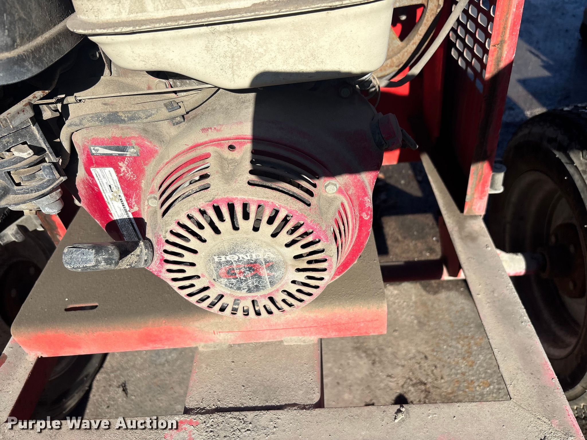 MQ Whiteman WM190PH8 concrete mixer. Serial: H1759455. Dimensions Overall Length: 95", Width: 55", Height: 6'. Engine Honda GX240, Displacement: 270 cc, Cylinders: 1, Fuel type: Gas. Tires Size: ST175/80D13. WG. Santa Ana, CA 92701