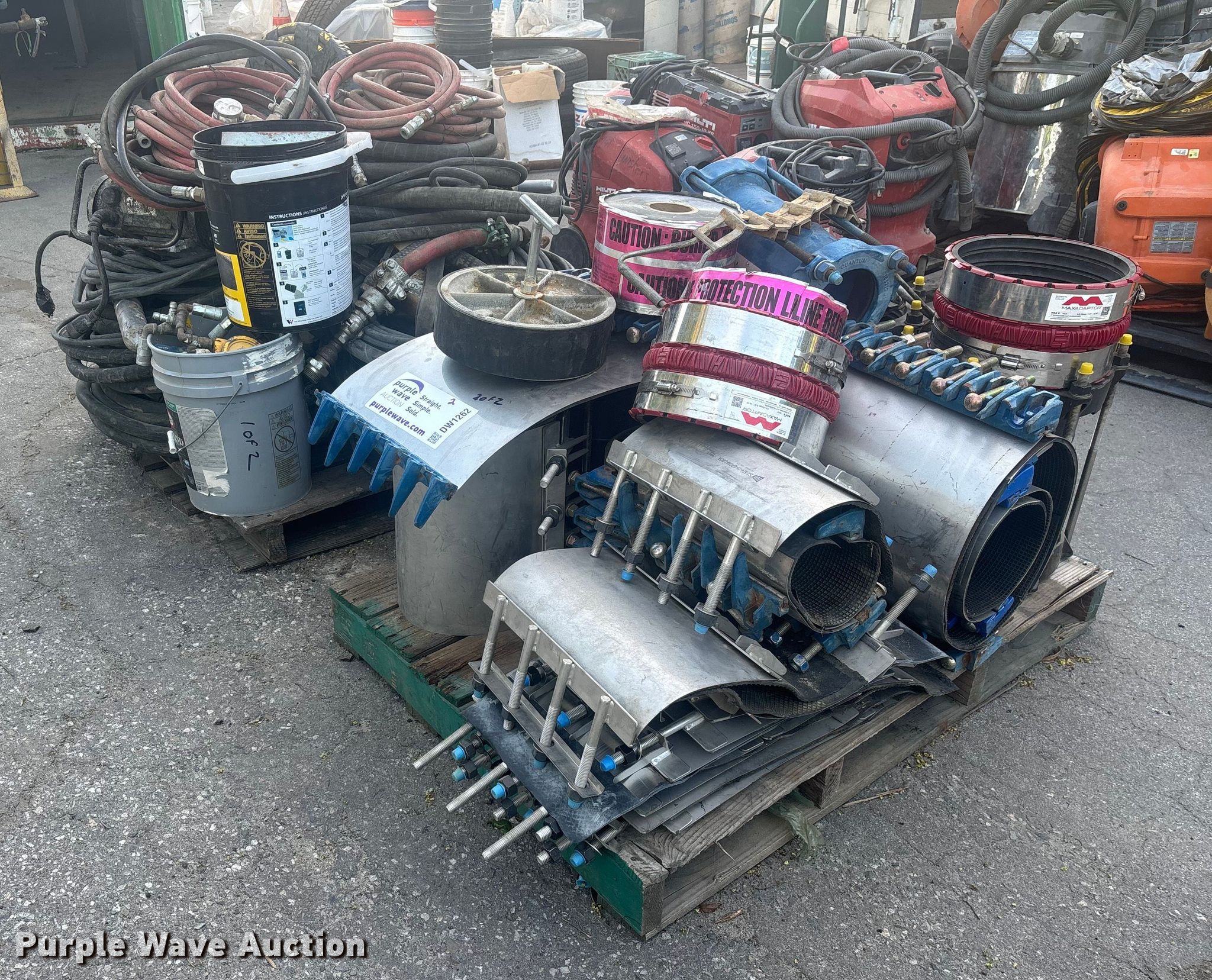 Purple Wave is selling a used Concrete Equip. or Acces. in California. This item is a Concrete equipment with the following: Concrete trowel, Hoses and more