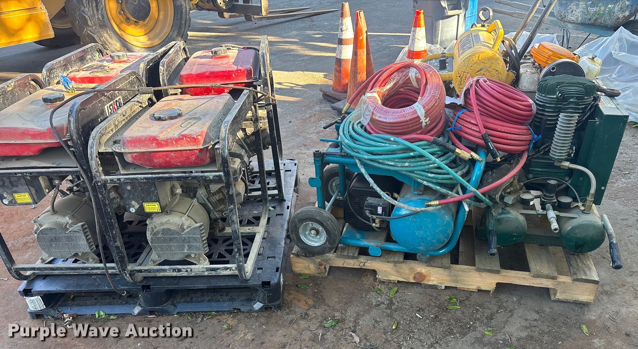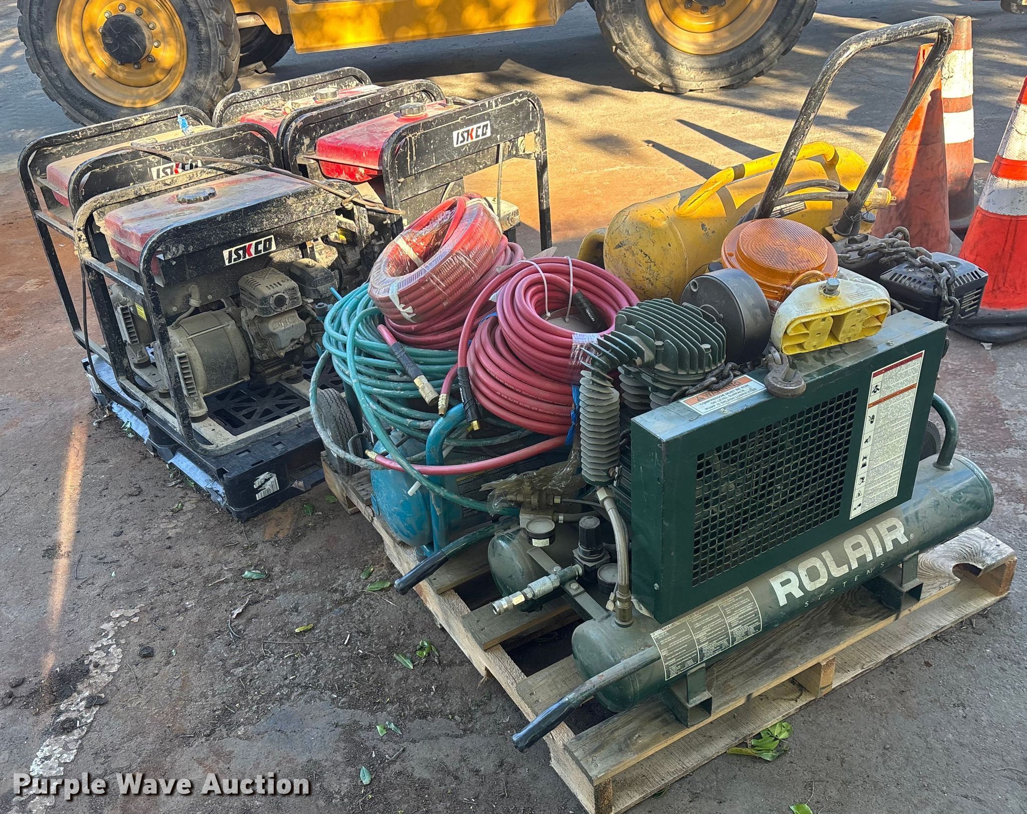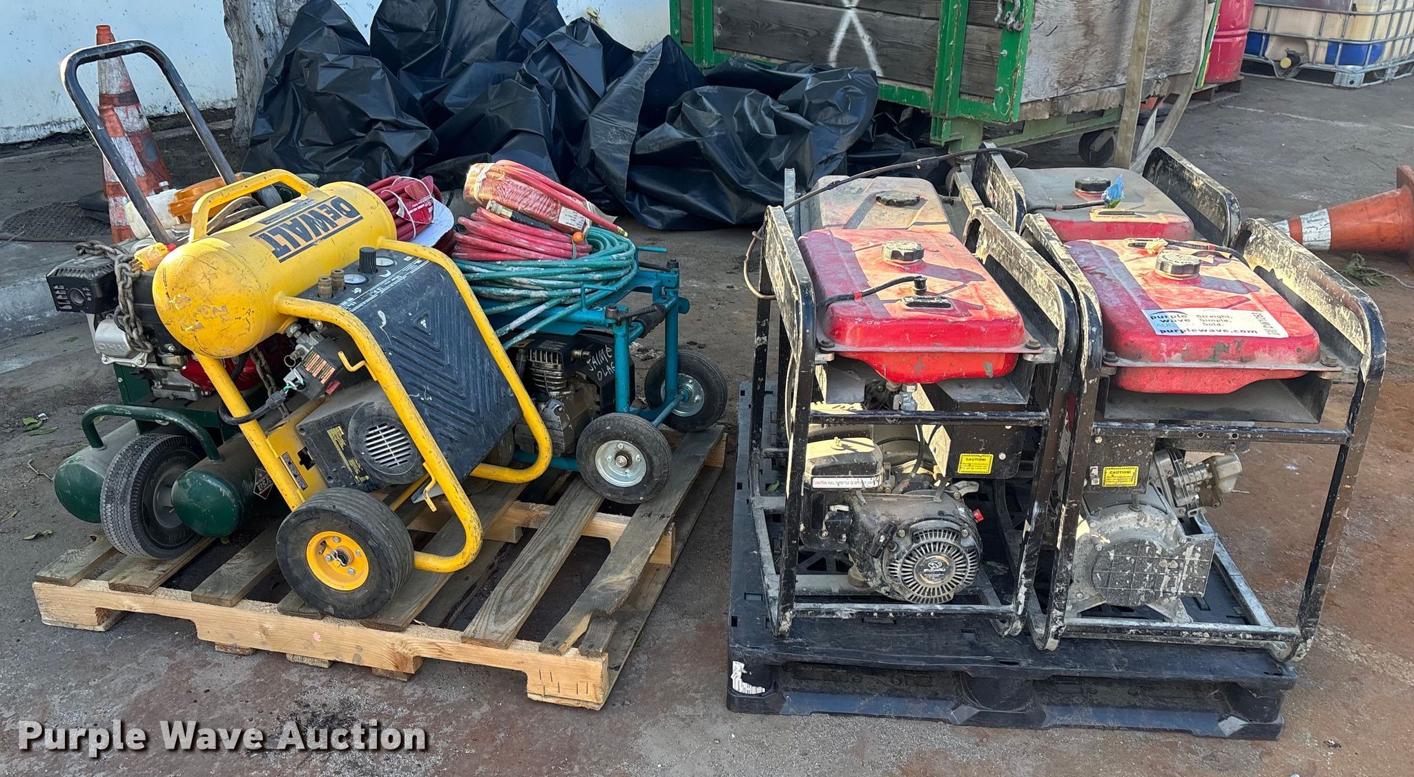 Purple Wave is selling a used Tools in California. This item is a Tools with the following: (4) ISKCO generators, Concrete vibrator, Air compressor and more