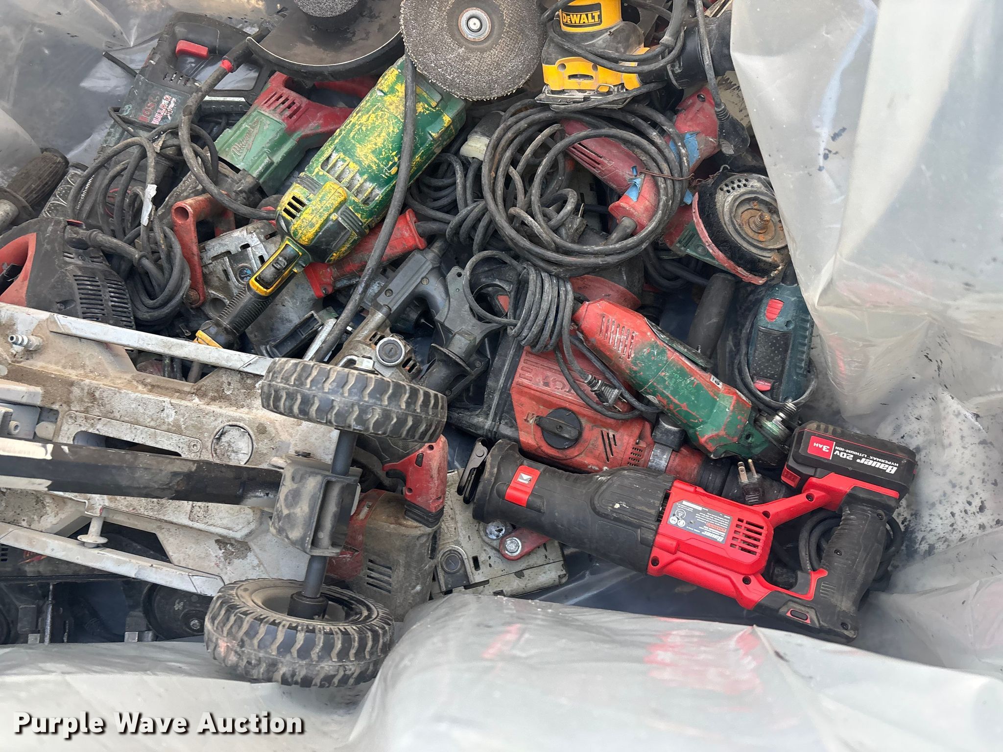 Purple Wave is selling a used Tools in California. This item is a Tools with the following: Electric hammers, Grinders, Drills and more