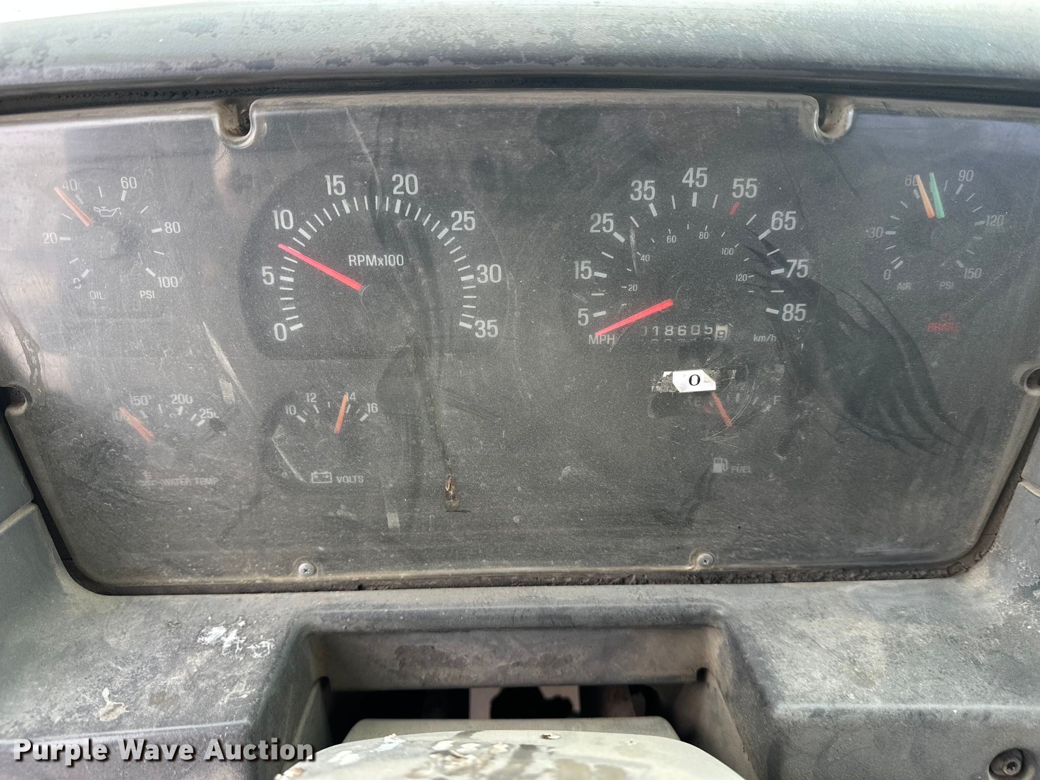 1998 Ford LT9501 ready mix truck. Miles: 18,606 on odometer, VIN: 1FDZW96P0WVA38043. Engine Cummins M11, Displacement: 10.8L, Cylinders: 6, Fuel type: Diesel, HP: 280. Transmission Eaton Fuller 9LL, Manual, Speed: 11. Chassis Axles: Tandem, Differential lock: Inter-axle, Suspension: Spring over walking beam, Brakes: Air, PTO, GVWR: 62,000 lbs FAWR: 20,000 lbs, RAWR: 22,000 lbs. Interior AC, Heat, Cruise control. Features Mixer Mcnelius, Capacity: 11 cu.yd., Rear drum controls, Water tank capacity: 110 gallons, Chute Extensions: 1.. Tires Front: 425/65R22.5, Rear: 11R22.5. Notes Windshield chipped or cracked. Minnesota title. Title distribution may be delayed up to 14 days from verification of funds. Worms Ready Mix. New Munich, MN 56356