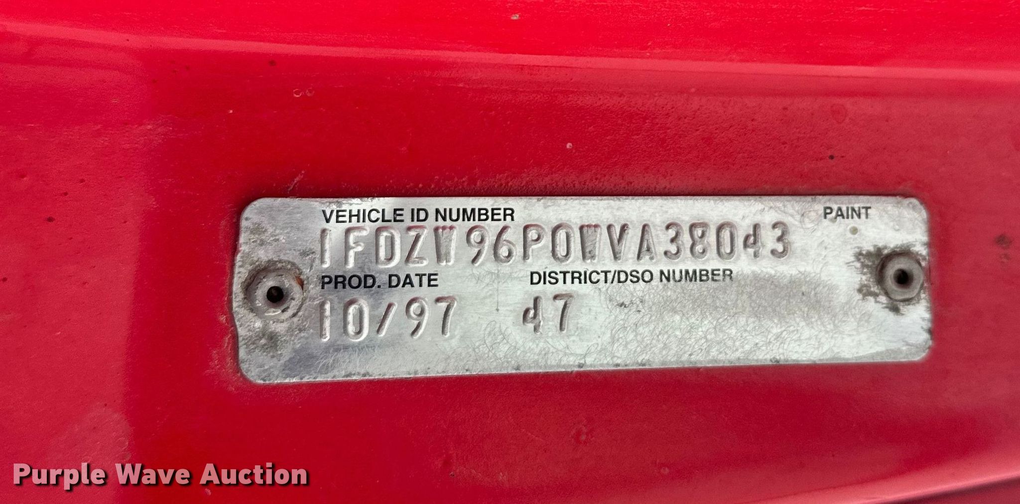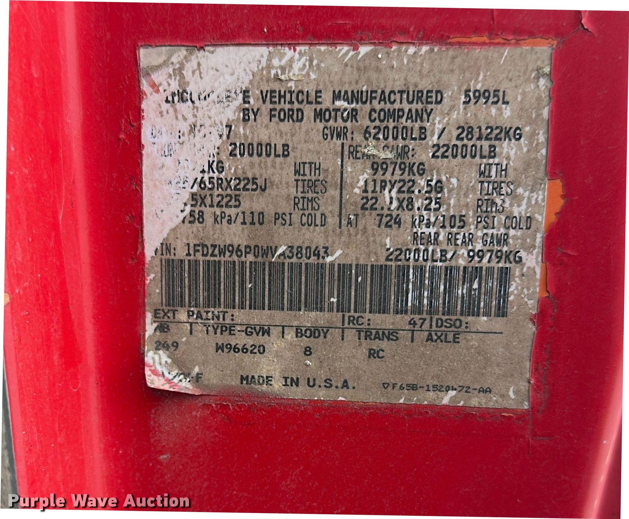 Purple Wave is selling a used Ready Mix or Pump Truck in Minnesota. This item is a 1998 Ford LT9501 ready mix truck with the following: Miles: 18,606 on odometer, VIN: 1FDZW96P0WVA38043