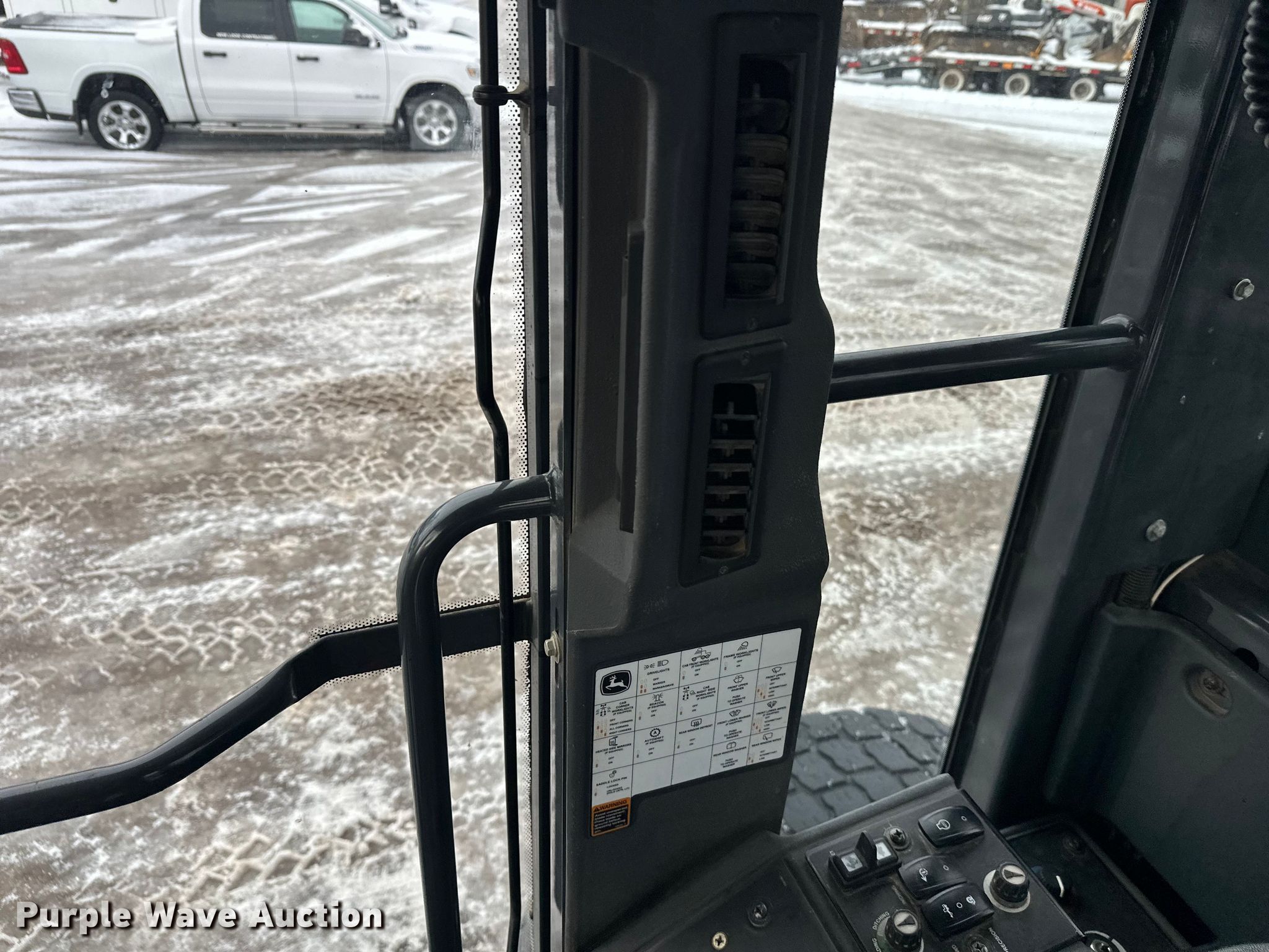 2008 John Deere 772D motor grader. Hours: 9,905 on meter, Serial: DW772DX619634. Engine John Deere 6081HDW13, Serial: RG6081H301911, Cylinders: 6, Fuel type: Diesel. Transmission Powershift, 8F - 8R. Chassis All wheel drive. Operators station Enclosed cab, AC, Heat, Hydraulic control valves: 11. Features Moldboard: Tip control, Side shift, Moldboard total width: 14', Front-mounted push block. Tires Size: 17.5R25. New Look Contracting. Rogers, MN 55374