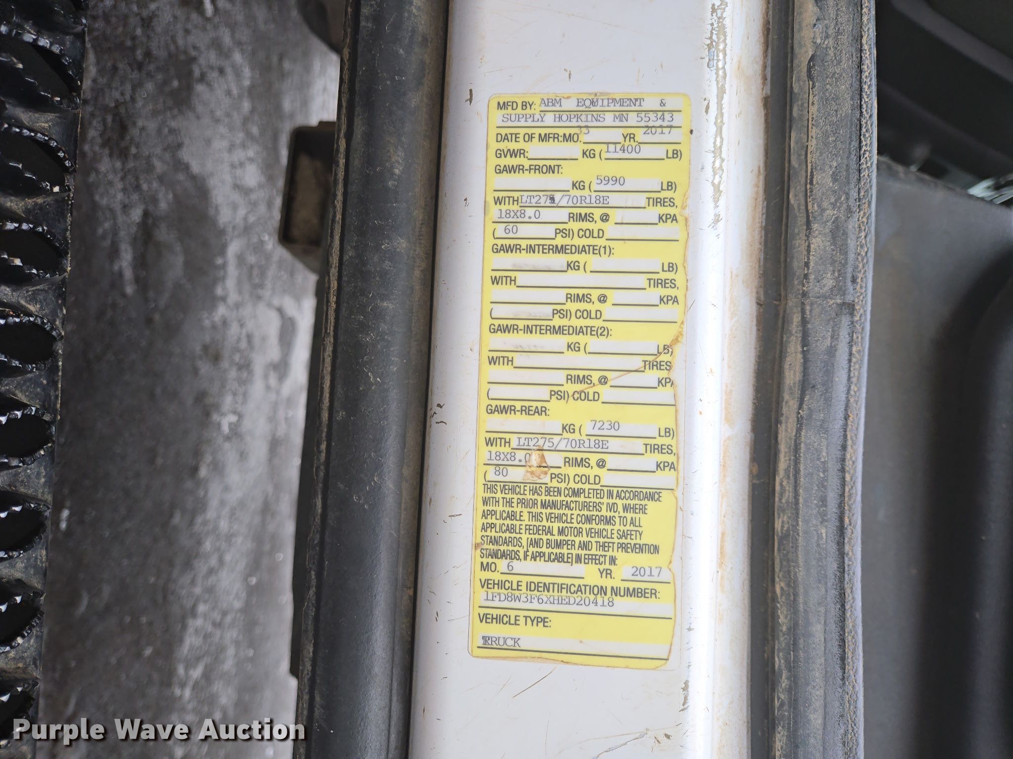 - VIN: 1FD8W3F6XHED20418