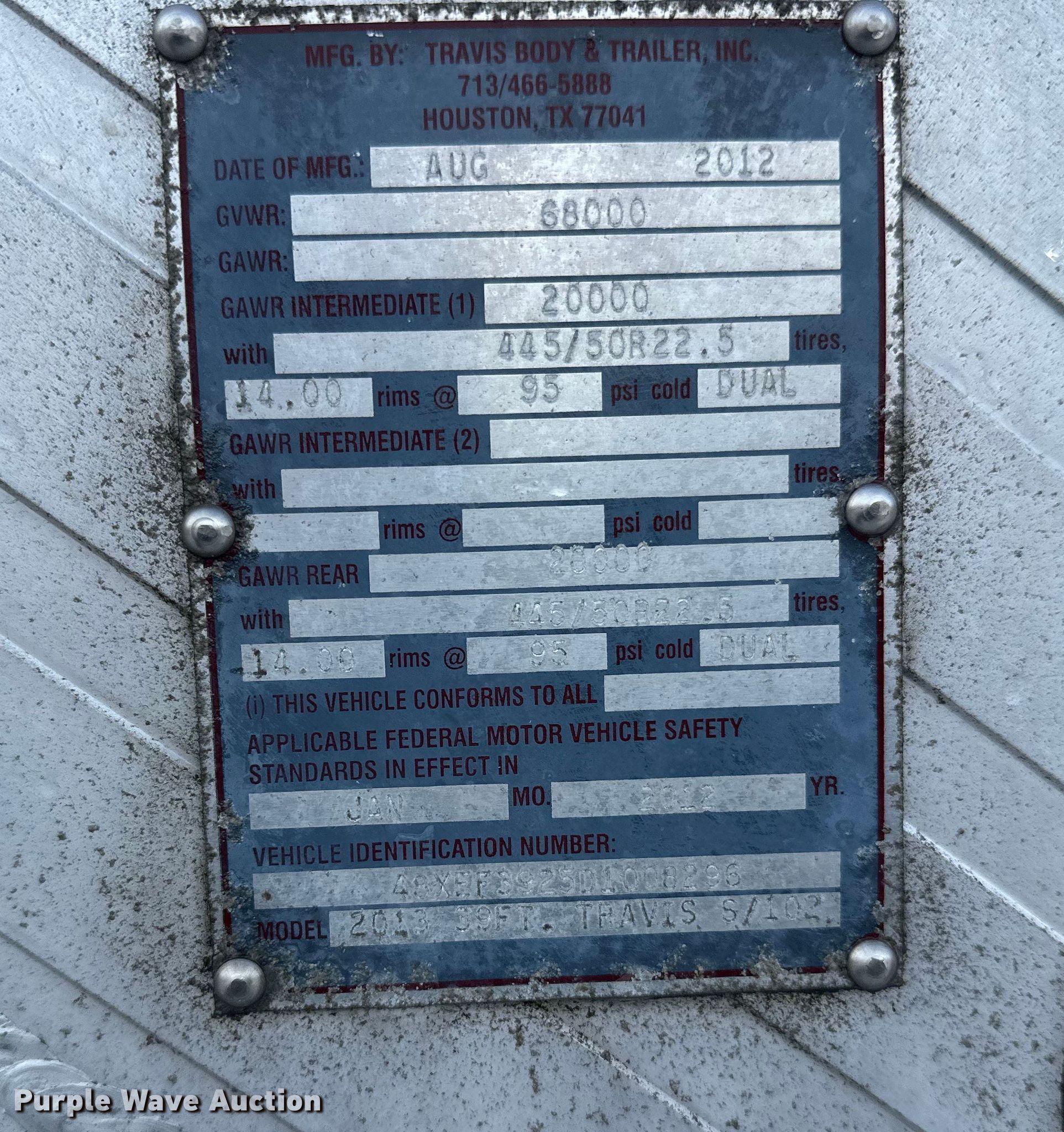 Purple Wave is selling a used Bottom Dump Trailer in Minnesota. This item is a 2013 Travis Body & Trailer, Inc. S/102 bottom dump trailer with the following: VIN: 48XEF3925D1008296