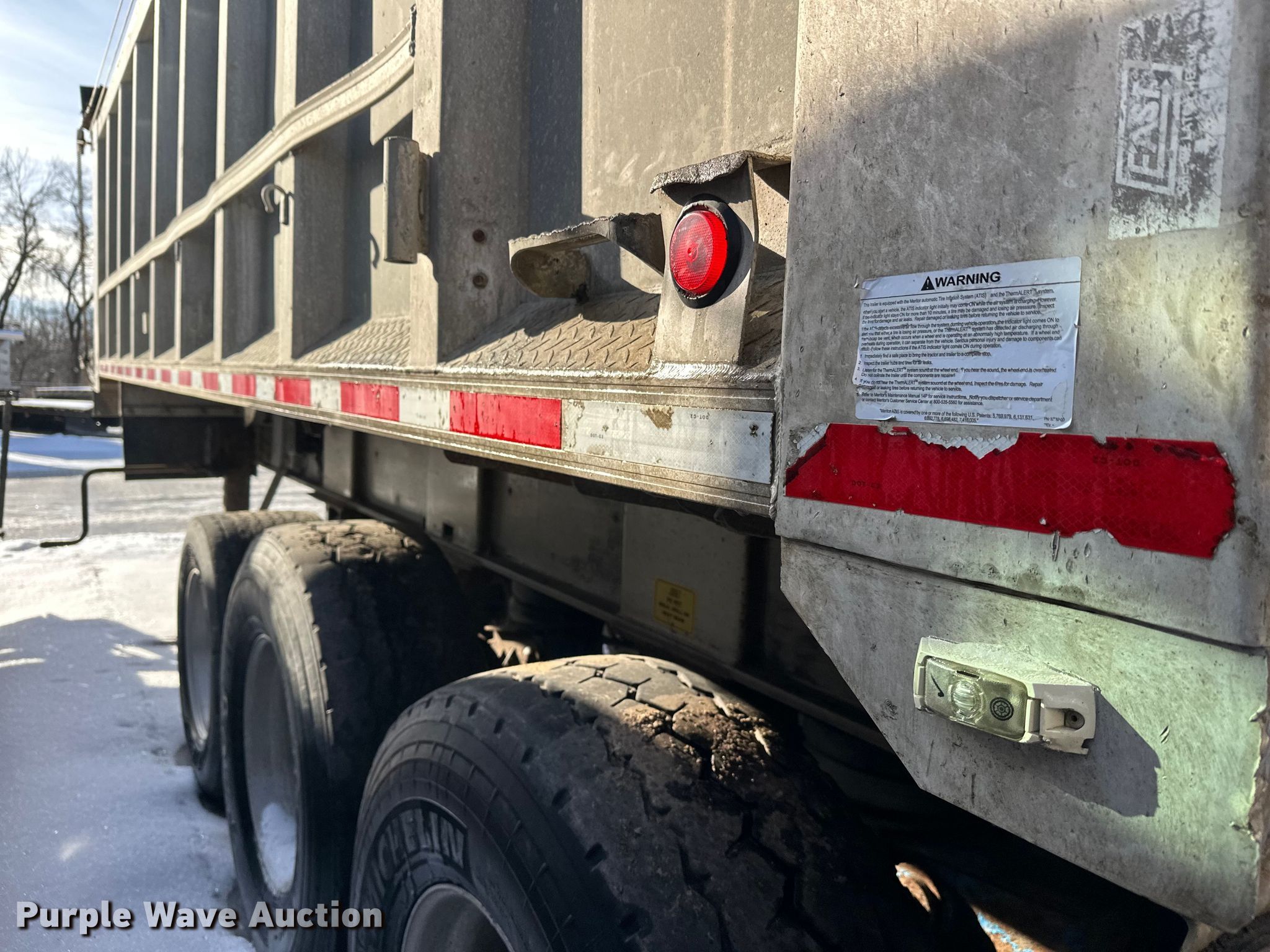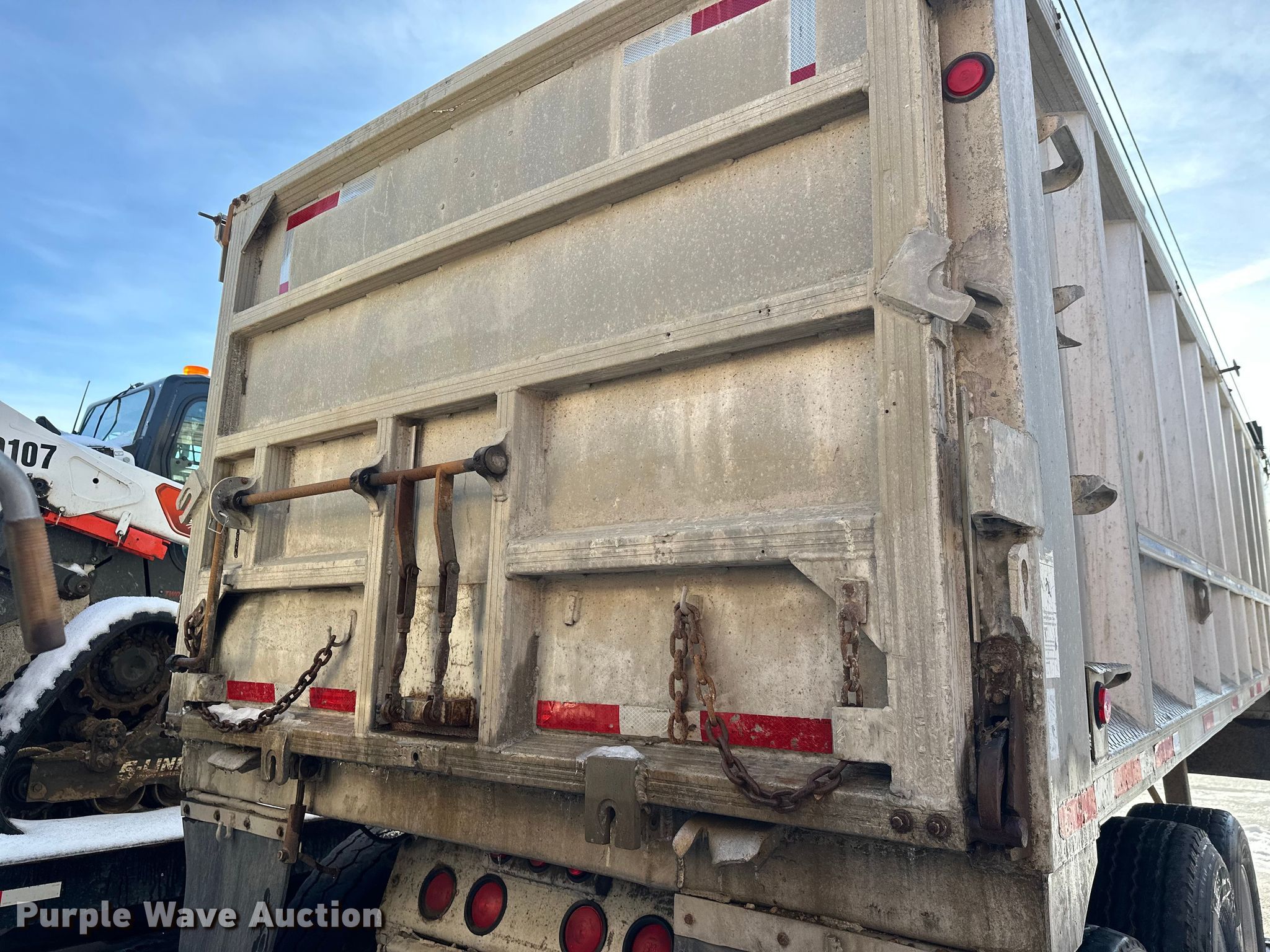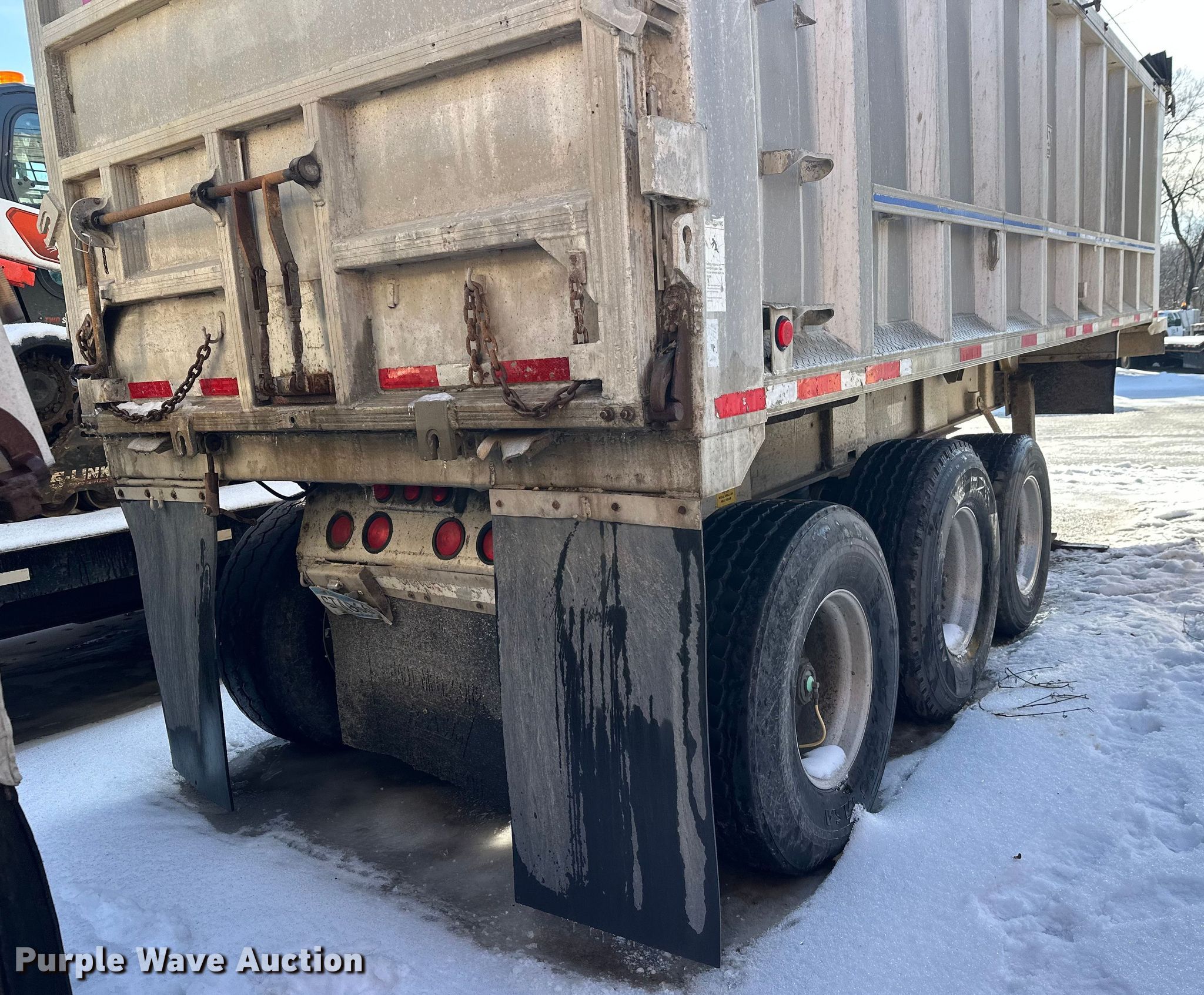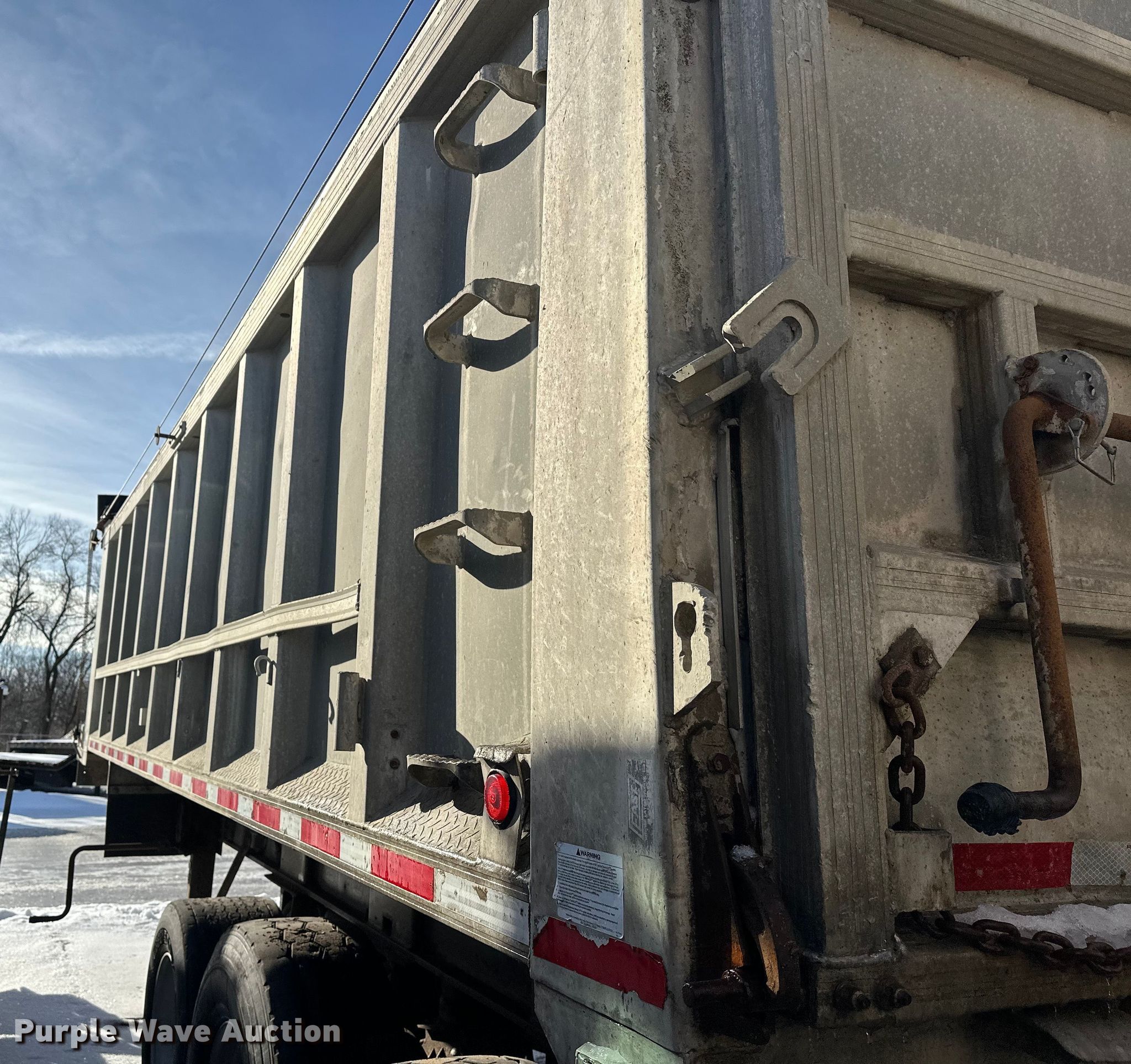 1994 East Manufacturing Corp. end dump trailer. VIN: 1E1D2L488RRB16140. Dimensions Overall Length: 25' 9", Width: 96", Body Length: 25', Width: 96", Side height: 68". Features Body type: Aluminum, Ram: Single, End gate: Air operated Grain door, Roll tarp. Chassis Landing gear: Single, Suspension: Air, Brakes: Air, Axles: Triple. Tires Aluminum wheels, Size: 425/65R22.5, Pusher axle: 445/50R22.5. Minnesota title. Title distribution may be delayed up to 14 days from verification of funds. New Look Contracting. Rogers, MN 55374