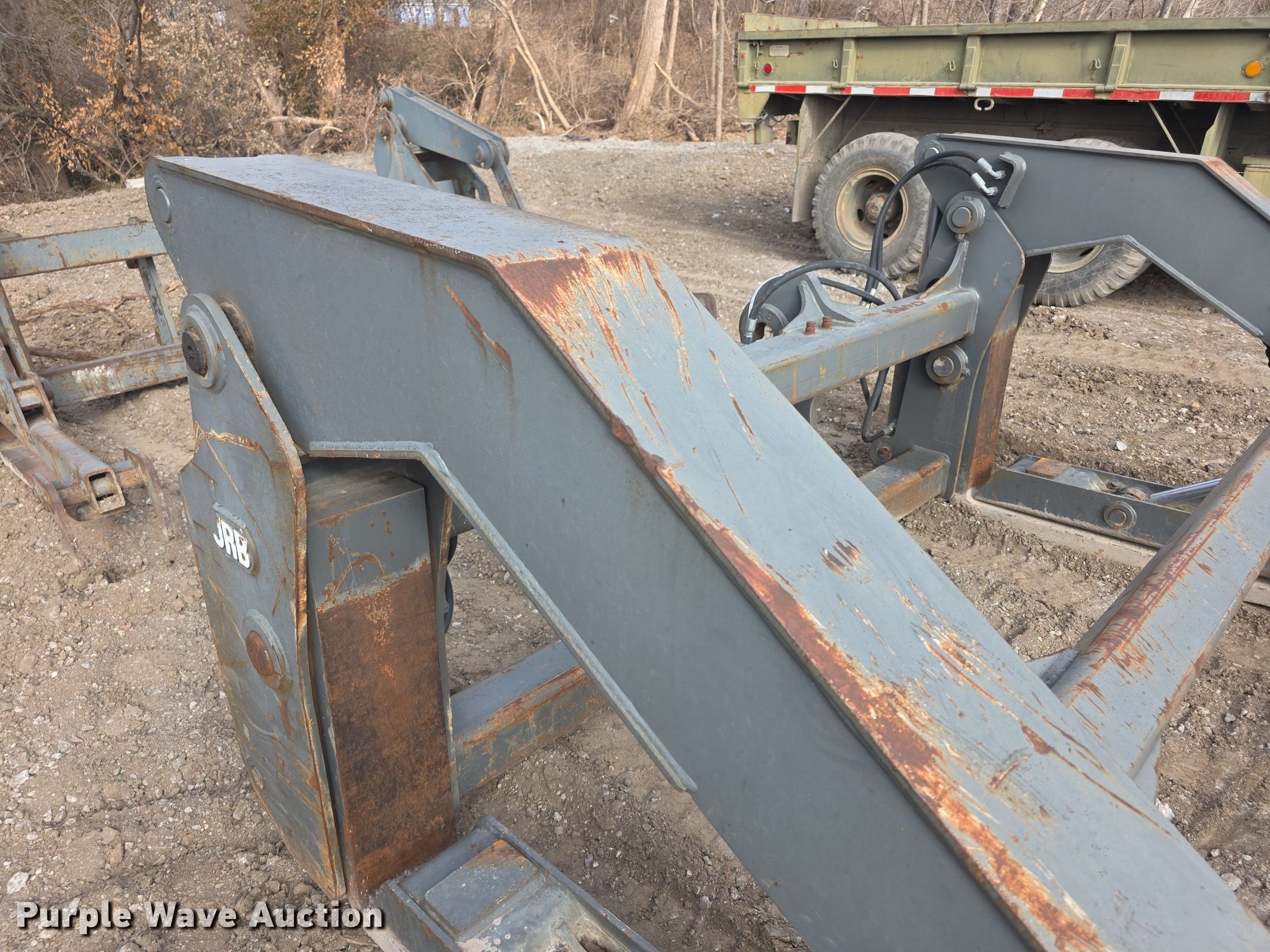 Purple Wave is selling a used Wheel Loader Attach. in Kansas. This item is a JRB WA320PT5 wheel loader pipe forks with the following: Serial: AKR1711, Lengths: 66", Fits a John Deere 624 and Komatsu 180 wheel loaders