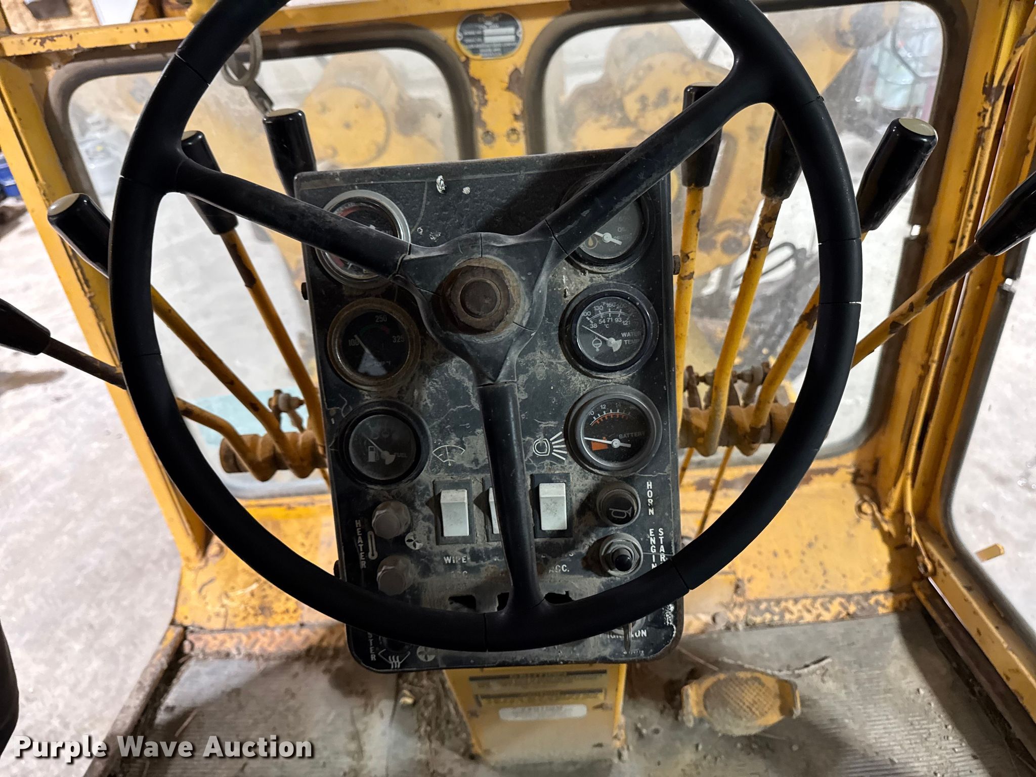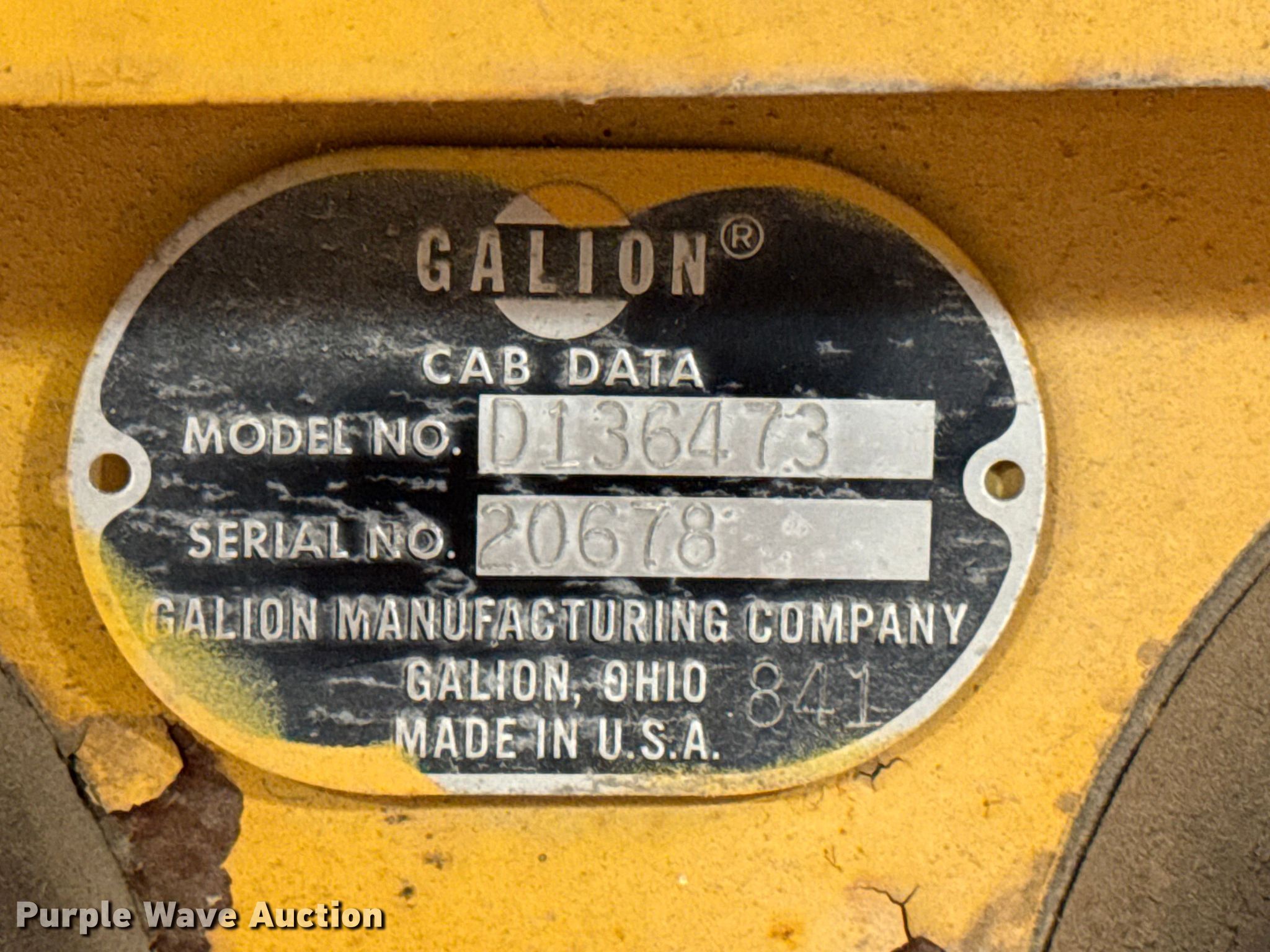 Gallion T500A motor grader. Hours: 1,750 on meter, Serial: D136473. Engine International UDT-466-G-1619, Cylinders: 6, Fuel type: Diesel. Transmission Powershift, 4F - 4R. Operators station Enclosed cab, Heat, Hydraulic control valves: 8. Features Moldboard: Tip control, Side shift, Moldboard total width: 14', Front-mounted lift group. Tires Size: 14.00-24. Notes Transmission issues, does not shift into all gears , Hydraulic leak, Fuel system issues, leaks. Maxim Trucking & Materials. Pella, IA 50219