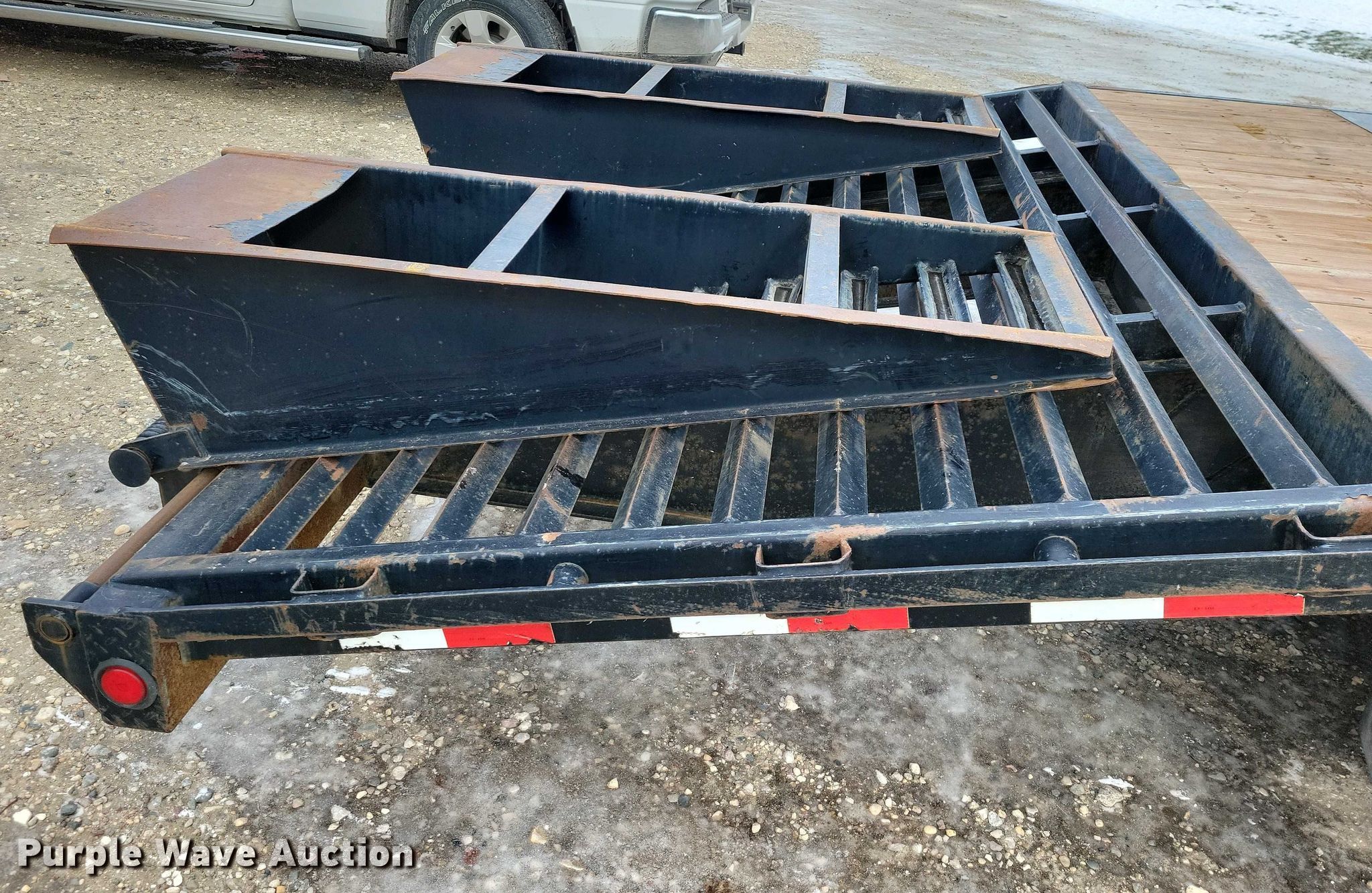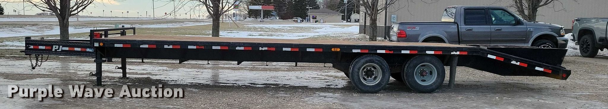 2009 PJ equipment trailer. VIN: 4P5FD302091130777. Dimensions Overall Length: 38', Width: 102", Deck Length: 25', Width: 102", Deck height: 38", Tail length: 6', Ramps: Manual Length: 5'. Features Deck type: Wood. Chassis Hitch: Pintle, Landing gear: Dual, Suspension: Spring, Brakes: Electric, Axles: Tandem, GVWR: 24,000 lbs, GAWR: 12,000 lbs. Tires Steel wheels, Size: ST235/80R16. Iowa title. Title distribution may be delayed up to 30 days from verification of funds. Rabel Construction. Spencer, IA 51301