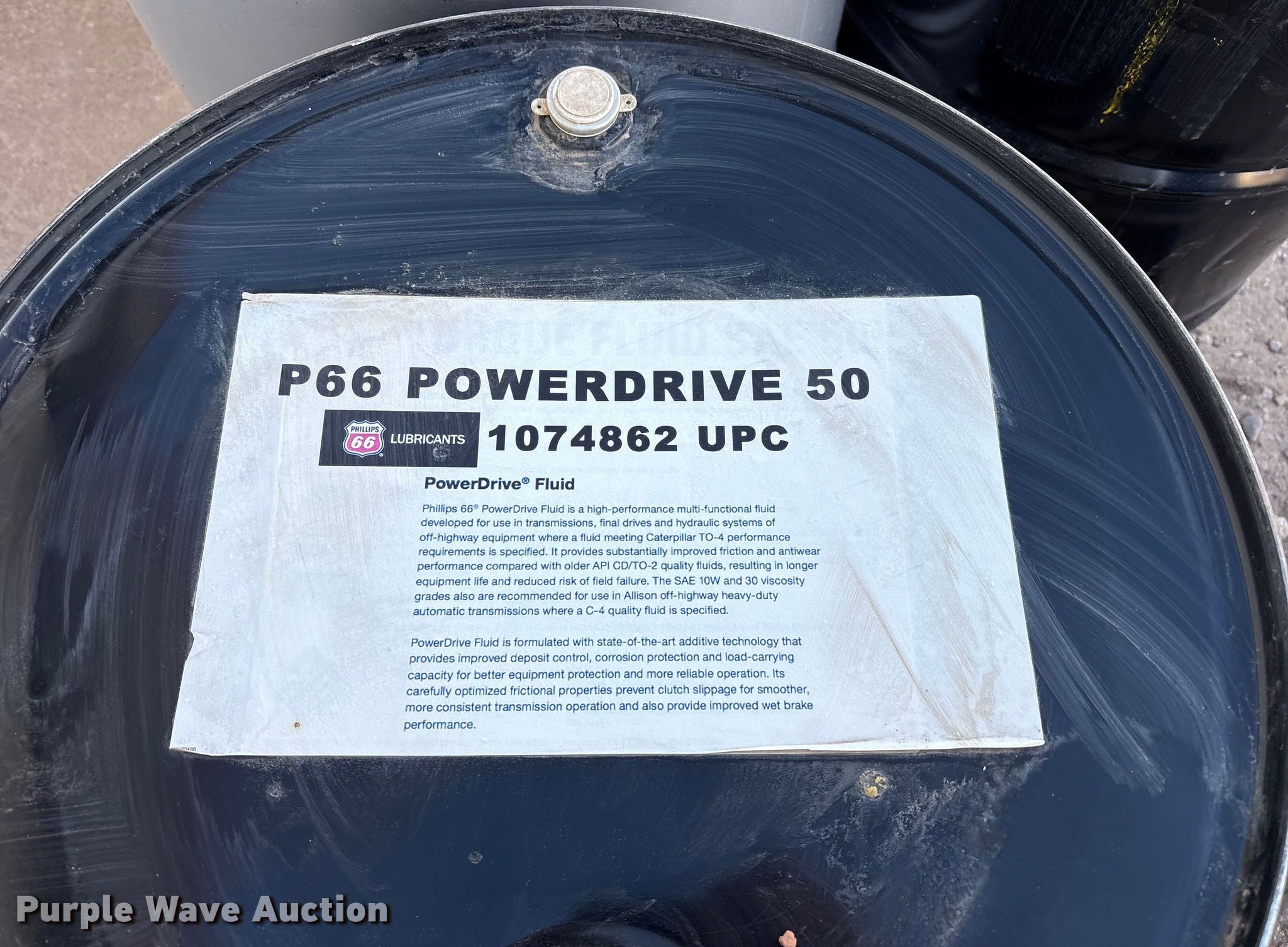 (3) barrels of oil. Phillips 66 extra heavy gear oil 150, (2) barrels of Phillips 66 power drive 50, Unused. Hargrave Manufacturing. Slaton, TX 79364
