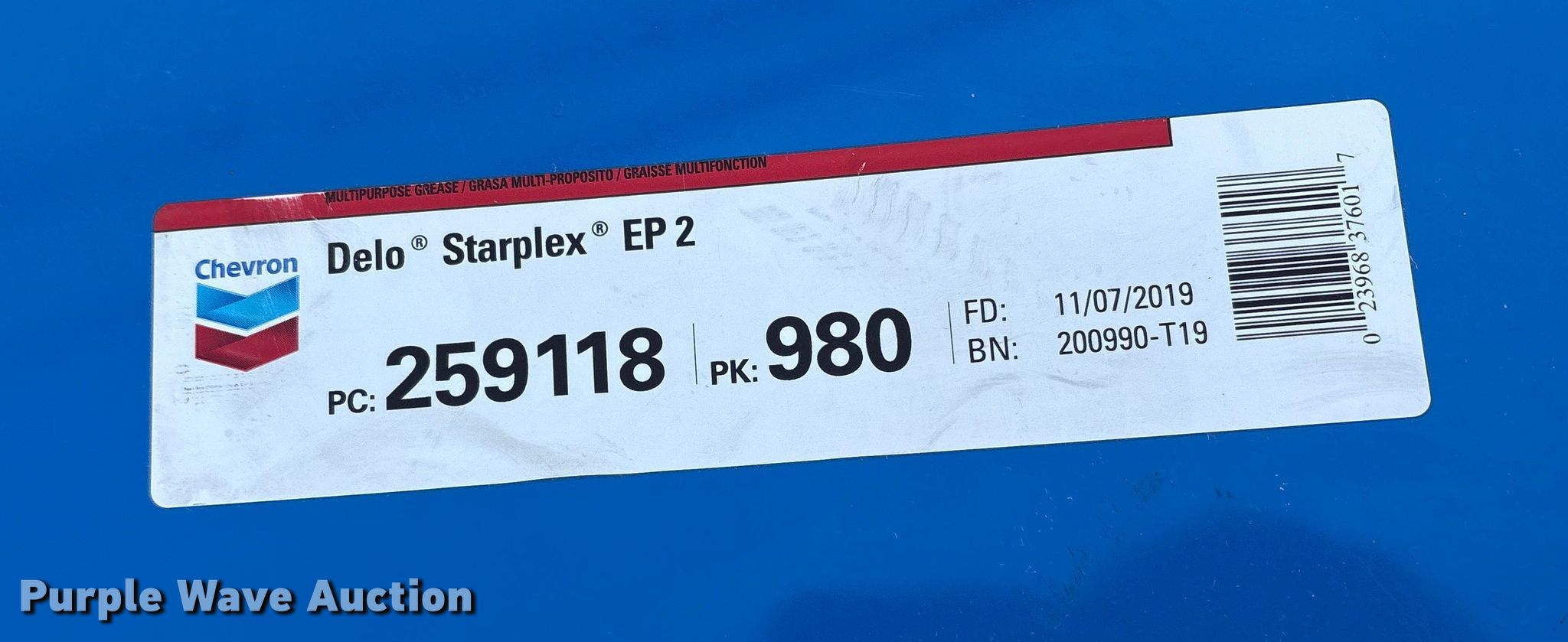 Purple Wave is selling a used Tools in Texas. This item is a (4) barrels of grease with the following: Chevron Delo starplex EP2 grease, All fleet premium HI-Temp grease, (2) Chevron Blackpearl EP NLGI2 grease, Unused