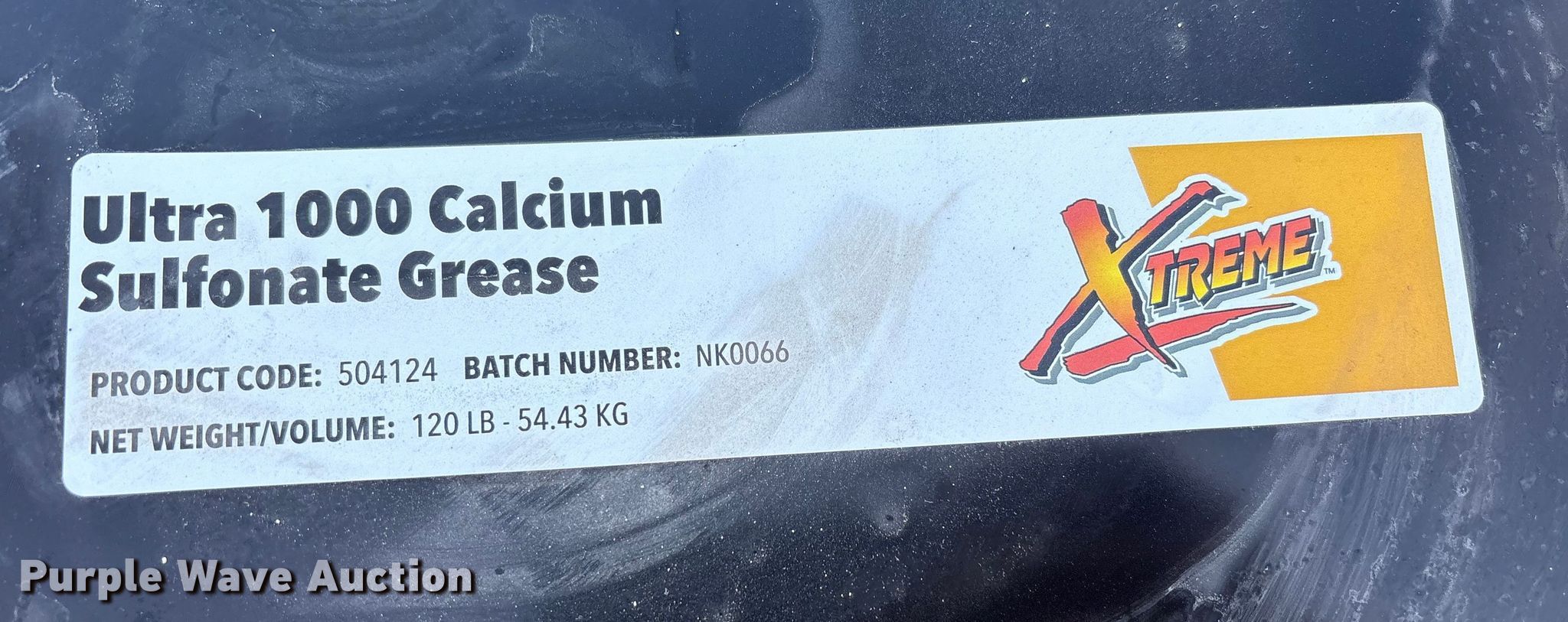 (9) barrels of grease. (7) Extreme ultra 1000 calcium sulfonate grease, (2) Syngard calcium sulfonate EP2 grease, Unused. Hargrave Manufacturing. Slaton, TX 79364