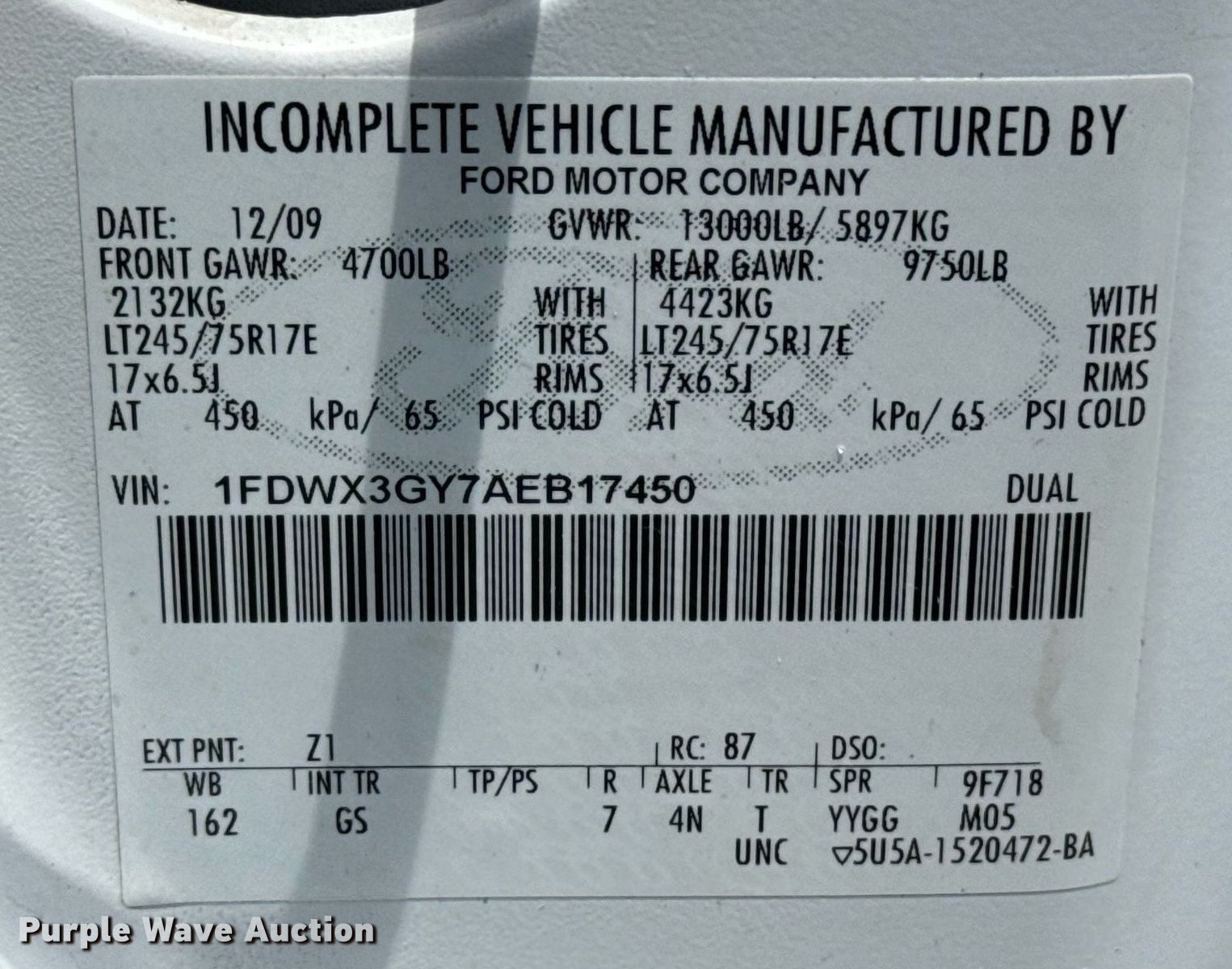- VIN: 1FDWX3GY7AEB17450