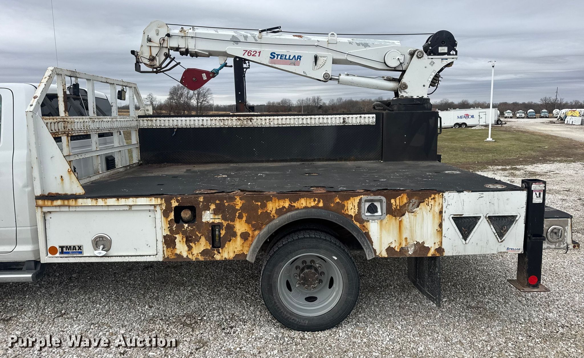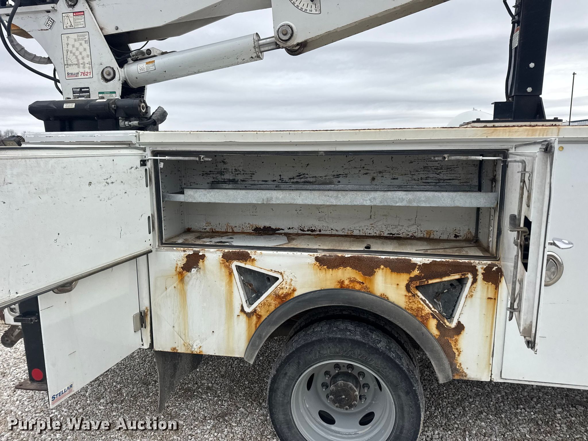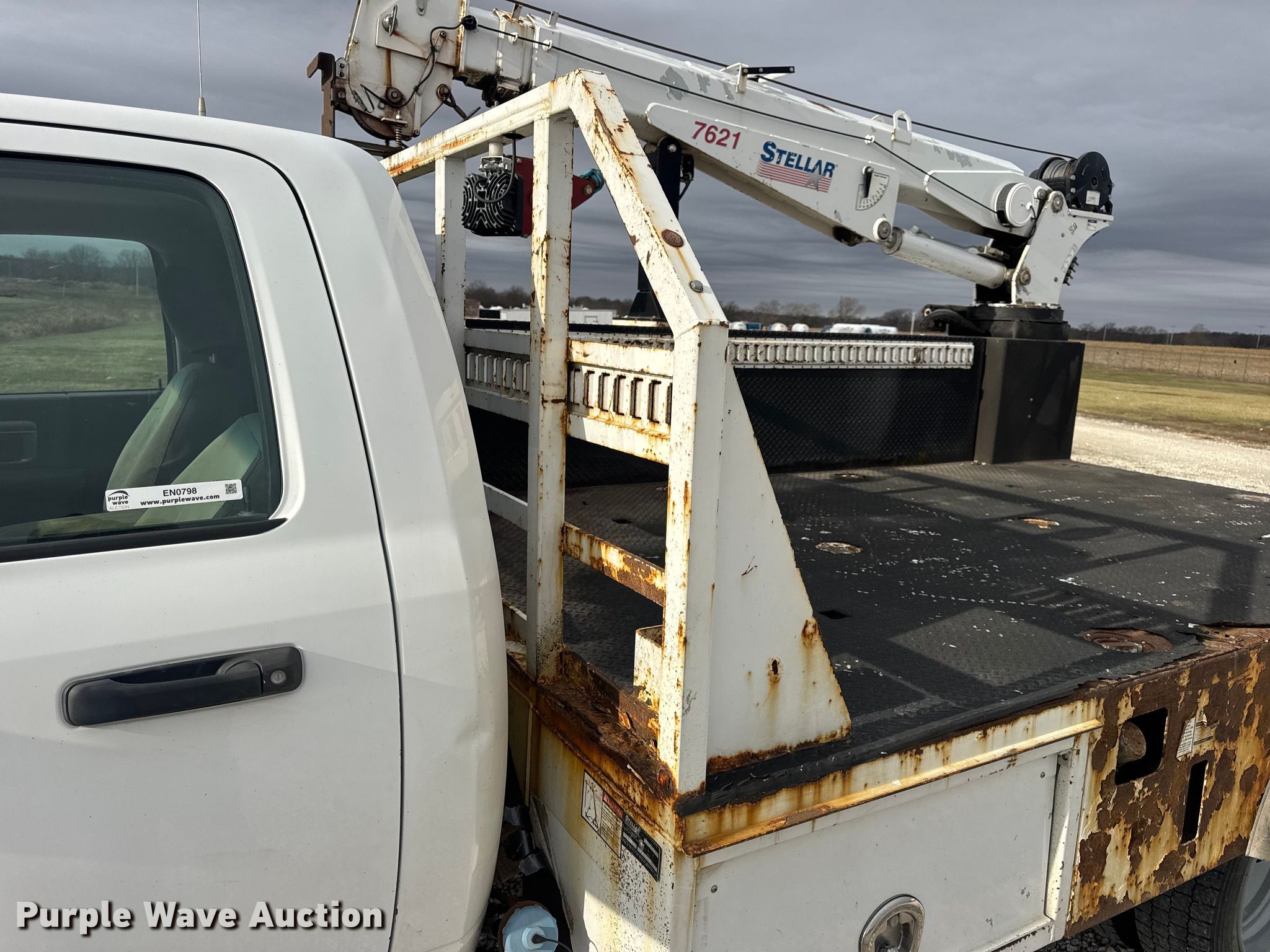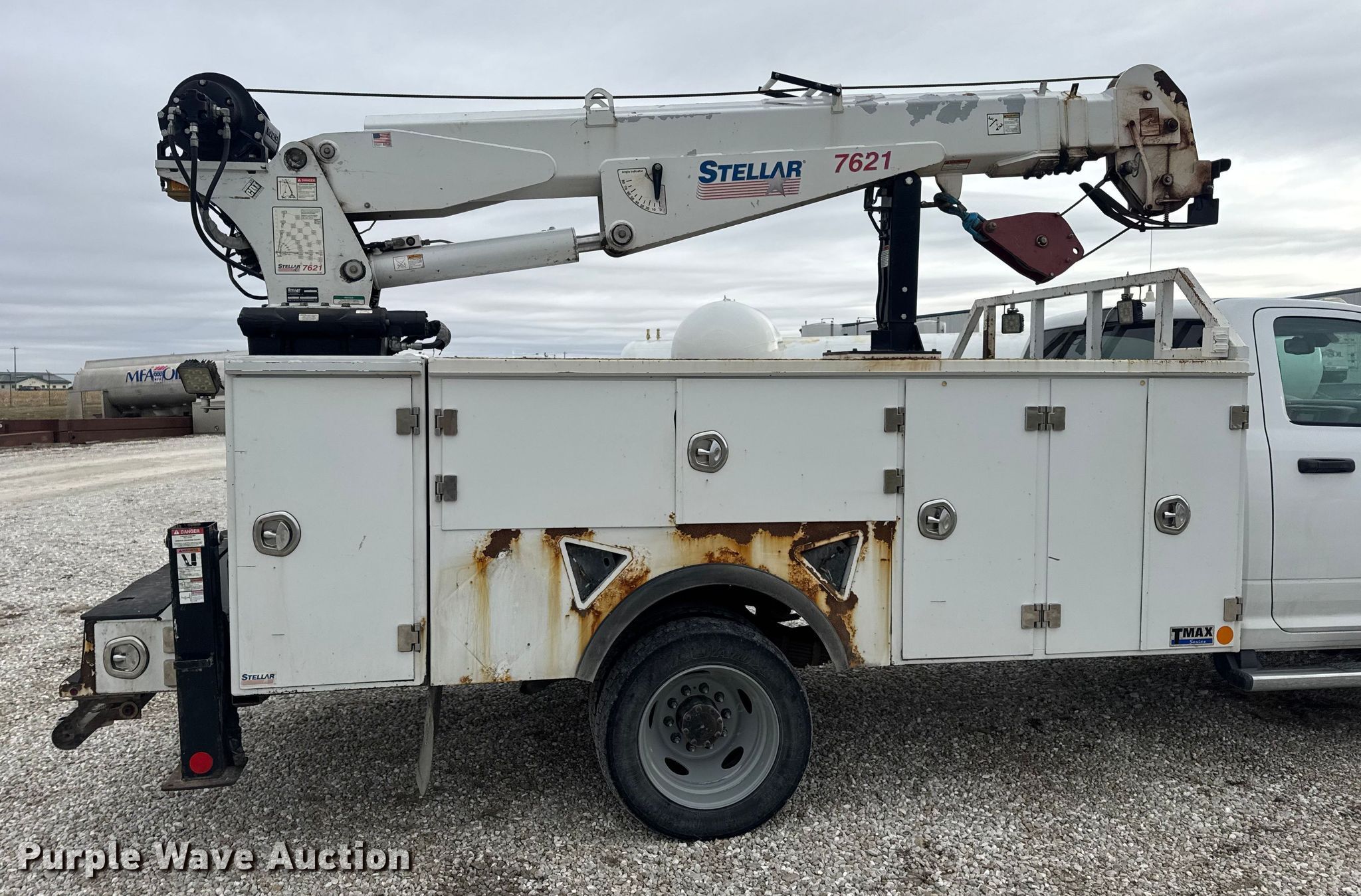 2015 RAM 5500 utility / service truck. Miles: 291,685 on odometer, VIN: 3C7WRNBL1FG553896. Engine Displacement: 6.7L, Cylinders: 6, Fuel type: Diesel. Transmission Automatic. Chassis Four wheel drive, Axles: Single, Suspension: Spring, Brakes: Hydraulic, PTO, GVWR: 19,500 lbs. Interior AC, Heat, Heated mirrors, Power windows, Power locks, Cruise control, Auxiliary controls, Brake controller. Features Bed Stellar TMAX1-LP, Serial: 39992, Length: 12' 1", Width: 96", Crane Stellar 7621, Maximum boom length: 21' Maximum lift capacity: 7,500 lbs.. Tires Size: 225/70R19.5. Notes Dash warning indicator: Check engine, Electronic throttle control warning, DEF warning. Missouri title. Title distribution may be delayed up to 30 days from verification of funds. MFA Oil. Moberly, MO 65270