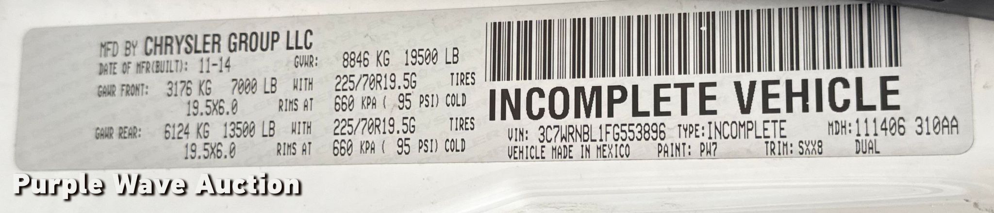 - VIN: 3C7WRNBL1FG553896