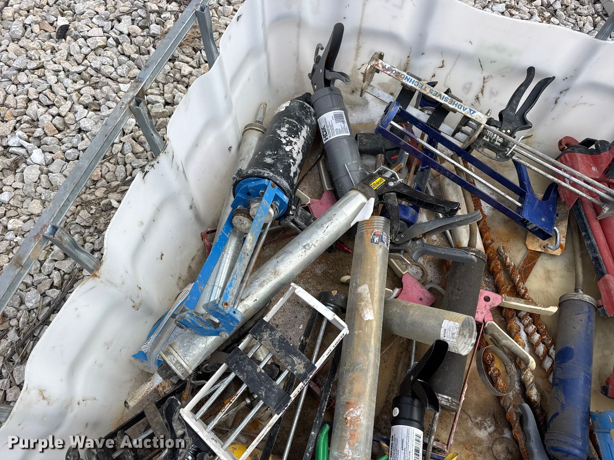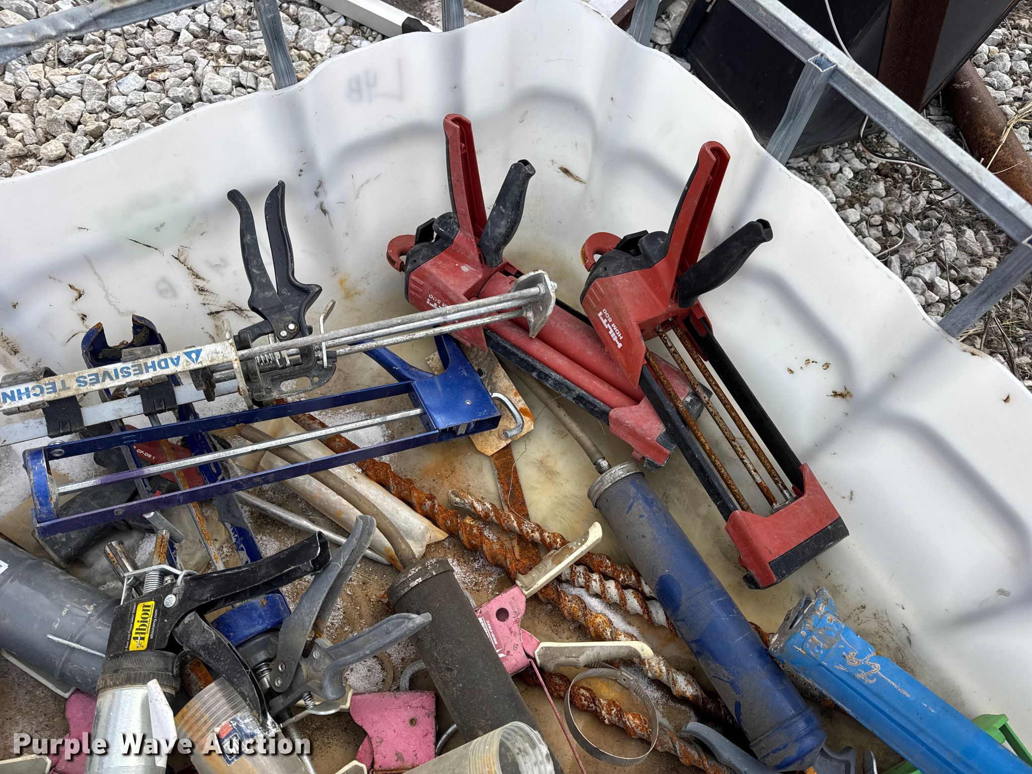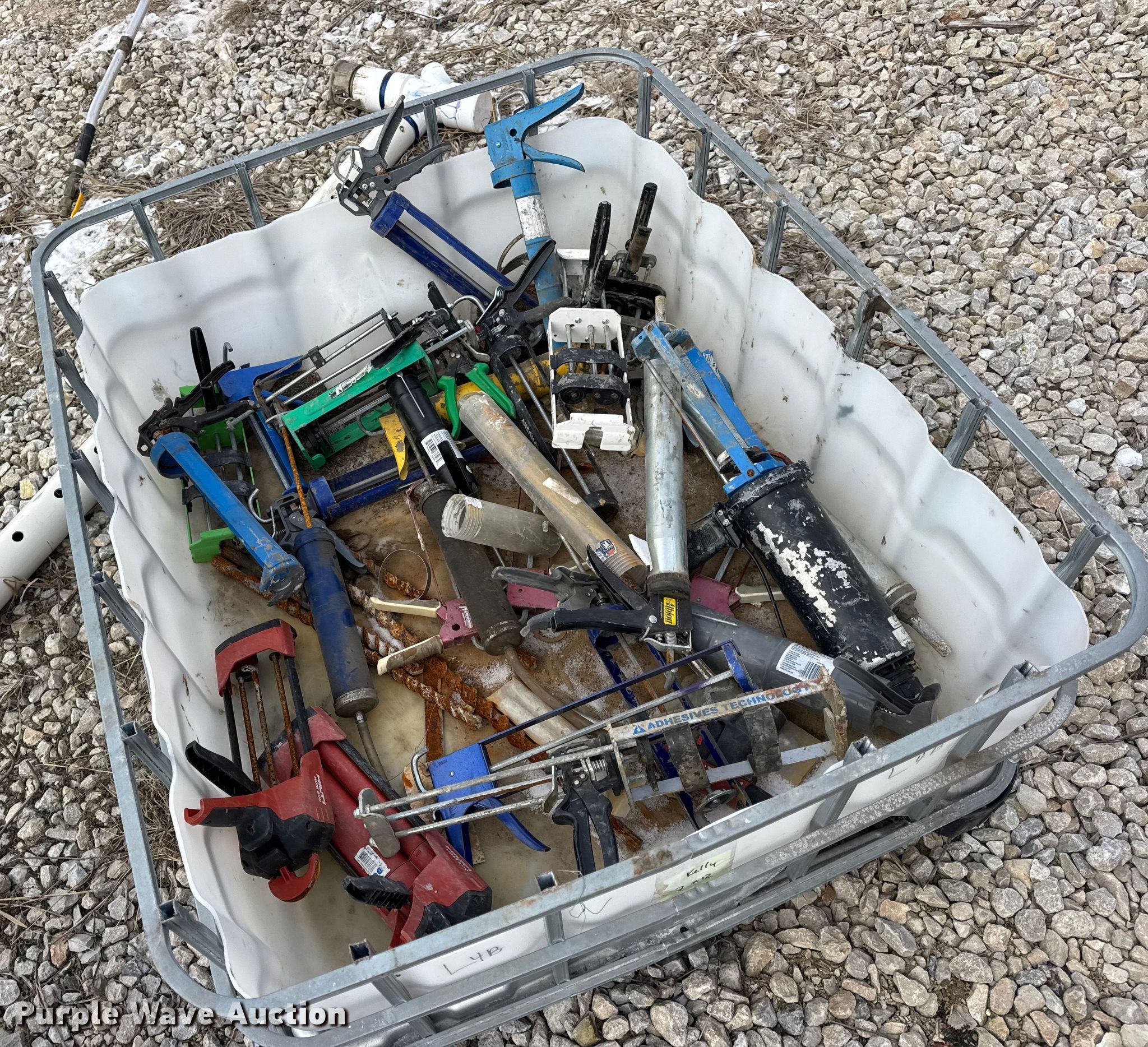 Purple Wave is selling a used Tools in Missouri. This item is a Tools with the following: Rebar caps, Caulk guns and more