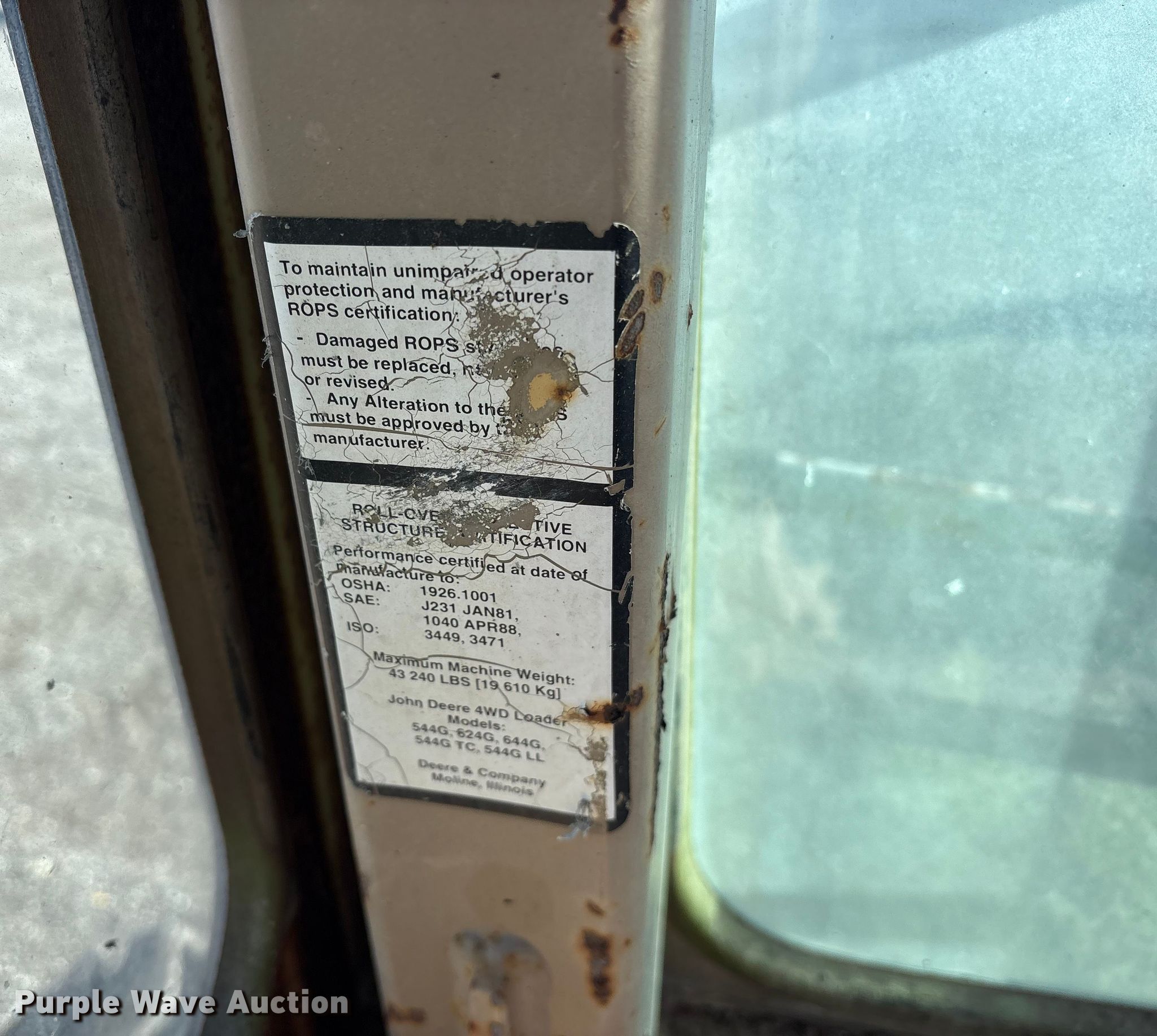 Purple Wave is selling a used Wheel Loader in Texas. This item is a 1995 John Deere 544G wheel loader with the following: Hours: 5,873 on meter, Serial: DW544GB550446