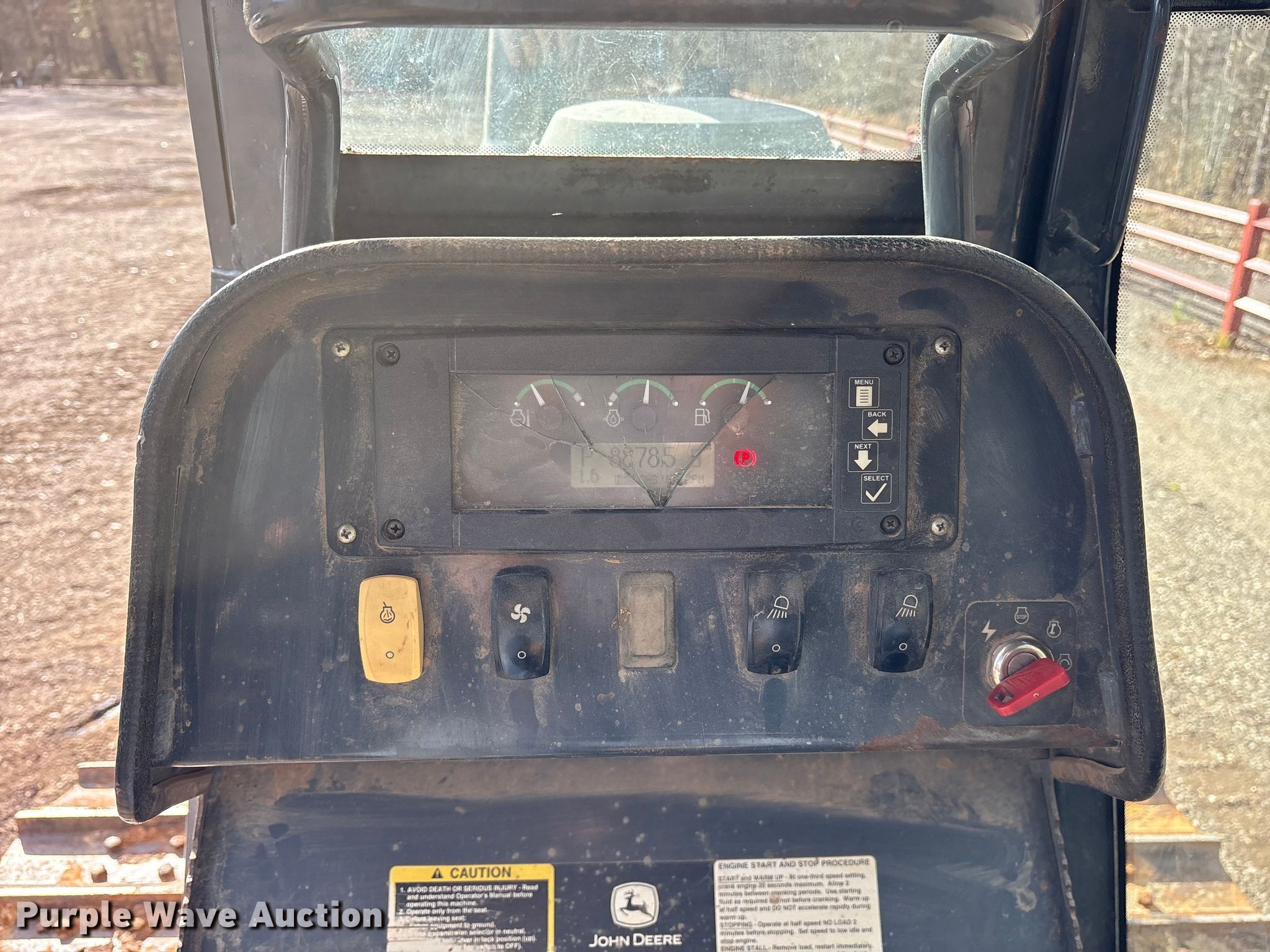 2005 John Deere 650J LT dozer. Hours: 8,879 on meter, Serial: T0650JX100913. Engine John Deere 4045, Displacement: 4.5L, Cylinders: 4, Fuel type: Diesel. Transmission Hydrostatic, Two speed travel. Operators station Enclosed cab, AC, Heat, Electronic Monitoring System panel, Steering: Joystick. Features Dozer blade Blade type: 6-way, Blade shape: Straight, Width: 8' 9". Tracks Width: 18", Bottom rollers: 6, Track guards. Iron Ranch LLC. Grand Saline, TX 75140