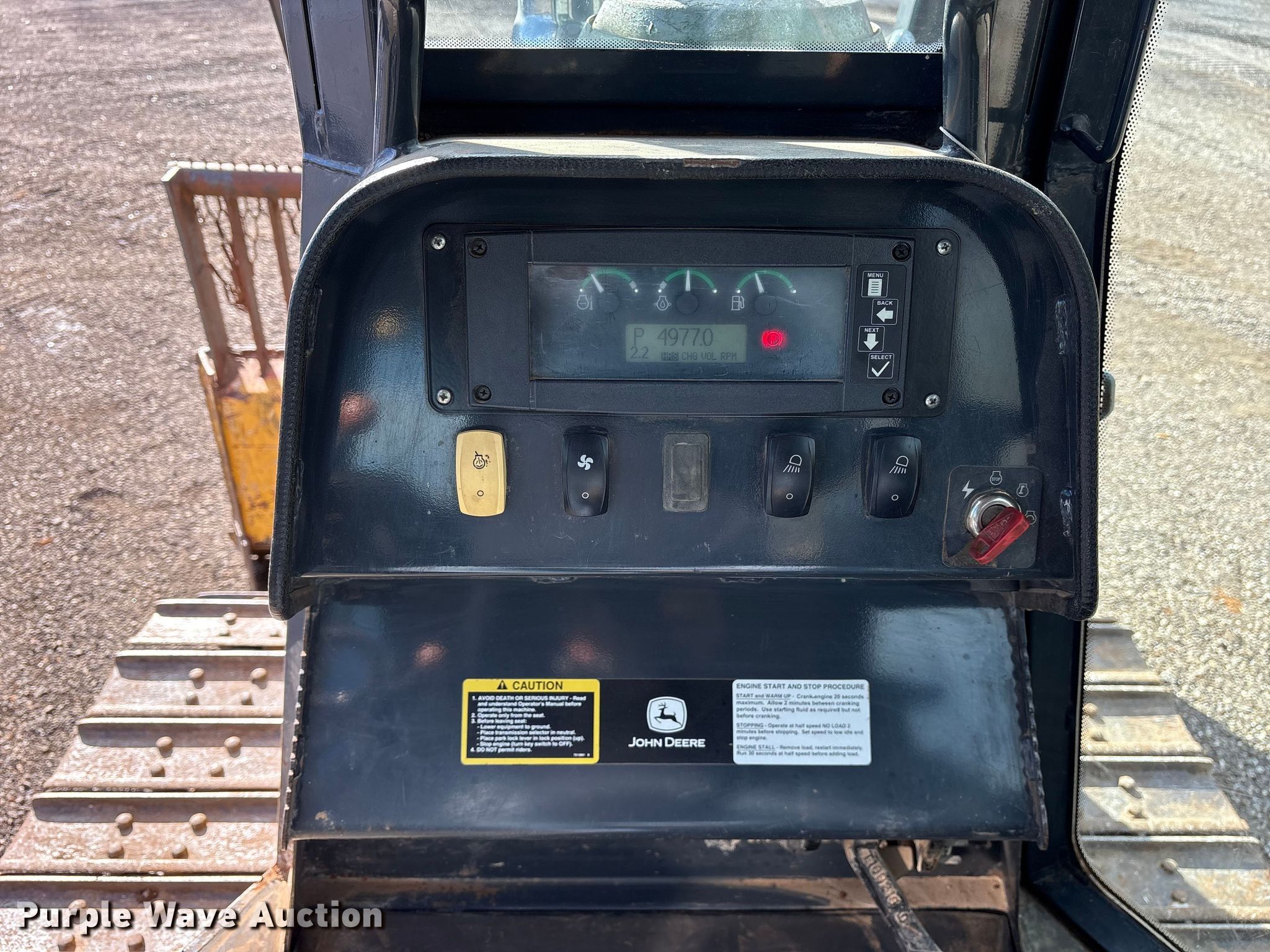 2006 John Deere 550J LT dozer. Hours: 4,977 on meter, Serial: T0550JX130336. Engine John Deere 4045TT, Displacement: 4.5L, Cylinders: 4, Fuel type: Diesel. Transmission Hydrostatic, Two speed travel. Operators station Enclosed cab, AC, Heat, Electronic Monitoring System panel, Steering: Joystick. Features Dozer blade Blade type: 6-way, Blade shape: Straight, Width: 8' 9". Tracks Width: 17.56", Bottom rollers: 6, Track guards. Iron Ranch LLC. Grand Saline, TX 75140