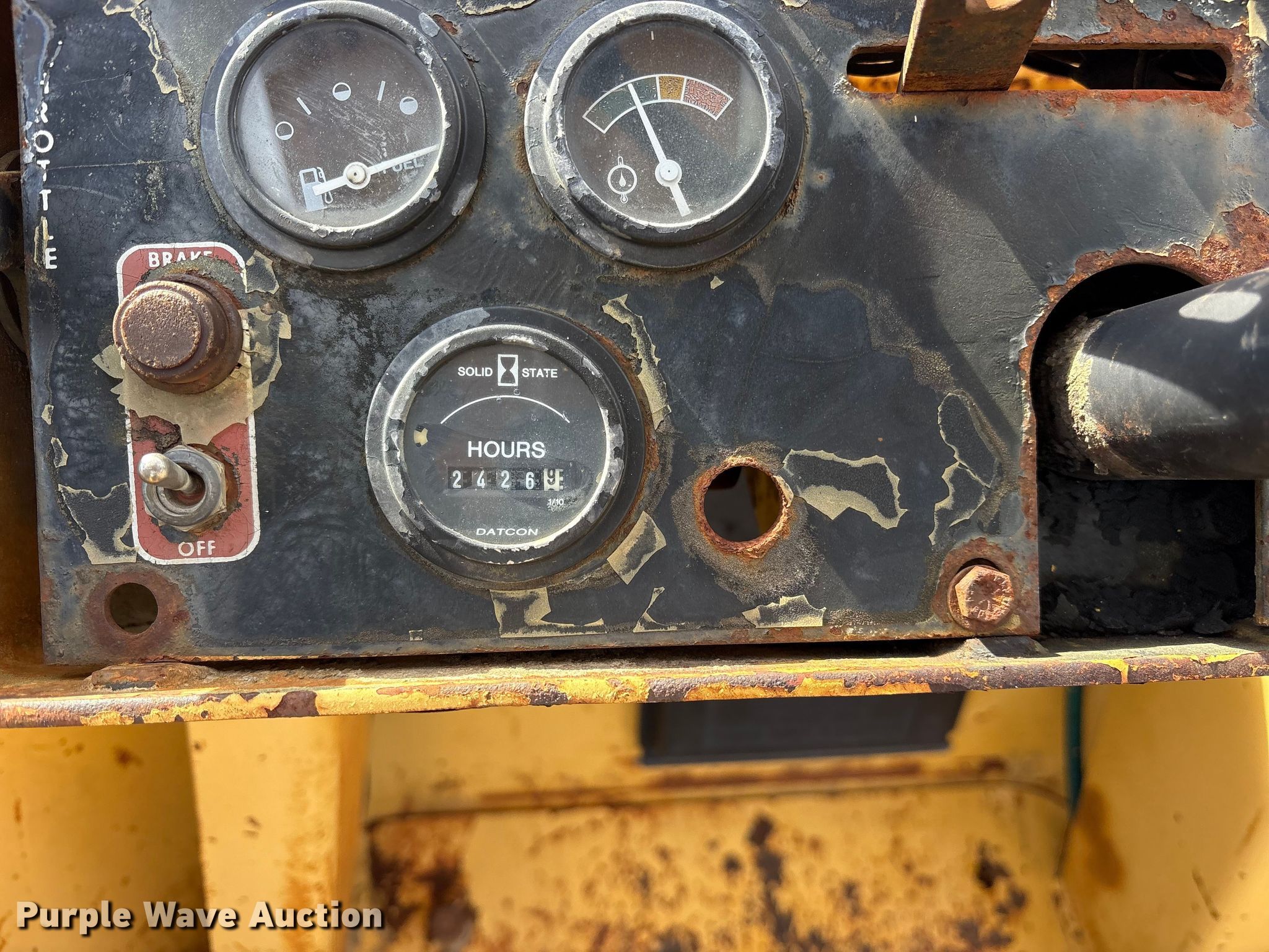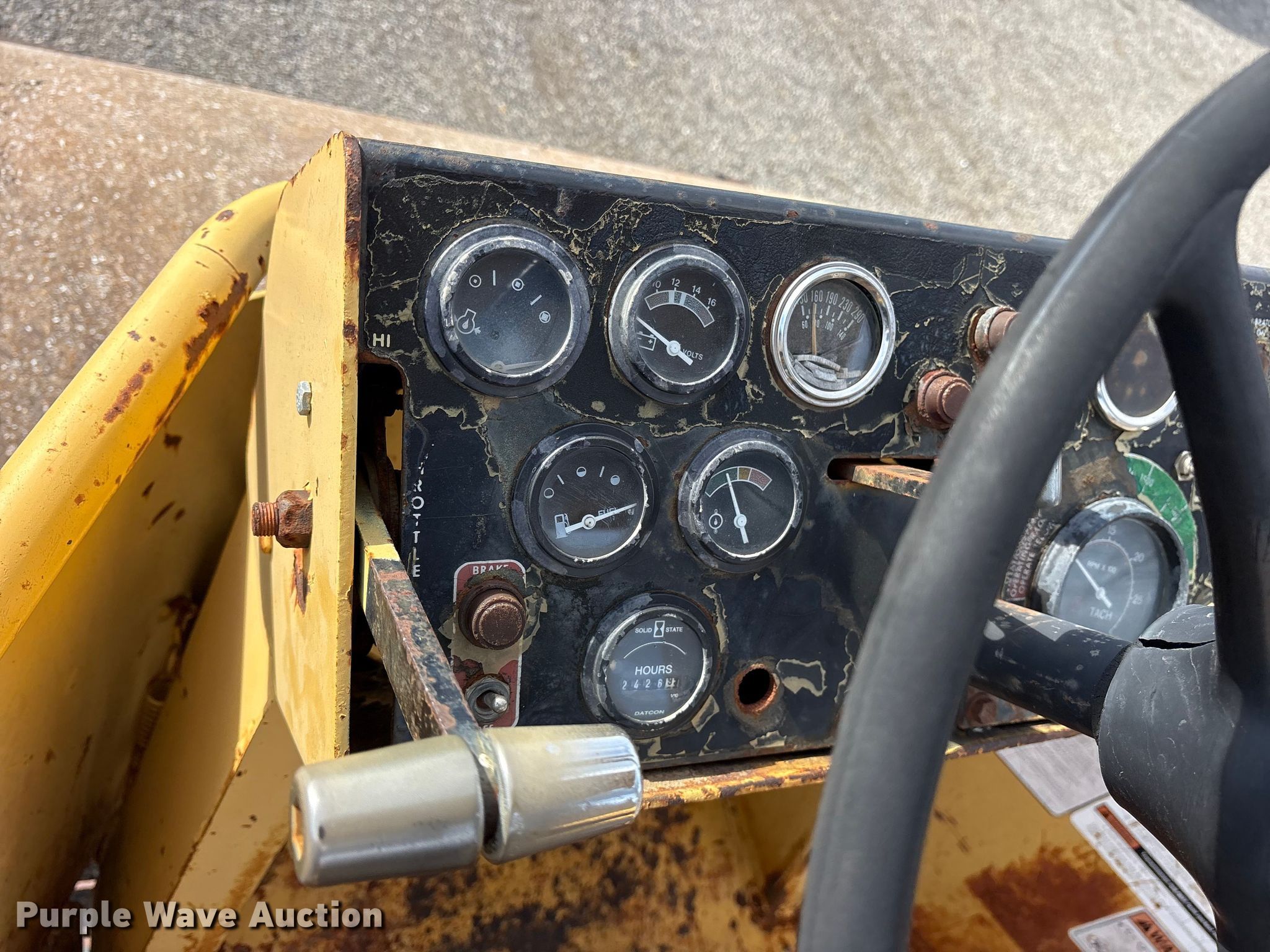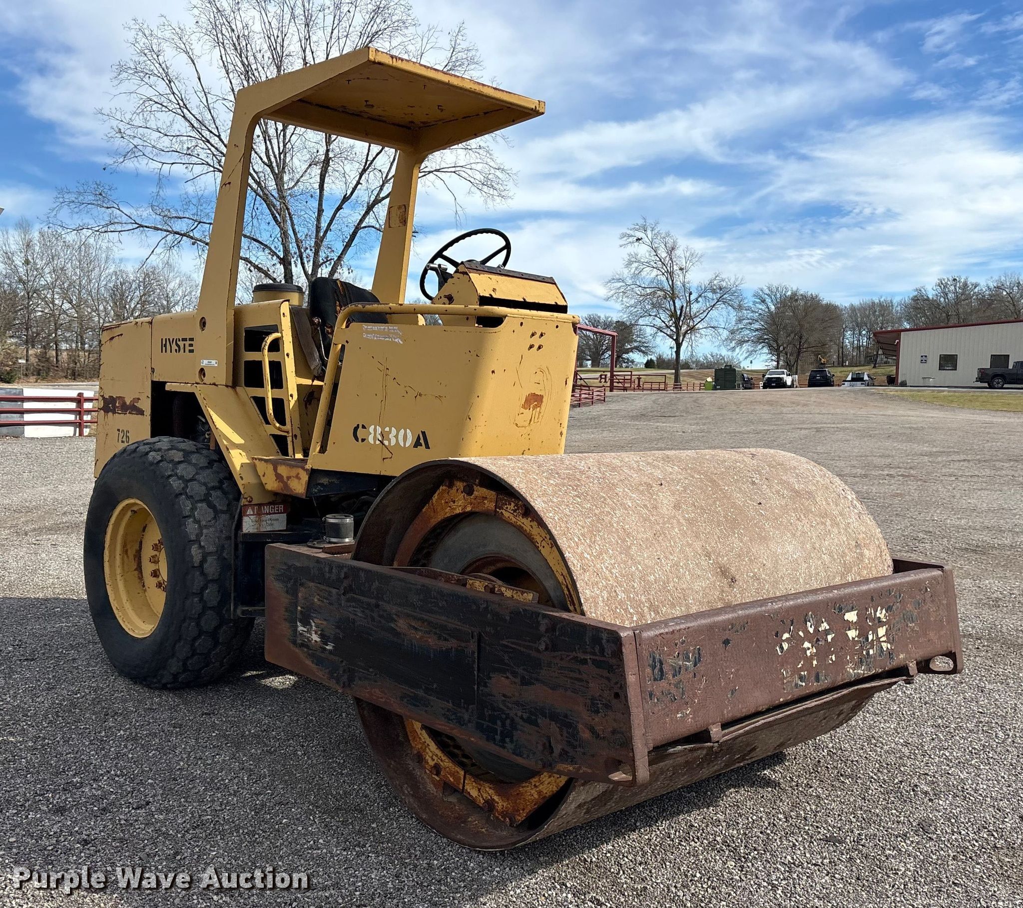 Hyster C830A single drum vibratory roller. Hours: 2,427 on meter. Engine Cylinders: 4, Fuel type: Diesel. Transmission Two speed travel. Features Drum Drum type: Smooth, Width: 66", Diameter: 48", Drum scrapers. Tires Size: 14.9-24. Notes Non-operational vibrator system. Iron Ranch LLC. Grand Saline, TX 75140